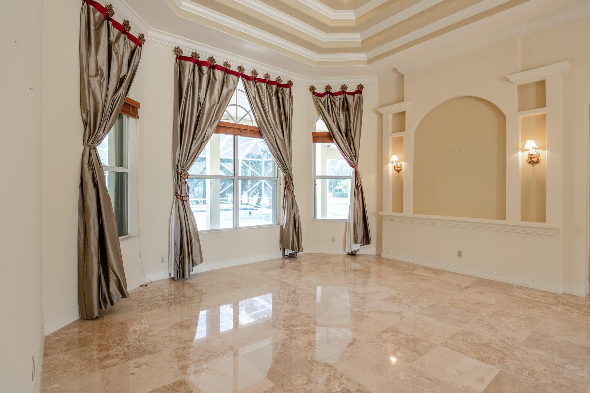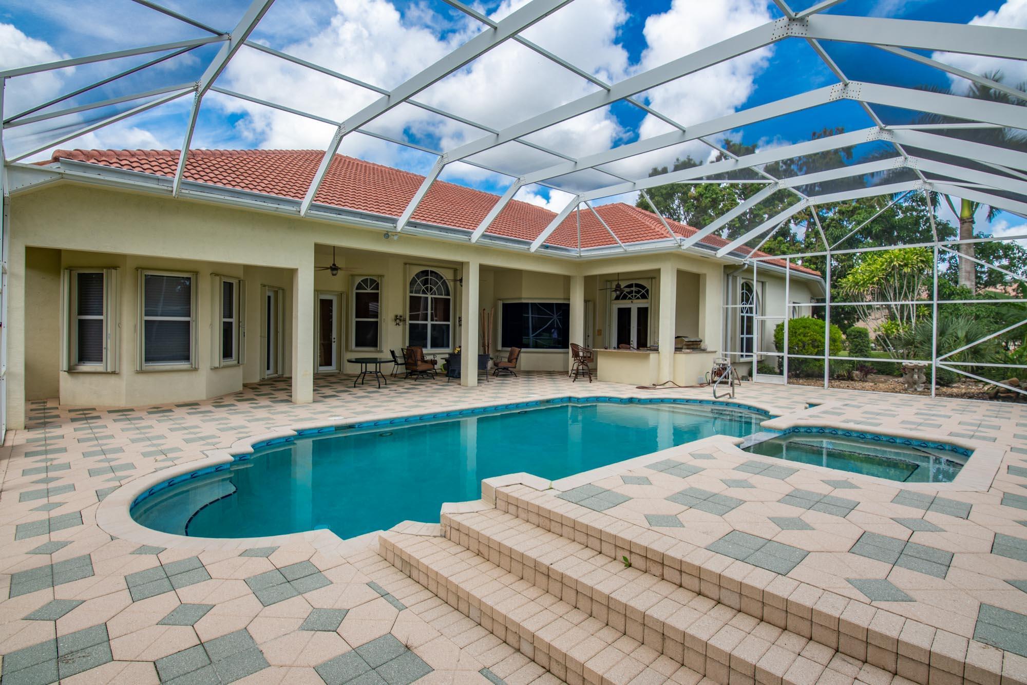 This stunning 5BR/4BA + office home sits on a landscaped & manicured 1-acre lot with gorgeous golf course views, in the highly desirable gated community of Bay Hill Estates. This impressive custom estate home has been meticulously maintained and features designer upgrades including marble & wood floors throughout, 2021 roof, extensive crown molding, impact glass, and a gourmet kitchen with extended premium cabinetry and a large walk-in pantry. The luxurious master suite features a sitting room, high ceilings, and views of the pool. The large screened-in lanai offers an oversized pool & spa, and you can also enjoy the peaceful meditation garden with statuary, stones, and lush plantings. This grand yet private estate offers plenty of space for entertaining in peaceful surroundings.