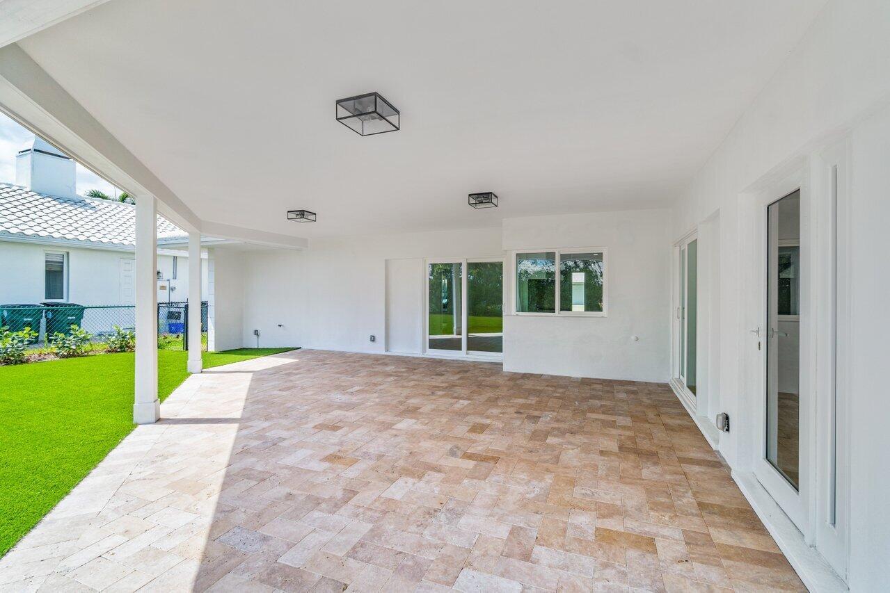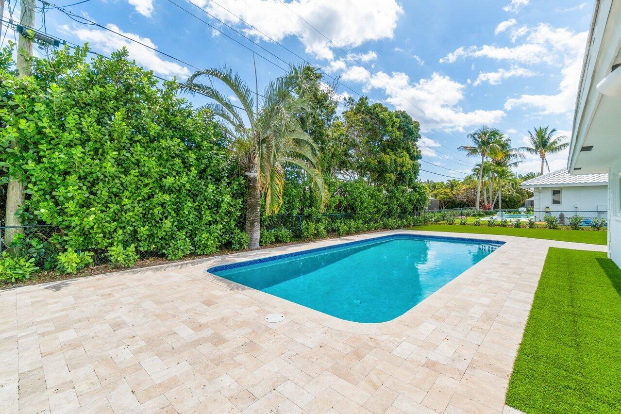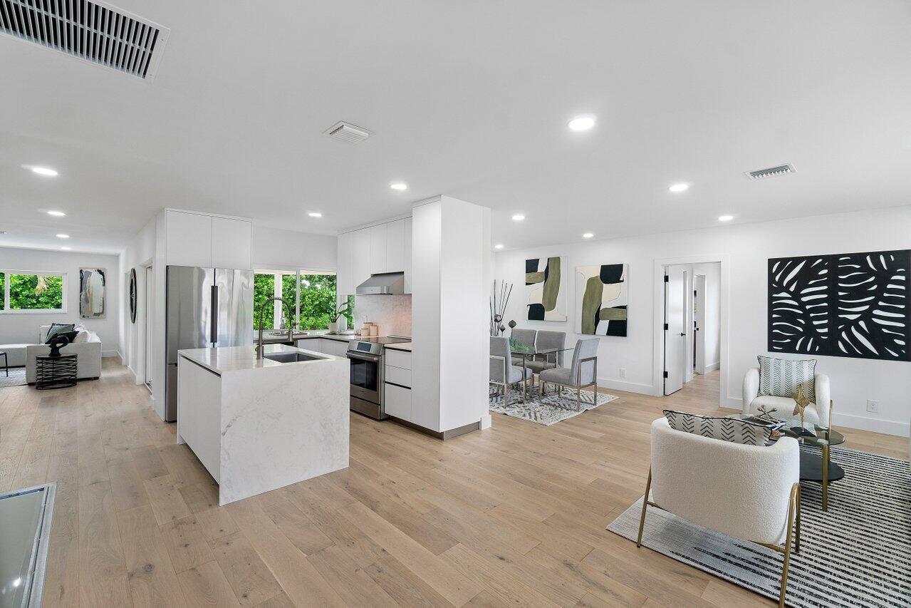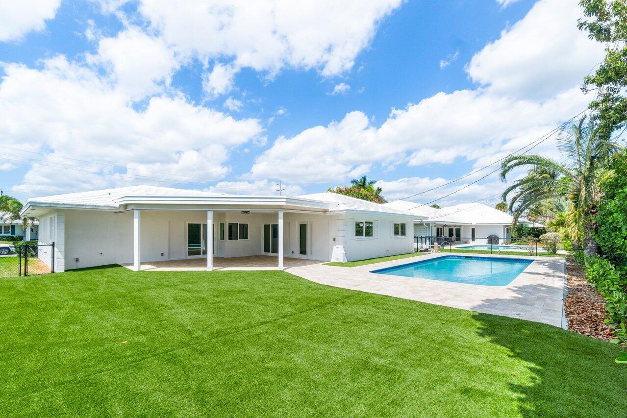 This single-story home in the highly sought-after Camino Gardens community of East Boca Raton has been meticulously renovated with top-of-the-line finishes. Featuring a bright and open split floor plan, the residence offers three bedrooms and two full bathrooms. Every detail is brand new. Roof - 2023, all HURRICANE impact windows and sliders. The kitchen is a showpiece, outfitted with custom Italian cabinetry, Bosch appliances, marble countertops, and a stunning waterfall edge backsplash. Throughout the home, you'll find French white oak wood flooring, custom-built closets, and updated doors, hardware, and trim. The bathrooms are beautifully finished with Italian porcelain tile and custom quartz countertops.Outside, a spacious covered patio overlooks a turfed backyard, while the brand