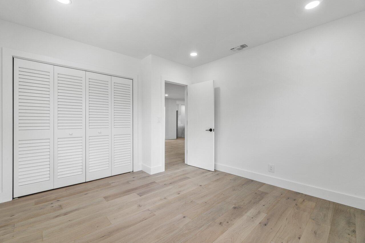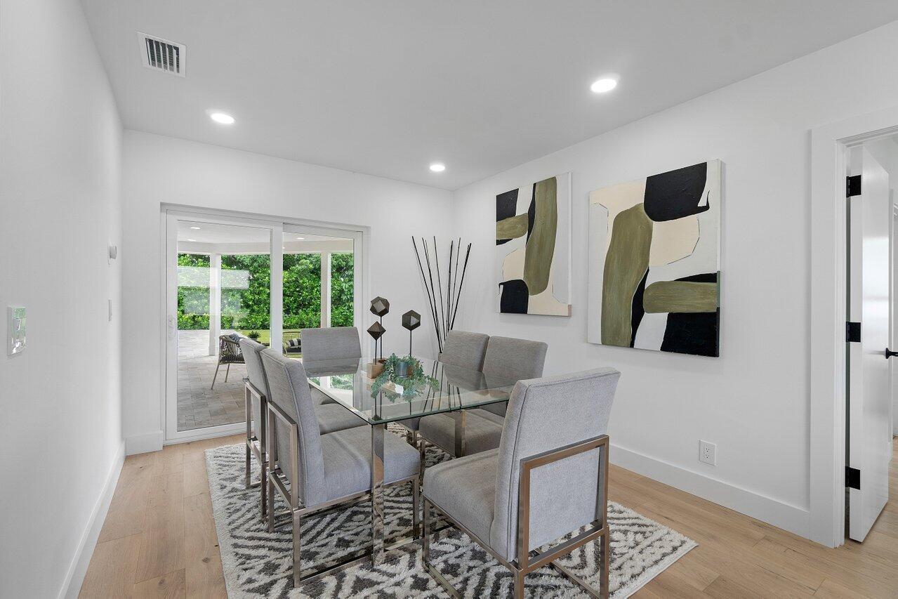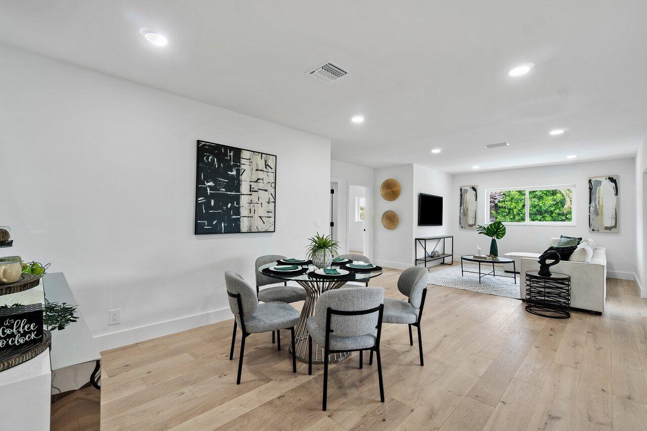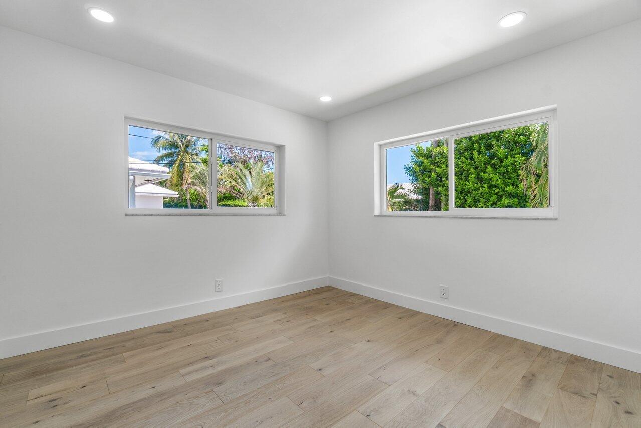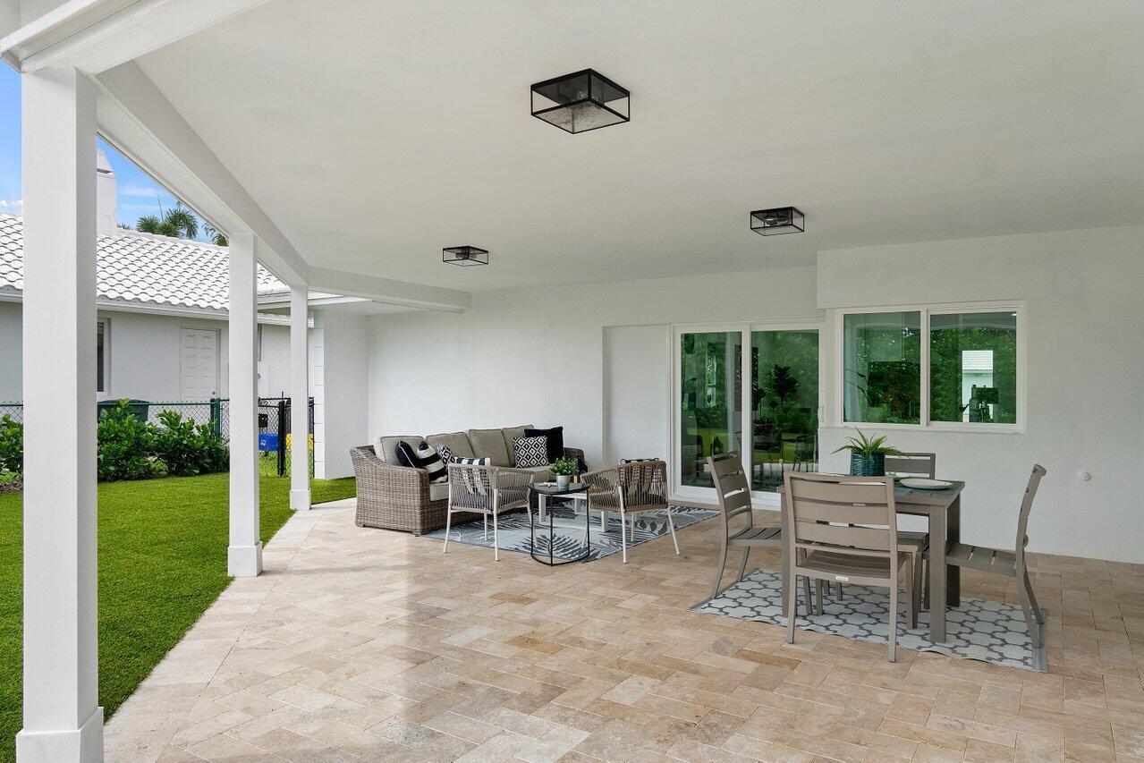This single-story home in the highly sought-after Camino Gardens community of East Boca Raton has been meticulously renovated with top-of-the-line finishes. Featuring a bright and open split floor plan, the residence offers three bedrooms and two full bathrooms. Every detail is brand new. Roof - 2023, all HURRICANE impact windows and sliders. The kitchen is a showpiece, outfitted with custom Italian cabinetry, Bosch appliances, marble countertops, and a stunning waterfall edge backsplash. Throughout the home, you'll find French white oak wood flooring, custom-built closets, and updated doors, hardware, and trim. The bathrooms are beautifully finished with Italian porcelain tile and custom quartz countertops.Outside, a spacious covered patio overlooks a turfed backyard, while the brand