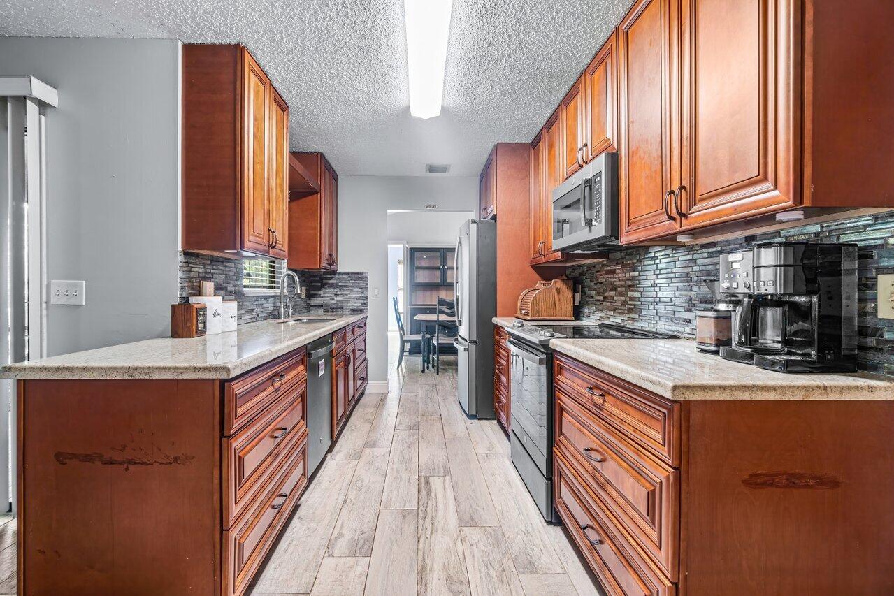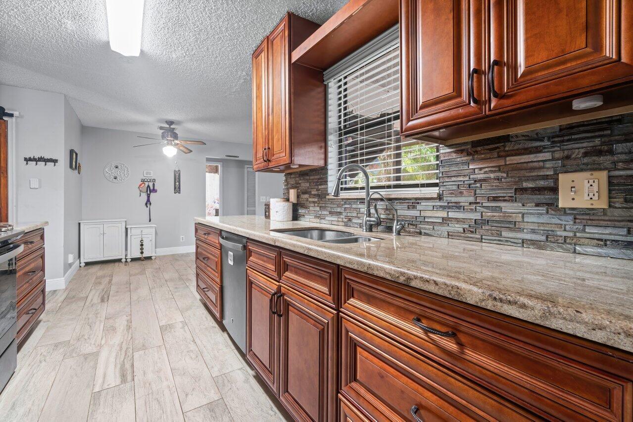 Welcome to this stunning 3-bedroom, 2-bathroom gem, offering contemporary style and comfort in every corner. As you enter, you'll immediately notice the gorgeous newer plank tile flooring that runs throughout the home, providing a sleek and durable foundation for modern living.The heart of this home is the kitchen, featuring 42-inch cabinets with self-closing drawers for a touch of luxury and convenience. The rich granite countertops add a sophisticated flair and provide ample workspace for culinary creations. Both bathrooms have been thoughtfully updated with modern finishes, ensuring a fresh and stylish retreat. Step outside to the screened patio where you can enjoy a peaceful morning. Lastly this home offers a 2 car garage, and a shed with power and water. Schedule a tour today.