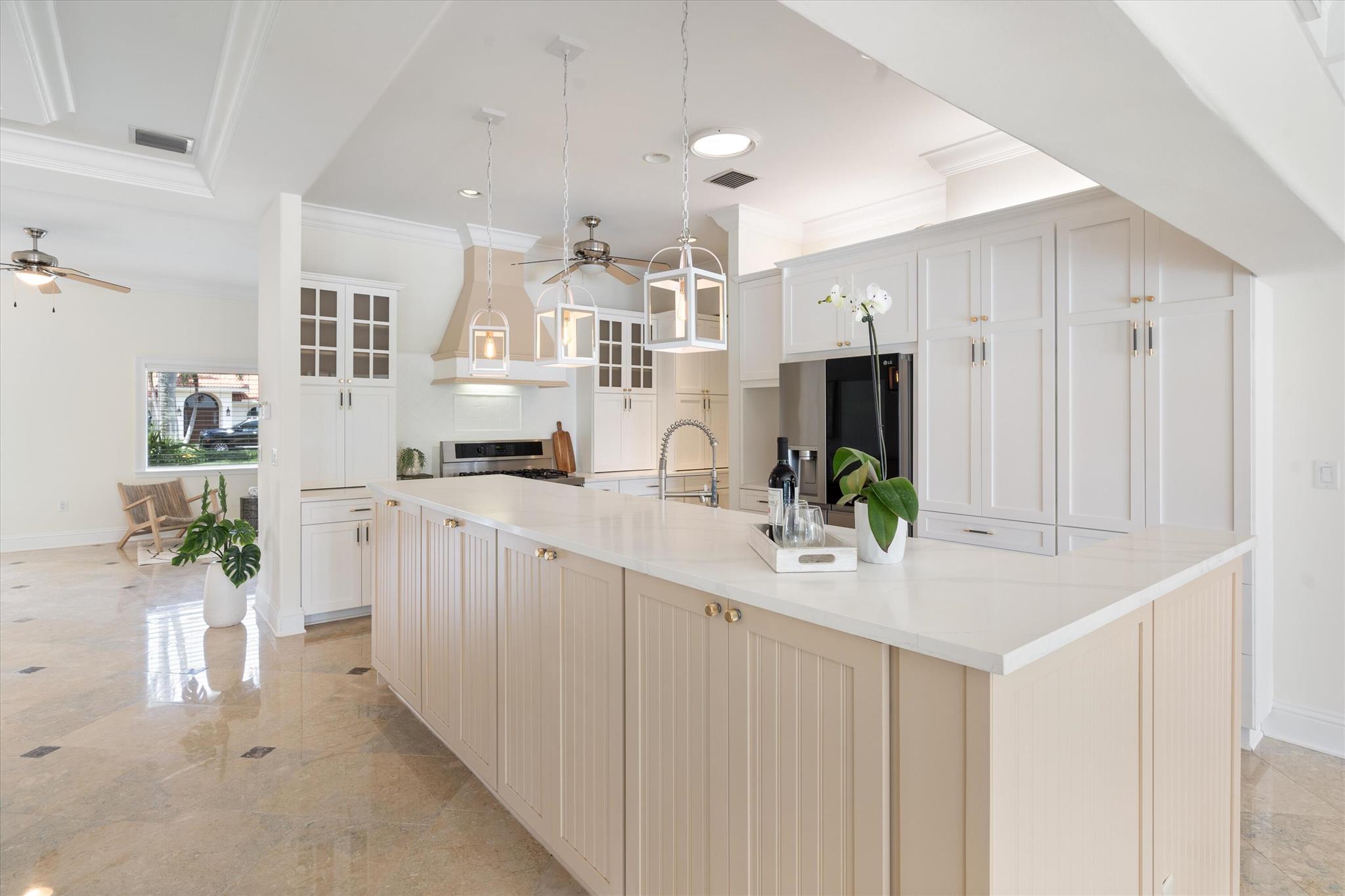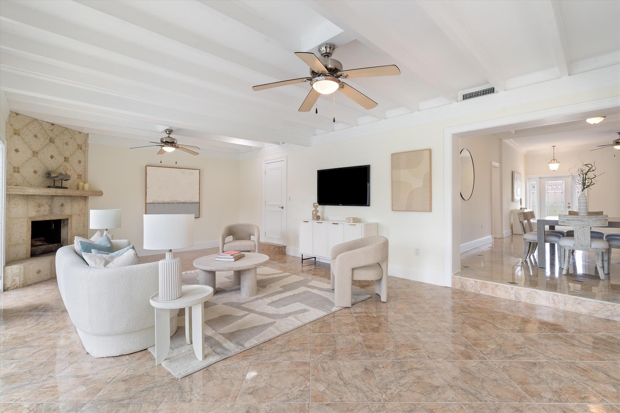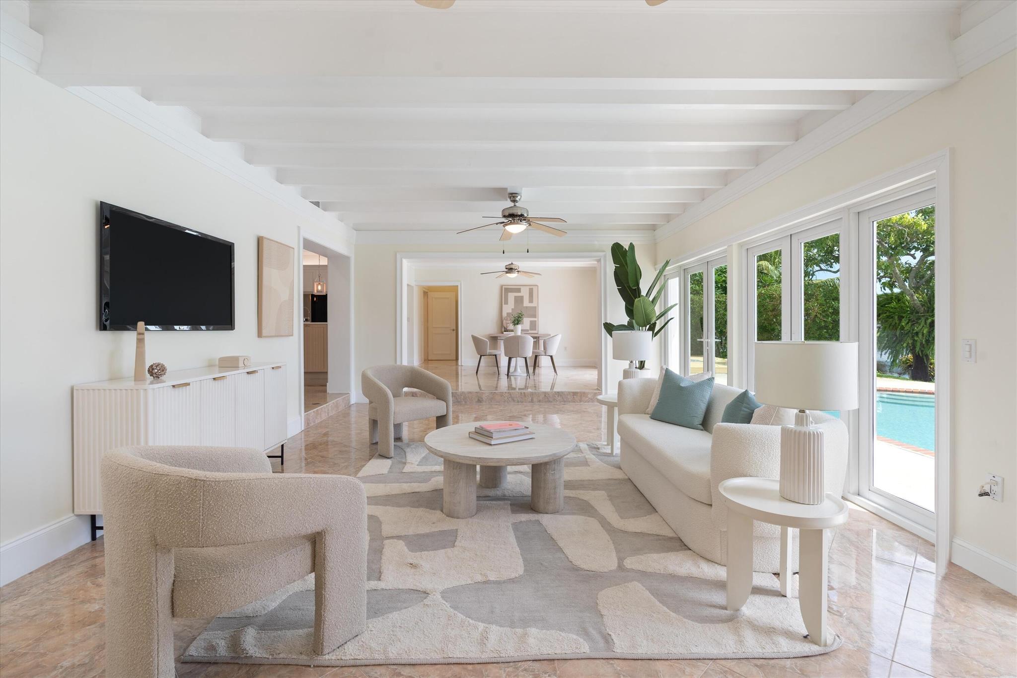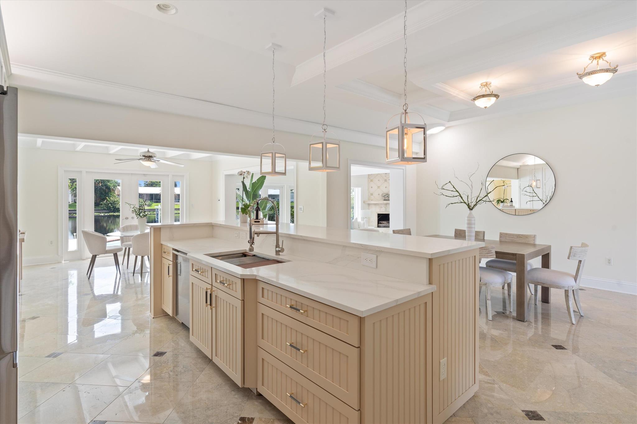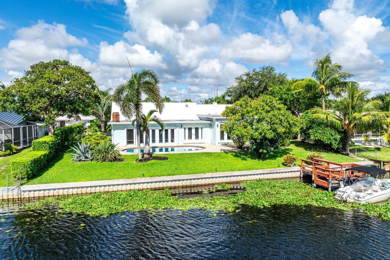 Waterfront living on W Lake Drive in Lake Clarke Shores! This single-story home sits on a 12,502 sqft lot on the MAIN lake with 3 beds, 2.5 baths, and a BRAND NEW dock in permitting! Professionally restored marble and terrazzo floors that gleam & shine like the sun rays on the lake. Bring your cookware and favorite recipe, this open, updated chef's kitchen with natural gas stove is made for some serious cooking and entertaining! Impact window/doors, roof 2022, a 2-car garage w/ new epoxy floors, pool, seawall and 100ft of waterfront this home is for you! The LCS neighborhood is an absolute stand out with No HOA, a boat ramp, tennis, pickleball & basketball courts, playgrounds, a town hall, local eats, police dept and annual town events. Minutes to PBI & downtown WPB. Don't miss this one!