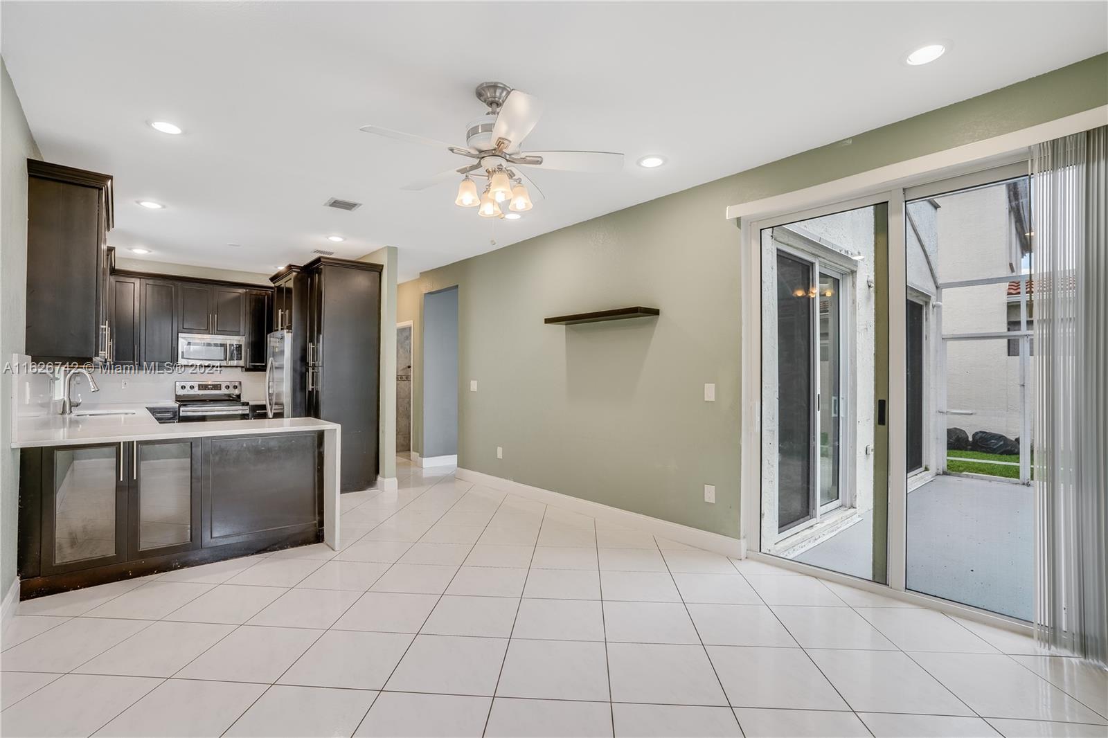 Welcome to Your New Home in Pembroke Pines! This spacious 4-bedroom, 2.5-bath, 2-story home boasts a Stunning lake view and is located in a gated community. The home features all bedrooms on the second floor, with tile flooring downstairs and wood laminate upstairs. Enjoy the screened patio, impact windows installed in 2022, a new AC condenser from 2022, and a kitchen roof section redone in 2021. The updated kitchen offers 42” wood upper cabinets, quartz countertops, a backsplash, a pantry, and a kitchen bar. The master bathroom includes a frameless shower for a modern touch. Community amenities include a playground, clubhouse, gym, tennis and basketball courts, multiple pools, and more! Conveniently located near I-75, shopping, and top-rated schools, this home has it all!
