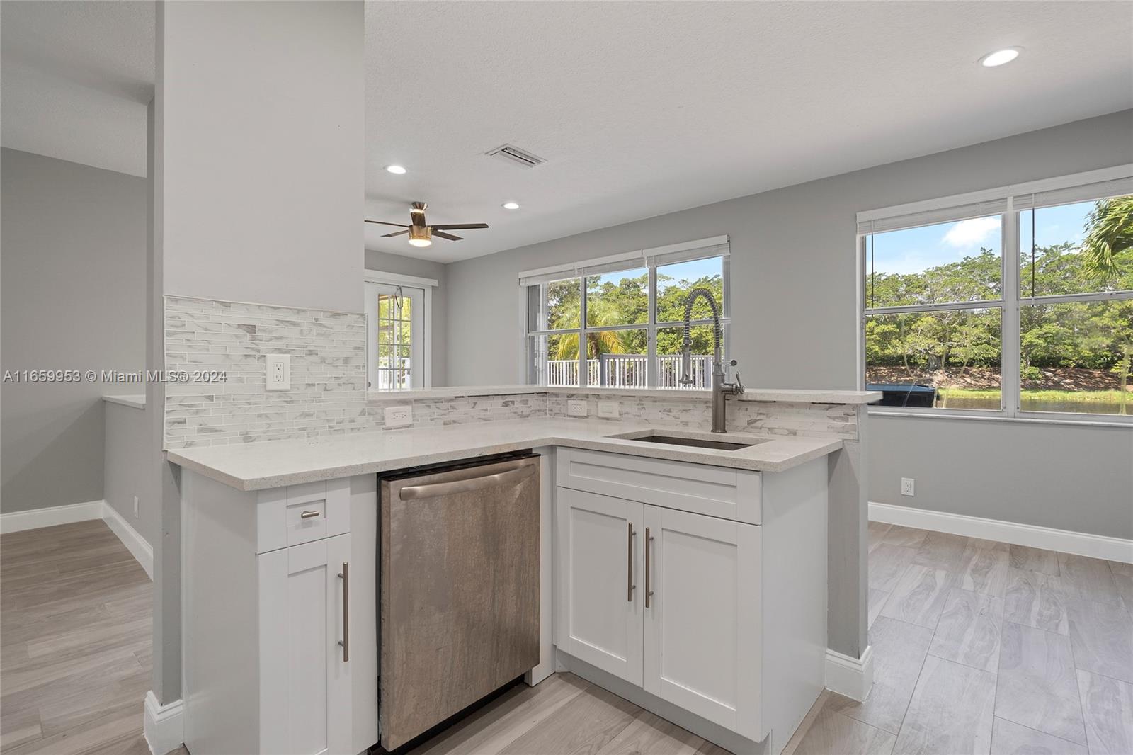This beautiful large spacious home features 5 bedroom, 3.5 bath, 2 car garage on waterfront located in The Lakes Community. New Roof 8/2024 & Hurricane Impacted Windows 8/2024. High ceilings, updated kitchen & bathrooms, new tile flooring & carpet throughout, in-ground jacuzzi. Master bedroom & bath are on the first floor with separate tub & shower, with access to patio. Upstairs are the remaining 4 bedrooms & 2 jack & jill bathrooms. Great A-rated school districts , Community Pool, Playground and Soccer Field, Play Areas, Easy Access to Parks, Fabulous Restaurants, Terrific Shopping. Close to major highways and Cleveland Clinic.