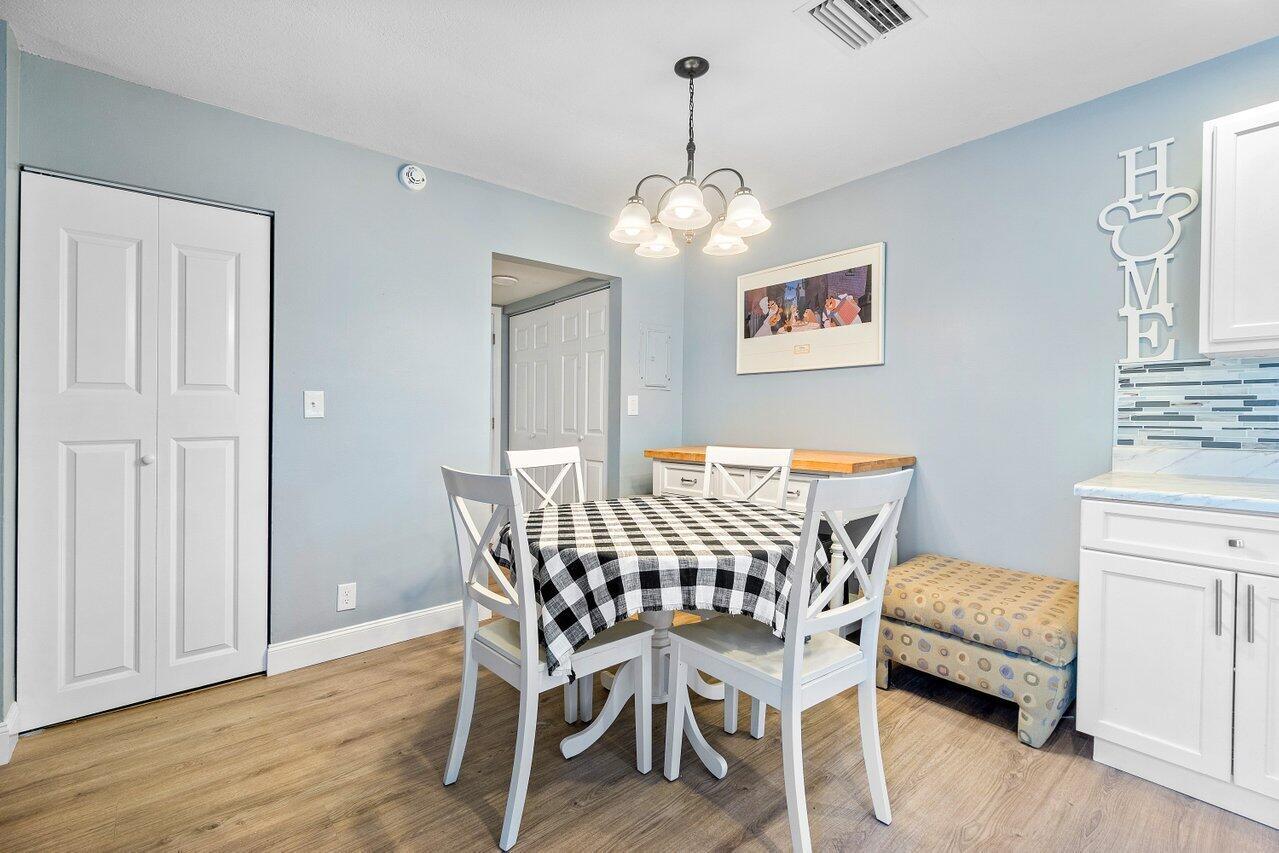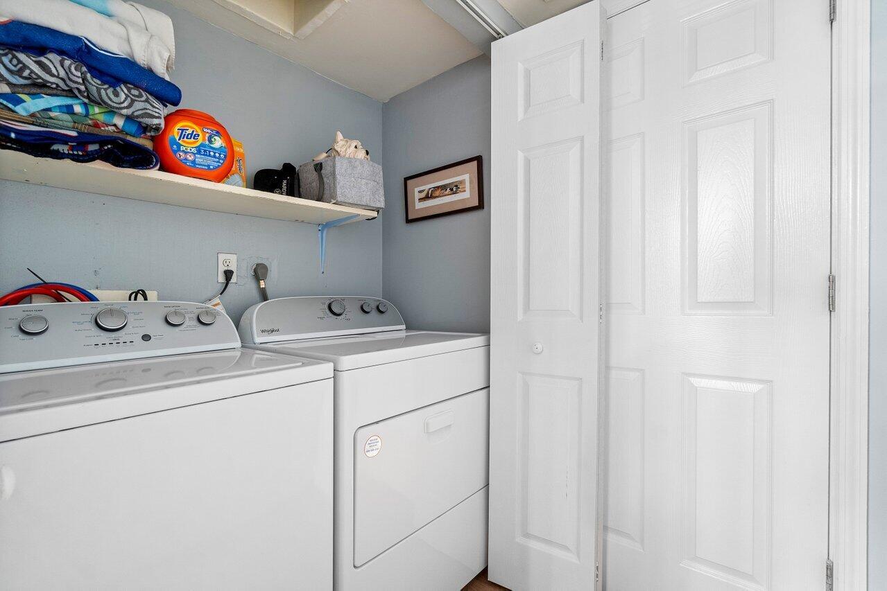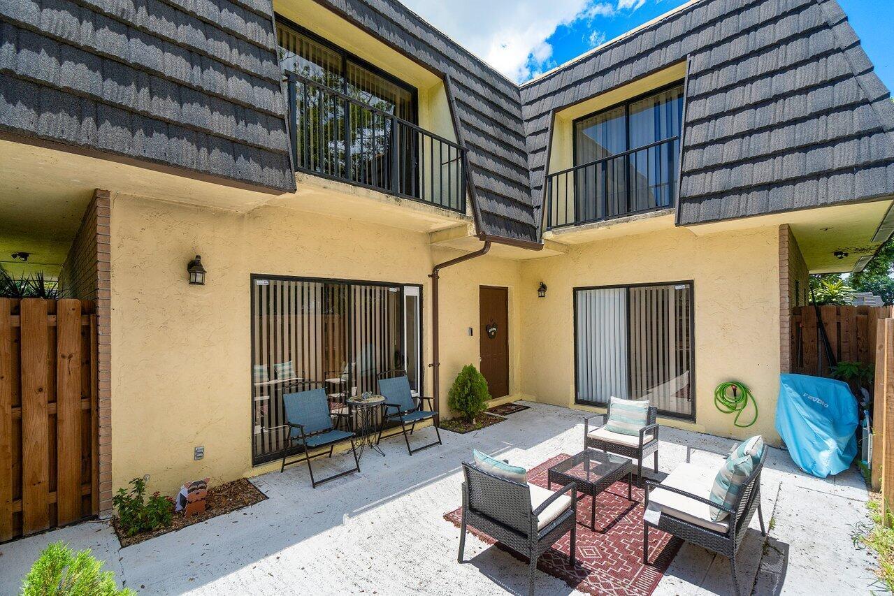 Picture yourself in this charming two-story townhouse, in a very central location. Close to shopping and restaurants, minutes from the highways I95 and FL Turnpike and a short drive to the lively downtown area filled with restaurants and shopping and entertainment and the beautiful intercoastal. Close to Palm Beach International Airport for convenience. Tastefully updated 2 bdrm 1 1/2 bath with a newly updated kitchen, and new laminate floors throughout the home. Laundry shoot from the linen closet in the bathroom. Spacious closets, and balconies in each bedroom, overlooking your private, fenced-in patio. Bright and light townhome.