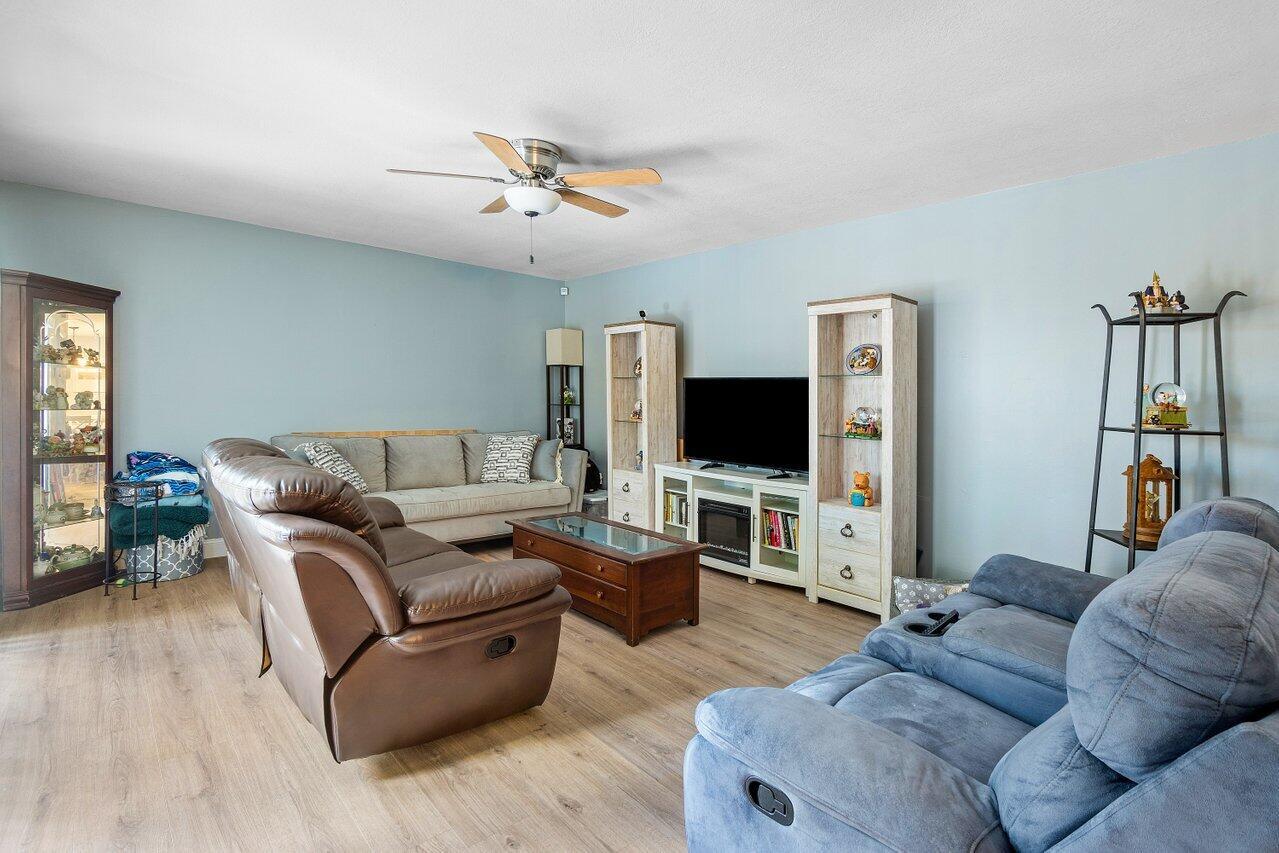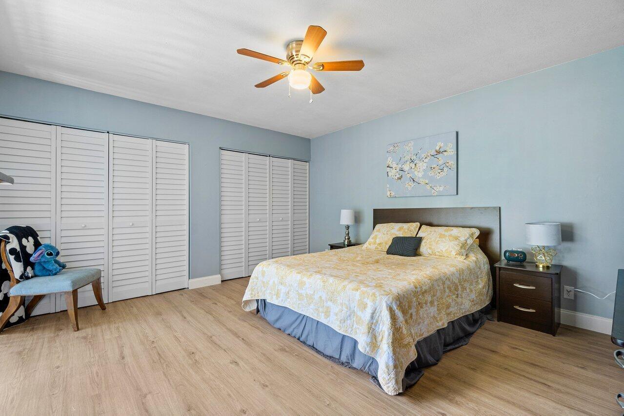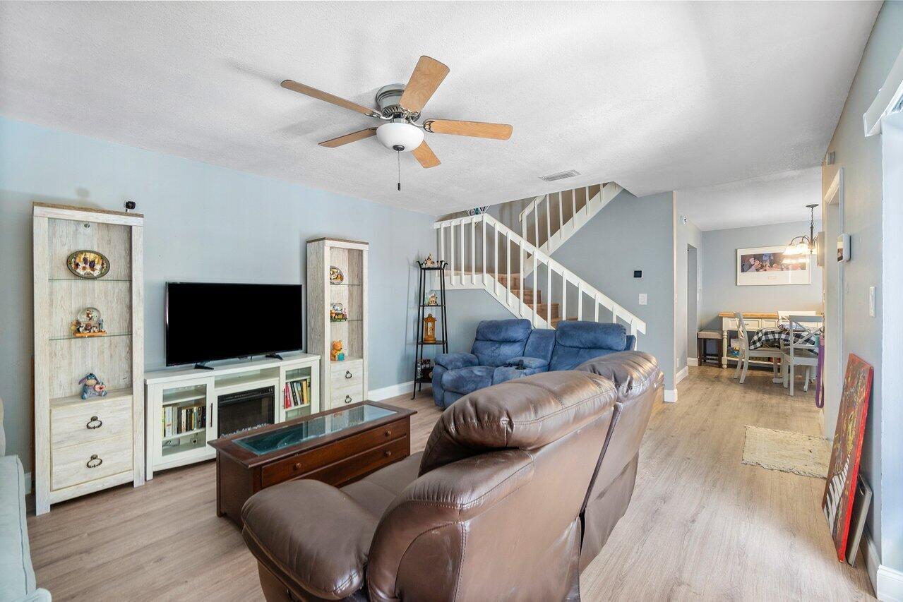 Picture yourself in this charming two-story townhouse, in a very central location. Close to shopping and restaurants, minutes from the highways I95 and FL Turnpike and a short drive to the lively downtown area filled with restaurants and shopping and entertainment and the beautiful intercoastal. Close to Palm Beach International Airport for convenience. Tastefully updated 2 bdrm 1 1/2 bath with a newly updated kitchen, and new laminate floors throughout the home. Laundry shoot from the linen closet in the bathroom. Spacious closets, and balconies in each bedroom, overlooking your private, fenced-in patio. Bright and light townhome.