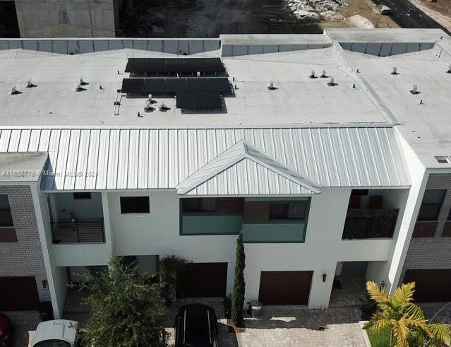 Contemporary townhouse in the gated community, Strata at Plantation. Uniquely designed with state-of-the art decorative accents and sleek architectural touches, this unit blends style and functionality and is in impeccable condition. This open concept, spacious Balin model has 2 bedrooms, each with their in-suite bathrooms. The kitchen has European cabinetry, a signature quartz island and stainless steel appliances. Ceramic tile runs through the first floor and wood flooring on the upper level. One of the most important features of this property is that it is powered by solar panels, which is an upgrade of approximately $40,000. AC system upgraded for more efficiency. Battery capable of handling the power of the unit (valued at $10,000) and storage shelves are located in the garage.