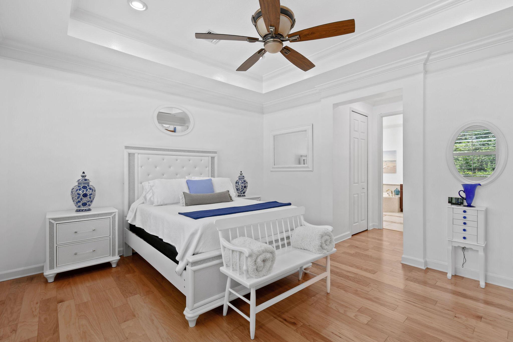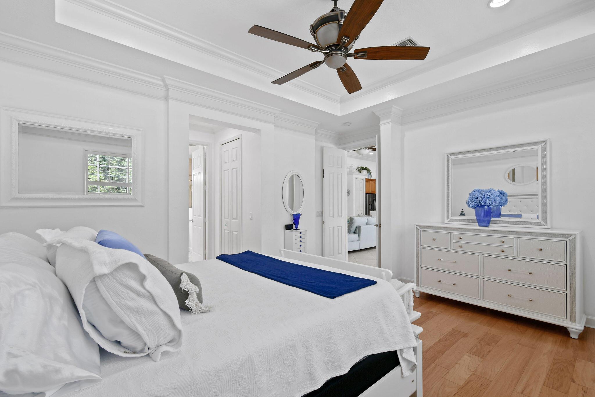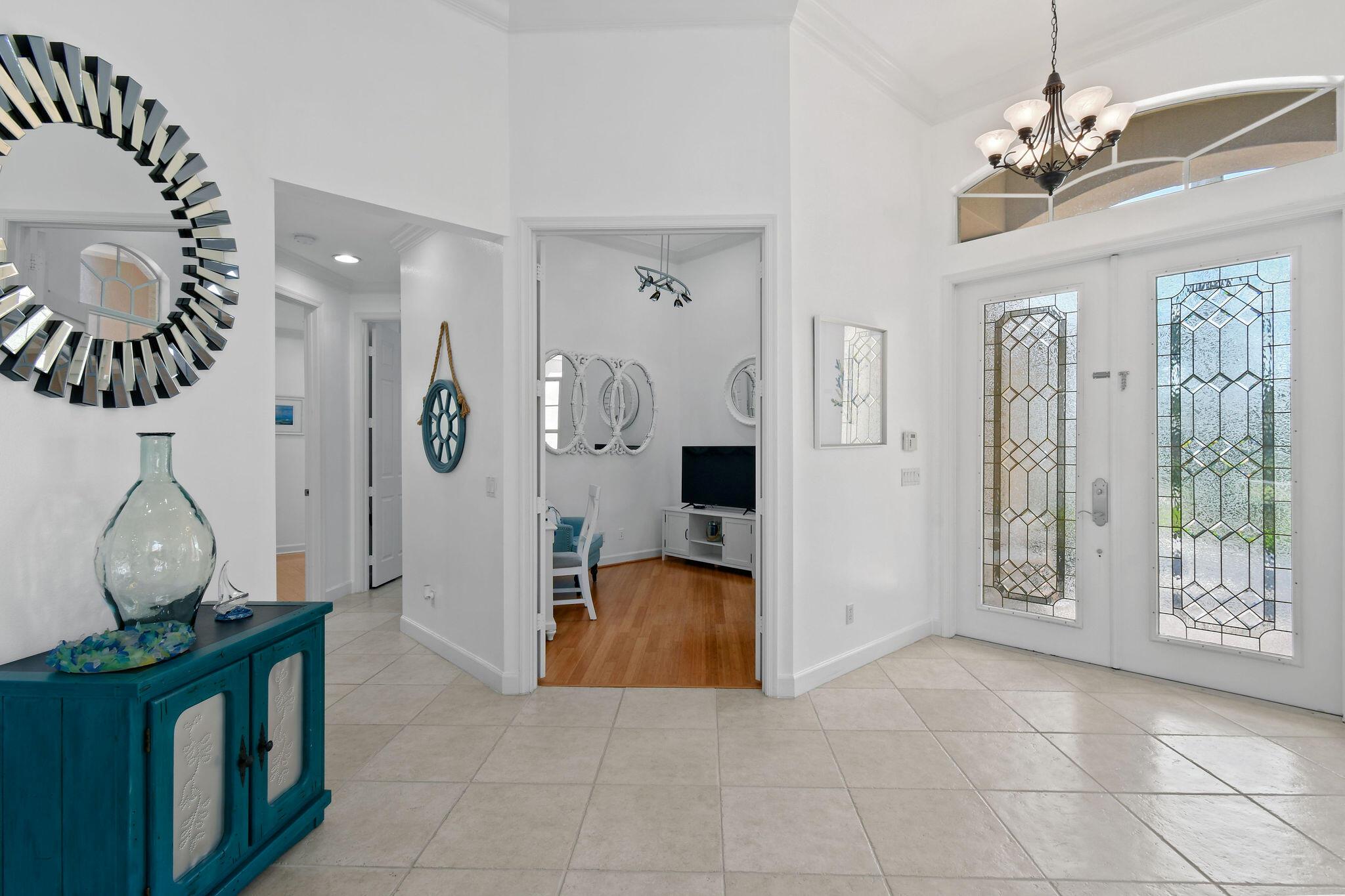 CLUBSIDE AT PGA VILLAGE - 2BR w/ Den that can easily be converted to a 3BR/2.5BA, 2-car garage, private pool home, former model, conveniently located near entrance for quickly entering and exiting gated community. Features include: private setting w/ lush landscaping and only 1 abutting neighbor, interior completely repainted including garage, pond view from front windows, crown moldings, larger baseboards, volume and textured ceilings, screened patio with outdoor kitchen/grilling area, plantation shutter, built-in entertainment center, stainless steel appliances, including double wall ovens, no city taxes and so much more. Island Club amenities are: clubhouse, community pool, exercise room, tennis, pickleball and play area. Golf and tennis memberships available to purchase.