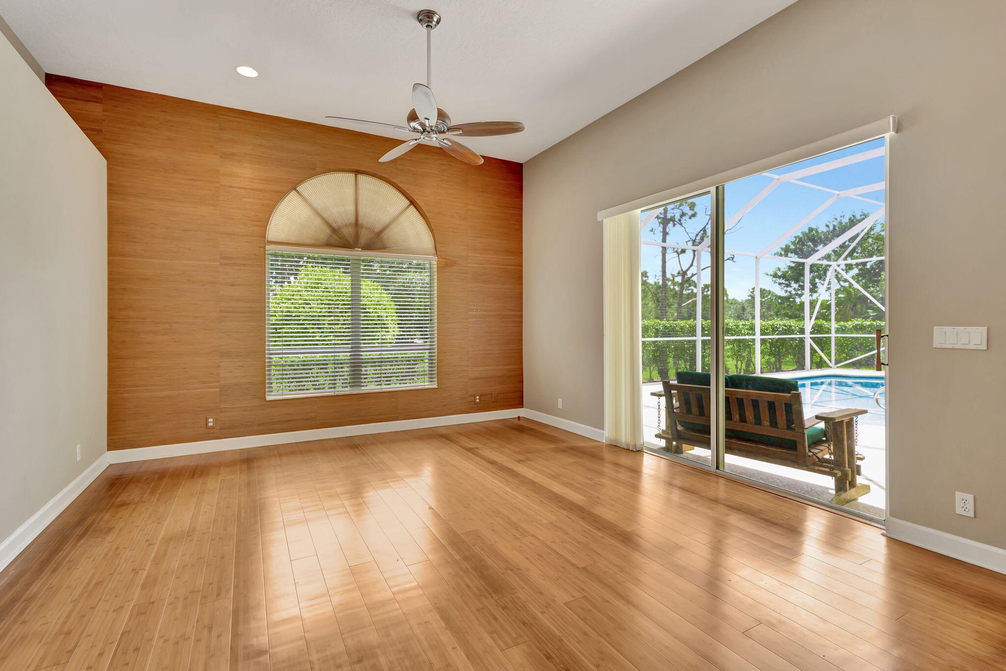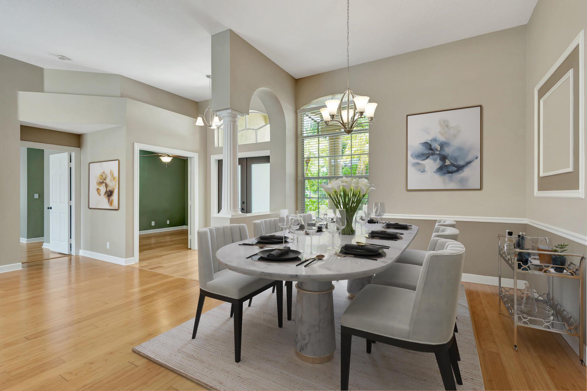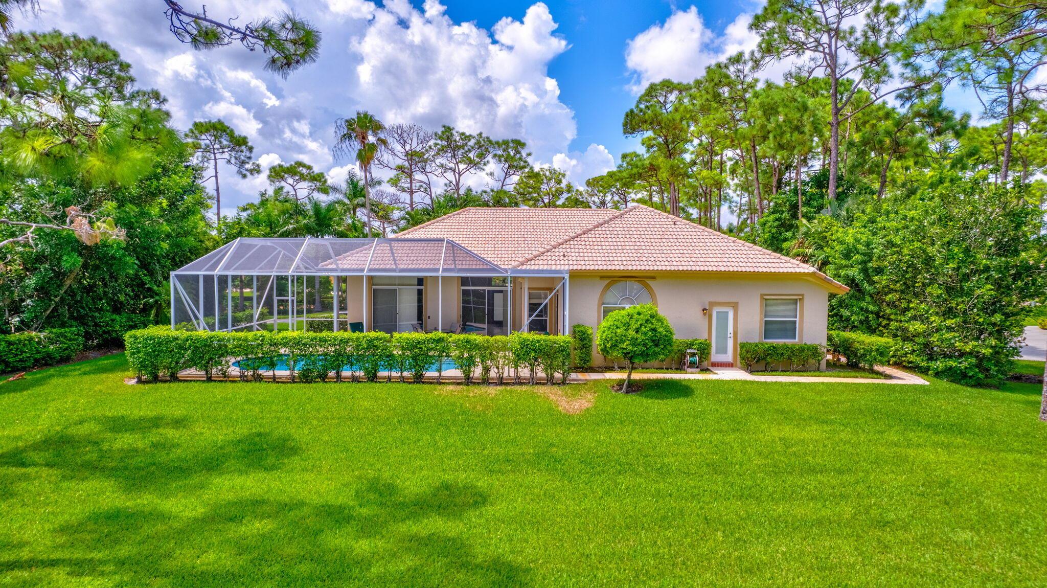 Serene setting surrounds this contemporary 4BR 3bth + office estate home nestled in the highly sought after and exclusive gated golf community of Bay Hill Estates. Expansive 1.2 acre lot nestled at the end of a cul de sac. Open spacious floor plan featuring hard wood flooring throughout the living areas & office. 4 bedrooms plus office and 3 full baths. Chef's Kitchen includes granite counter-tops & backsplash, Stainless-Steel appliances overlooking breakfast nook & family room. Master BR suite features updated bathroom dual sinks, frameless shower, oversized soaking tub, large walk-in closets overlooking enclosed screened in pool & covered porch. Newer impact front & cabana bath door as well as newer hurricane garage door. Brand new carpet BR's.