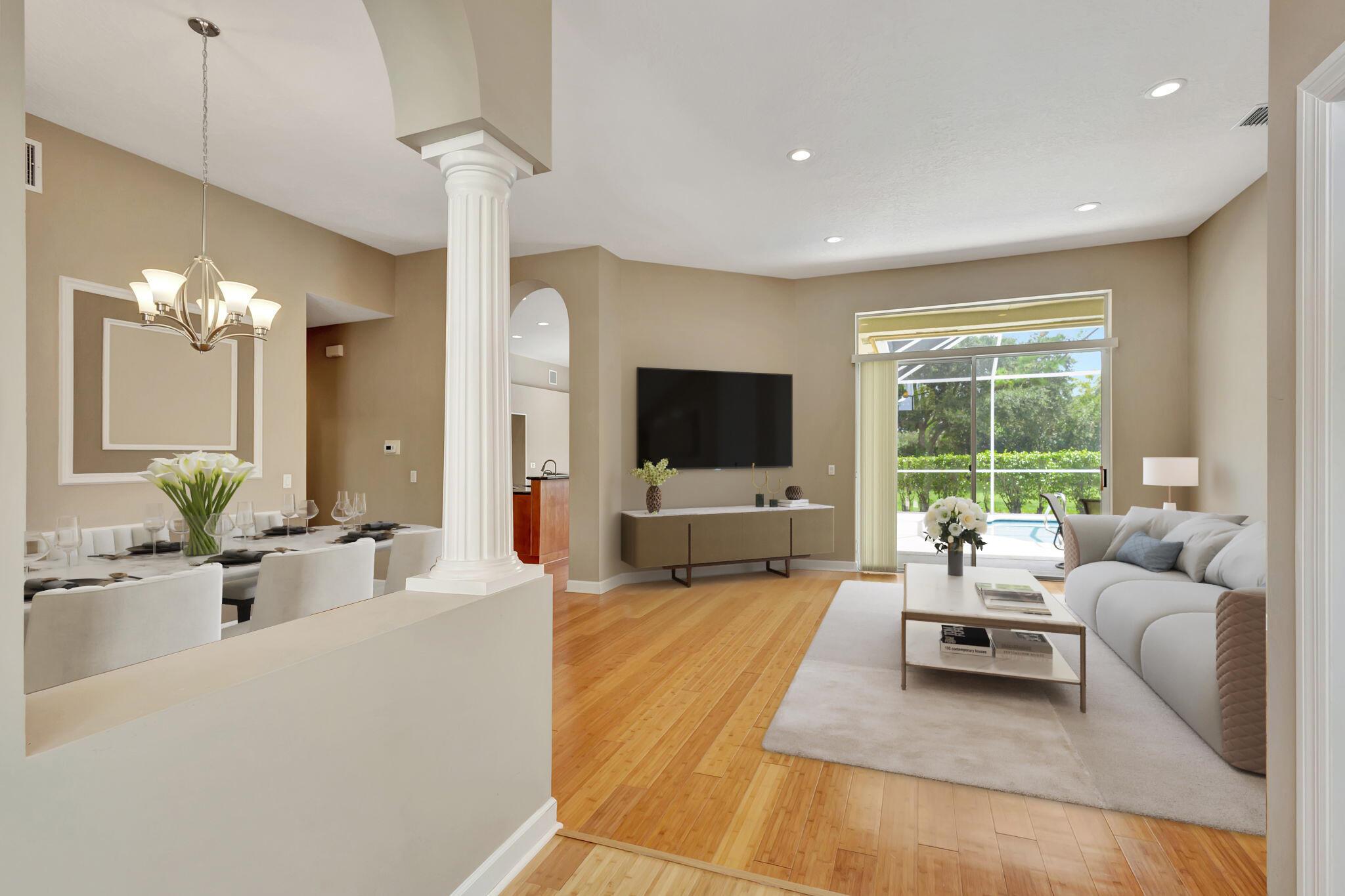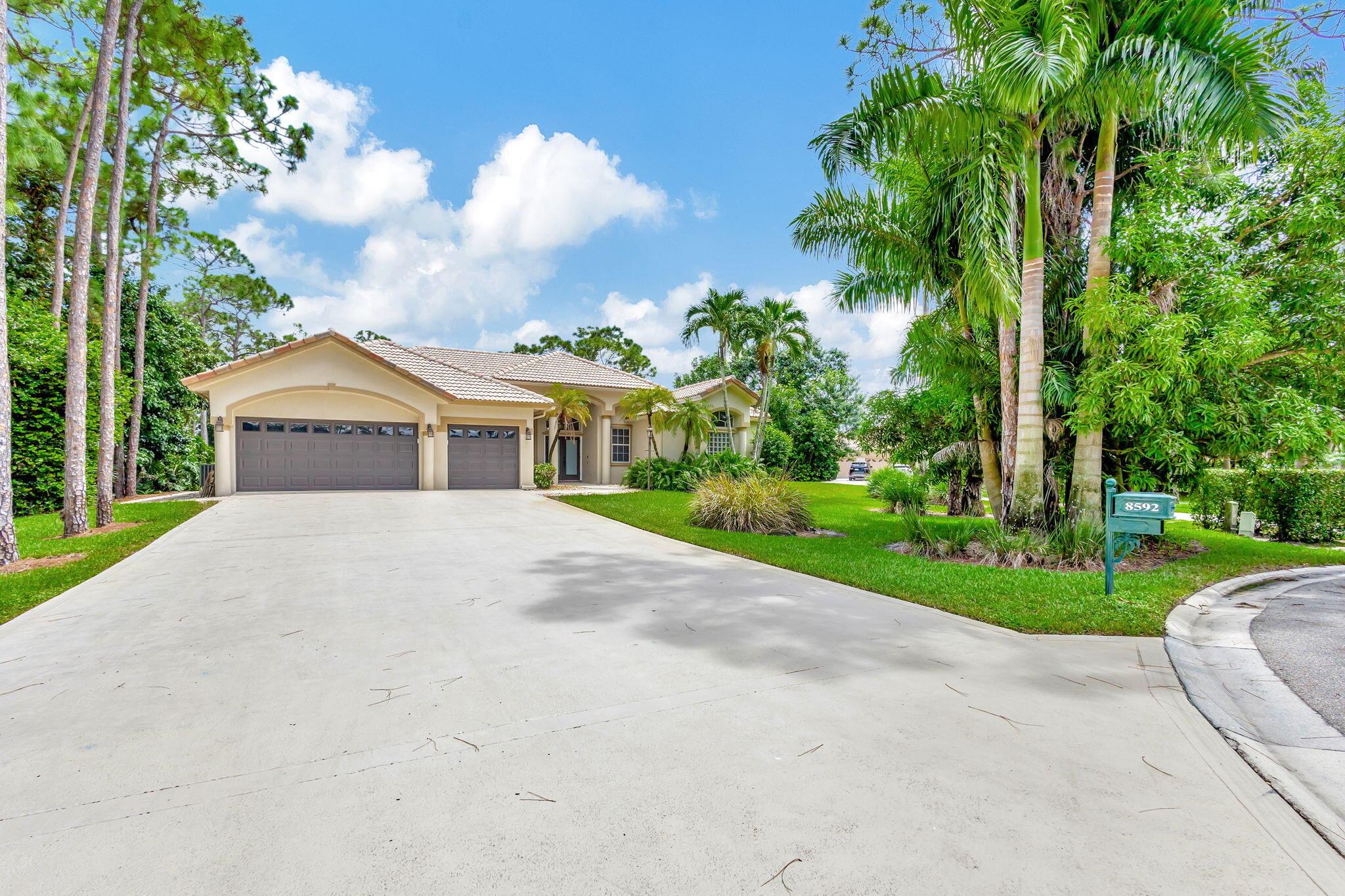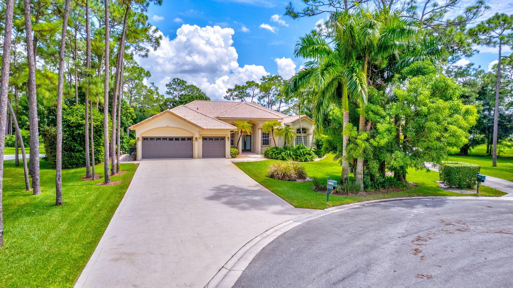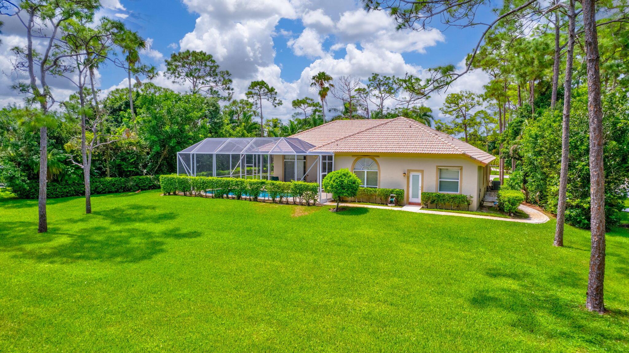 Serene setting surrounds this contemporary 4BR 3bth + office estate home nestled in the highly sought after and exclusive gated golf community of Bay Hill Estates. Expansive 1.2 acre lot nestled at the end of a cul de sac. Open spacious floor plan featuring hard wood flooring throughout the living areas & office. 4 bedrooms plus office and 3 full baths. Chef's Kitchen includes granite counter-tops & backsplash, Stainless-Steel appliances overlooking breakfast nook & family room. Master BR suite features updated bathroom dual sinks, frameless shower, oversized soaking tub, large walk-in closets overlooking enclosed screened in pool & covered porch. Newer impact front & cabana bath door as well as newer hurricane garage door. Brand new carpet BR's.