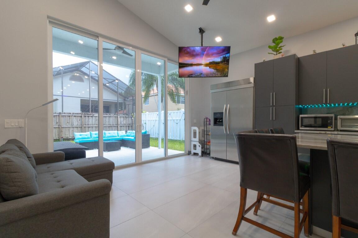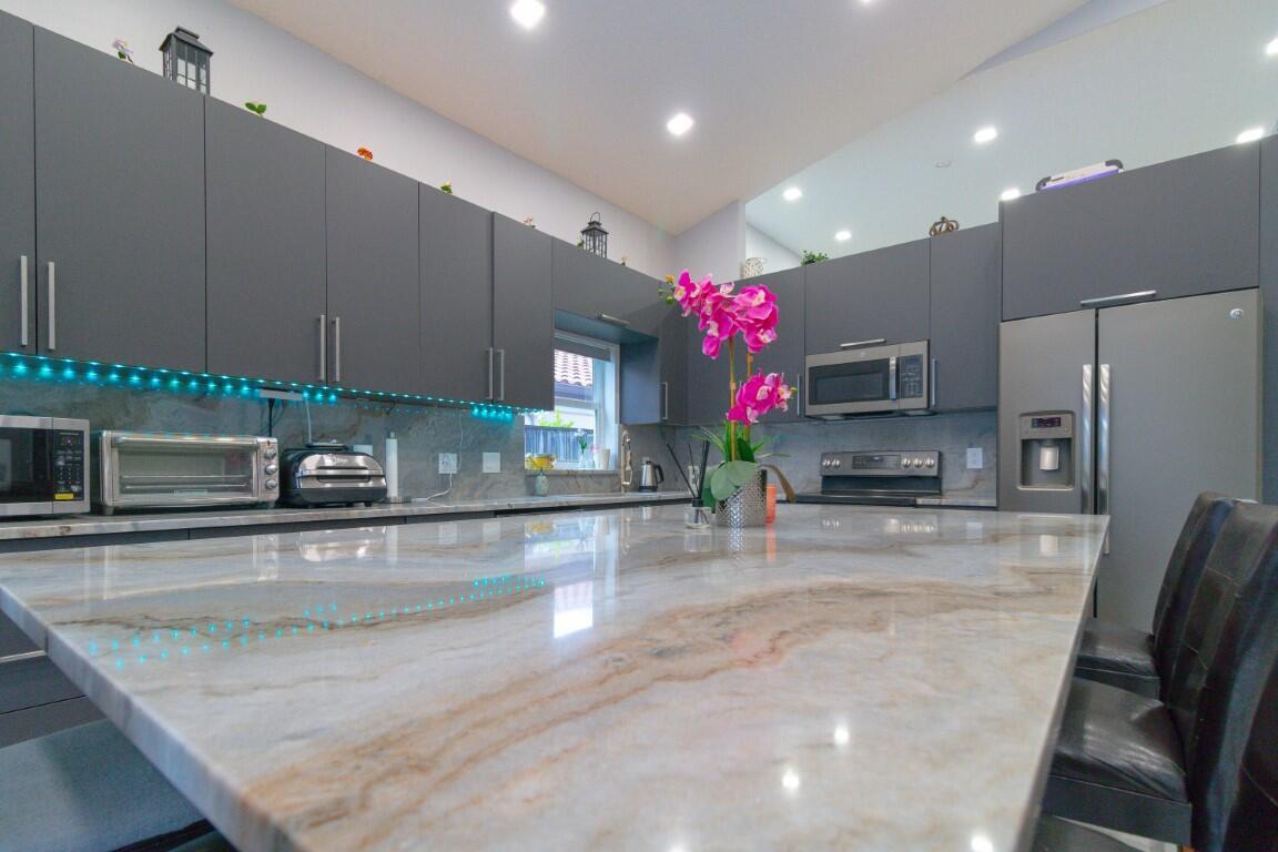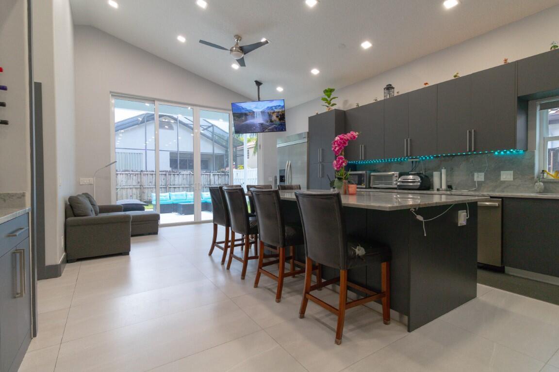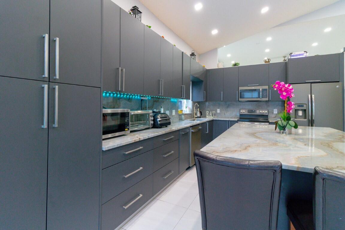 You will feel home the moment you step in! This Beautiful completely renovated smart home has a corner Lot in sought after EMBASSY LAKES community. A guard gated community with three manned gates. Once driving by the home you will fall in love with the beautiful curb appeal. The home was completely remodeled in the last 5 years including: ROOF, HIGH IMPACT WINDOWS/SLIDING DOORS/GARAGE DOOR, A/C, All Appliances. Use your smartphone to Control the garage door, AC, Light switches, Outlets, and the exterior and interior cameras. Vaulted Ceilings and open floor plan with lots of lights and rounded edges on the walls, Porcelain Tile throughout, Enormous Kitchen with XL Island for dining w/ storage underneath, Quartzite Counters everywhere, Double sinks in Master bathroom,