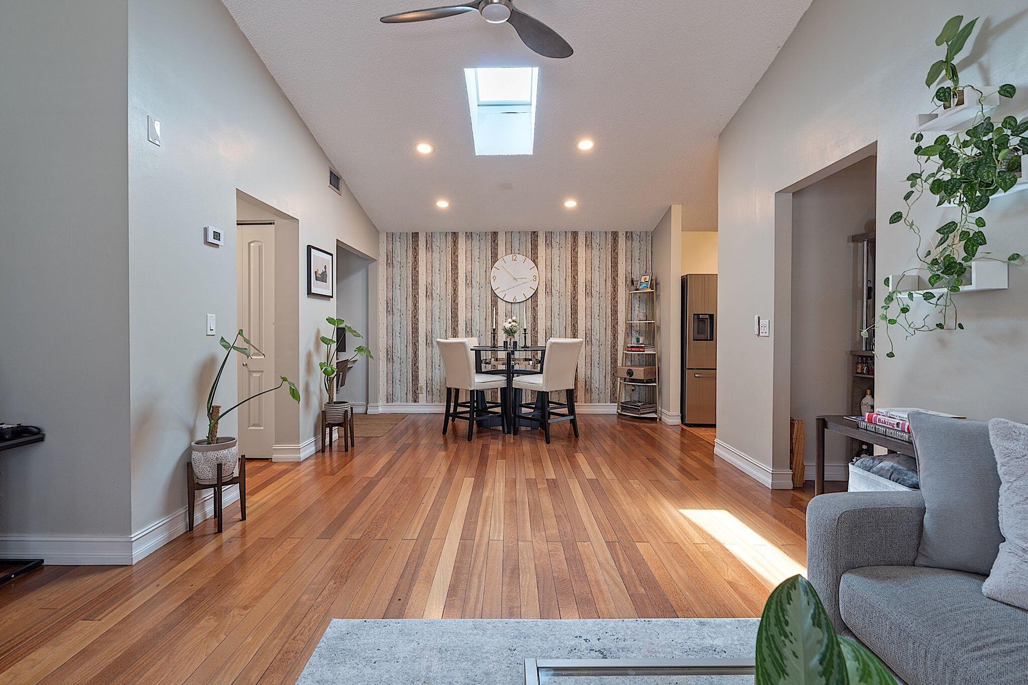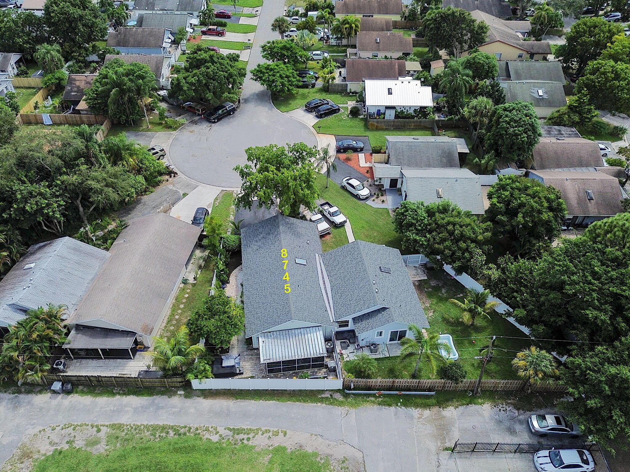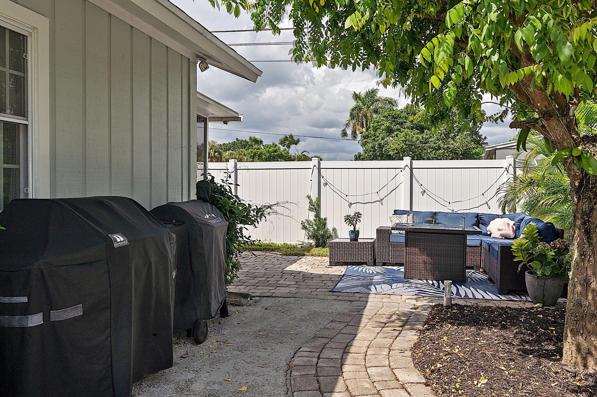 Your home search ends here! This light and bright 3 bedroom, 2 bath home boasts Brazilian hardwood flooring in the main living area, recessed lighting, an impact rated skylight, granite counters in the kitchen, a 2022 refrigerator, remodeled bathrooms, storage room, a screened back patio, a back patio with pavers, fruit trees and a private backyard oasis. And that's just the beginning! Roof replaced in 2022 including an impact rated skylight, HVAC (both condenser and air handler) replaced in 2023, interior and exterior electrical panels (200 amp) replaced in 2023, and a new vinyl fence installed this year. Located on a cul-de-sac and NO HOA! Close proximity to 1-95, shopping and entertainment.