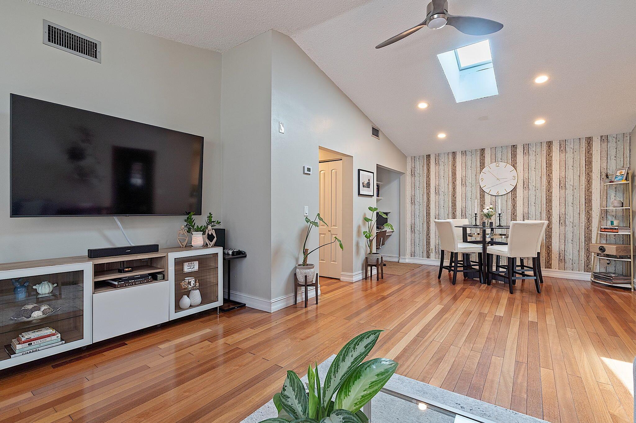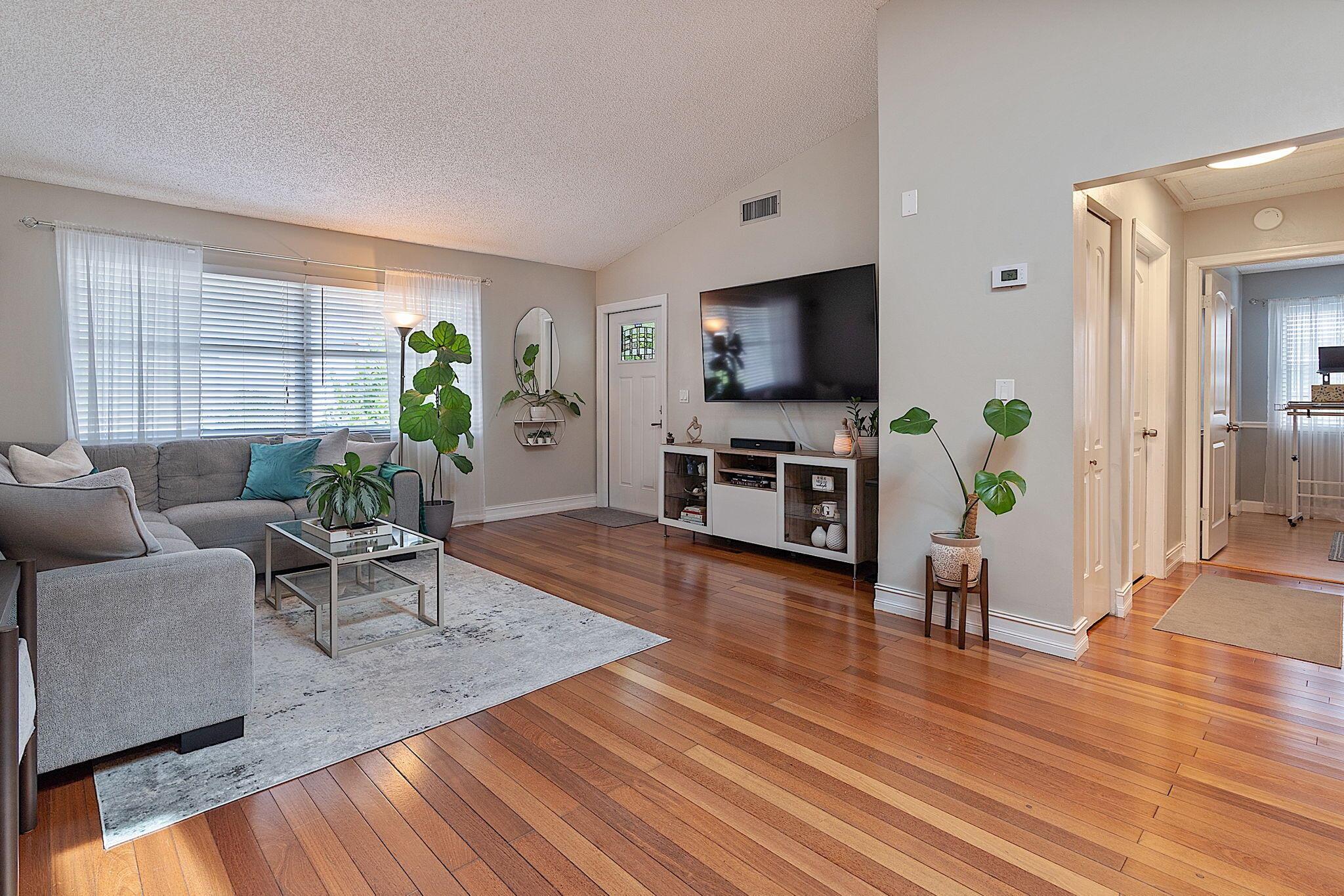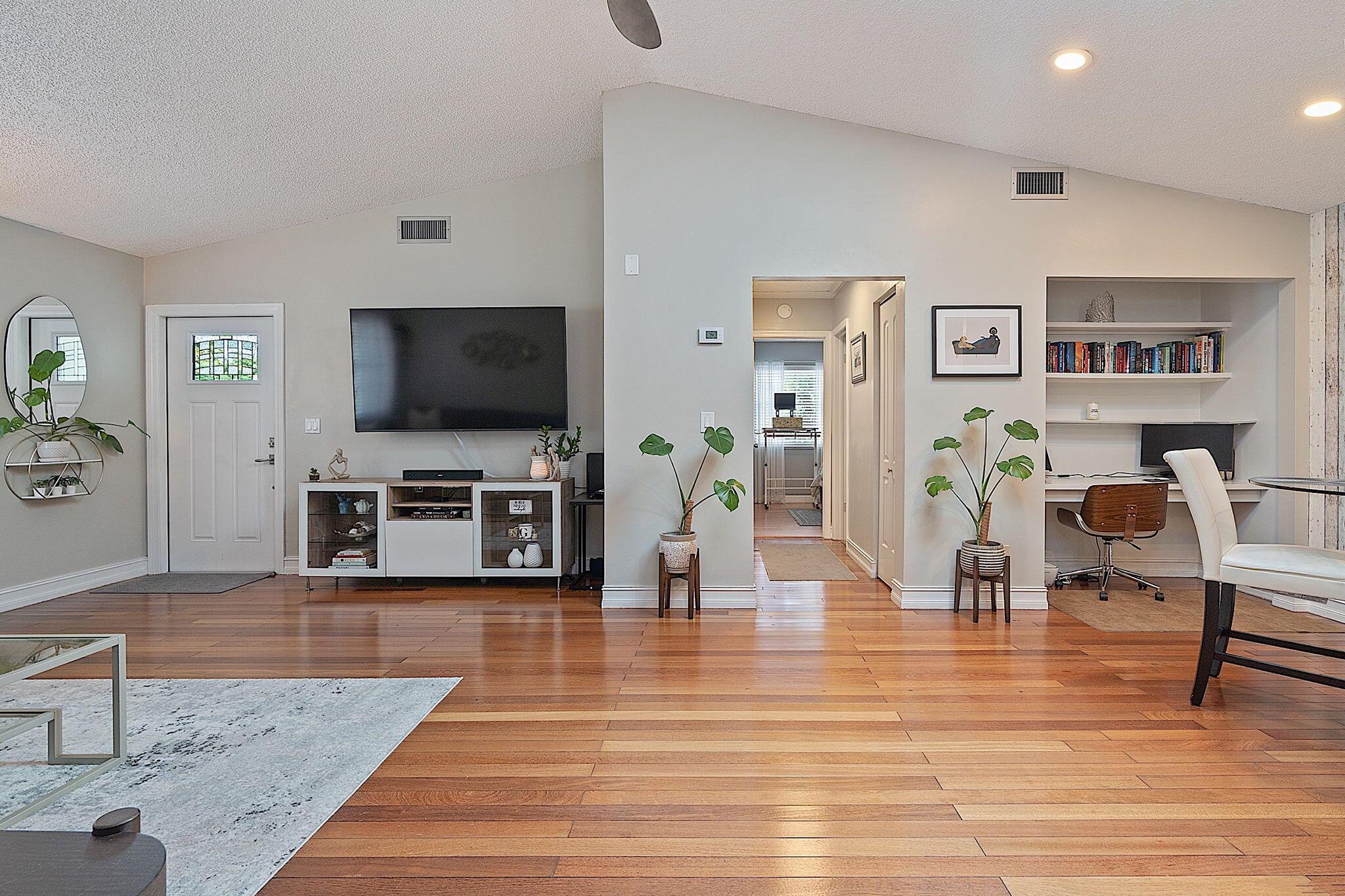 Your home search ends here! This light and bright 3 bedroom, 2 bath home boasts Brazilian hardwood flooring in the main living area, recessed lighting, an impact rated skylight, granite counters in the kitchen, a 2022 refrigerator, remodeled bathrooms, storage room, a screened back patio, a back patio with pavers, fruit trees and a private backyard oasis. And that's just the beginning! Roof replaced in 2022 including an impact rated skylight, HVAC (both condenser and air handler) replaced in 2023, interior and exterior electrical panels (200 amp) replaced in 2023, and a new vinyl fence installed this year. Located on a cul-de-sac and NO HOA! Close proximity to 1-95, shopping and entertainment.