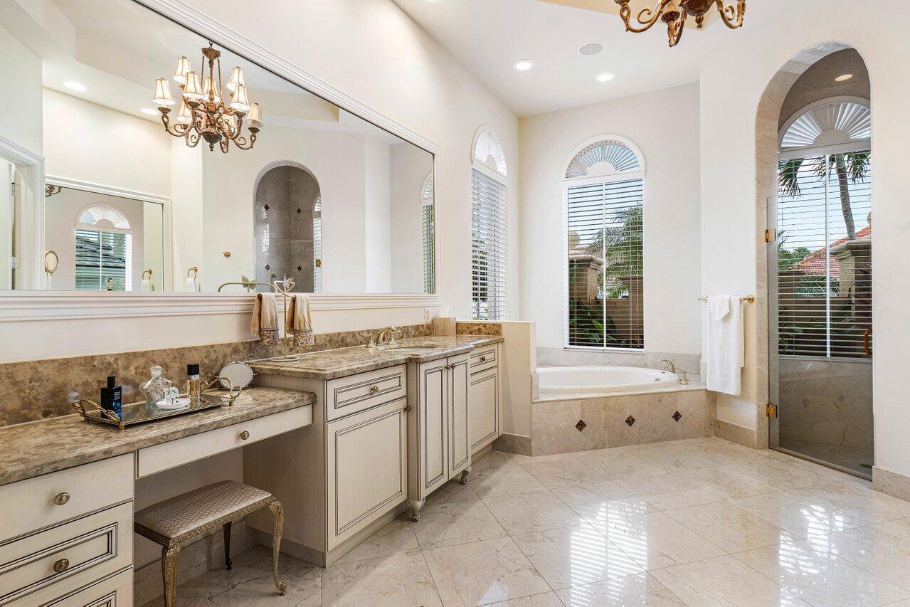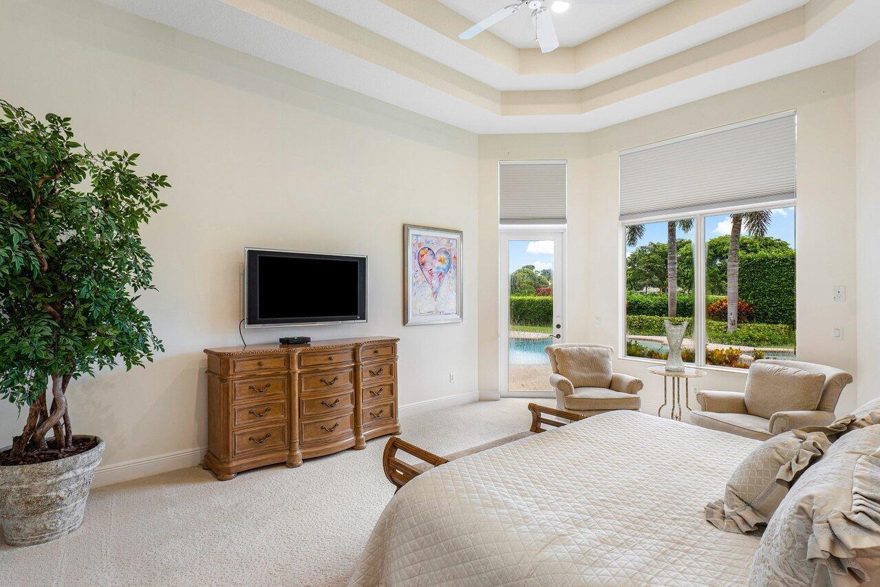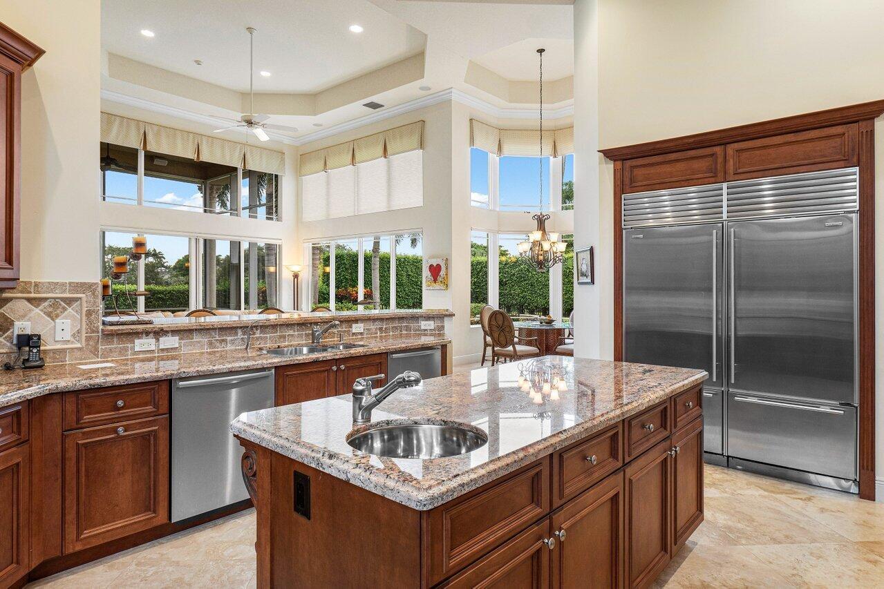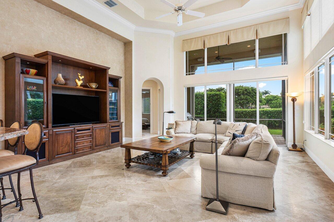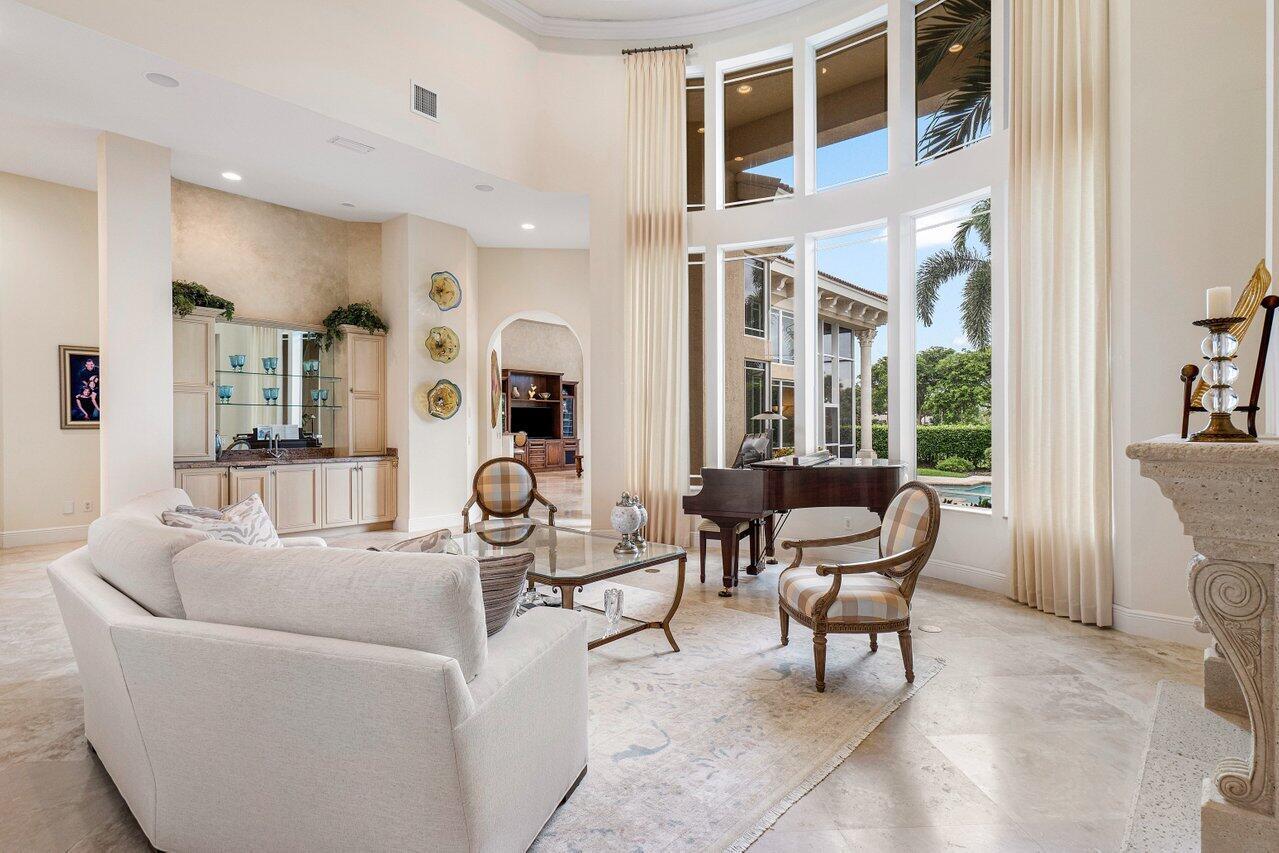With five ensuite split bedrooms plus an office with built-ins, this elelgant home is ideal for family living and remote work. Cathedral ceilings & floor-to-ceiling windows fill the home with natural light. The chef's kitchen is equipped with a gas stove, and a double fridge, all overlooking the spacious family room--perfect for entertaining. A full house generator ensures you're never left in the dark. The enormous primary suite is a retreat in itself, boasting three walk-in closets, a cozy sitting area, and a spa-like bathroom for ultimate relaxation. Step outside to your private backyard, which offers serene water views, a screened patio, and a summer kitchen--ideal for outdoor gatherings. Bocaire Country Club is a boutique mandatory membership club