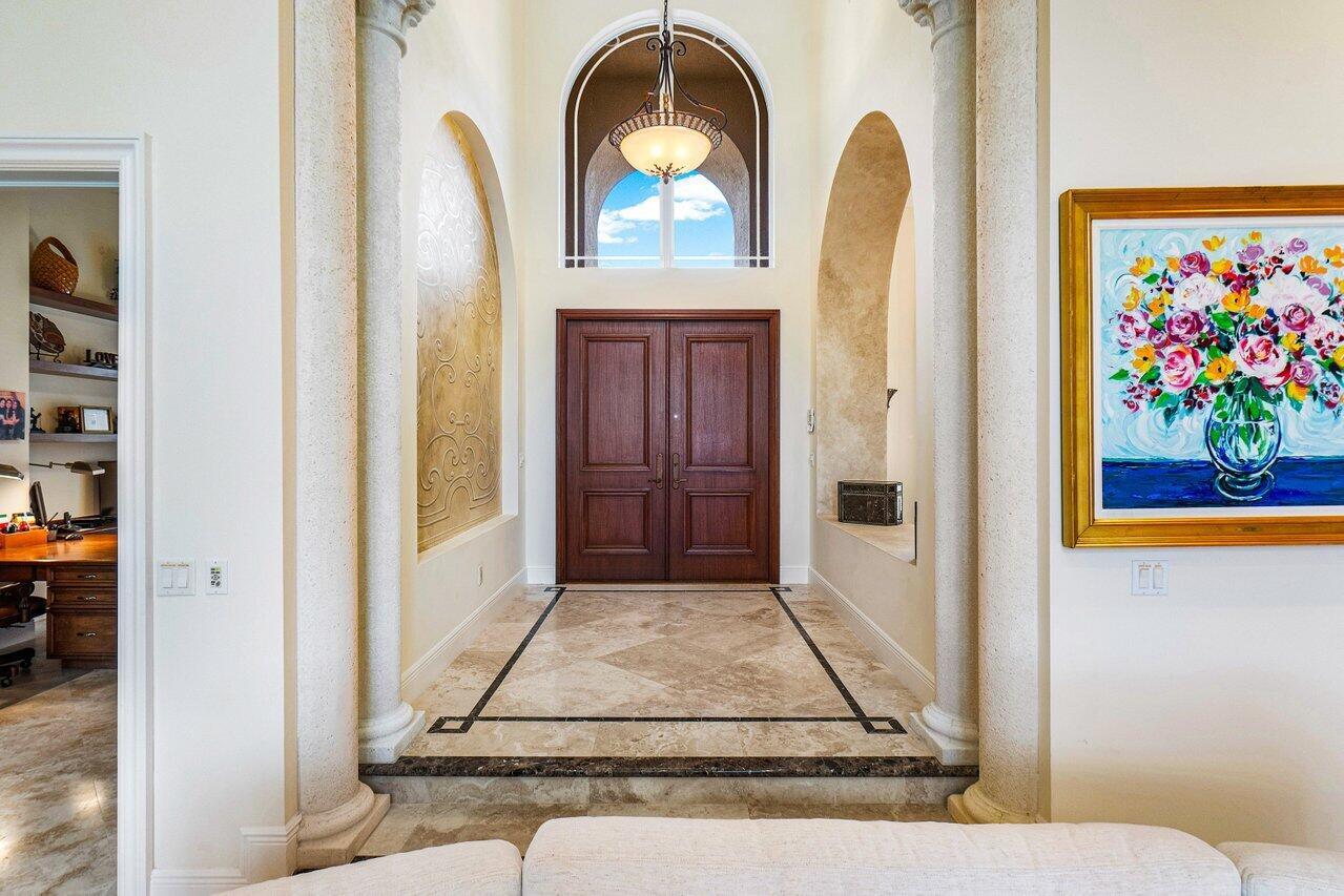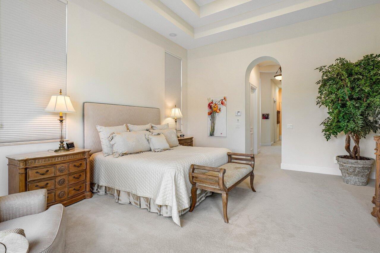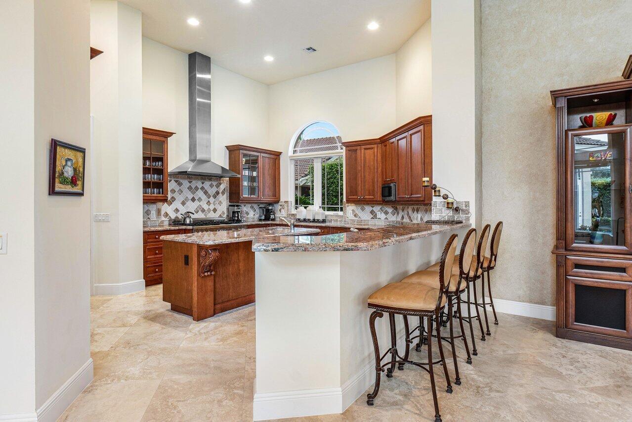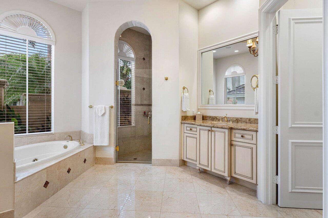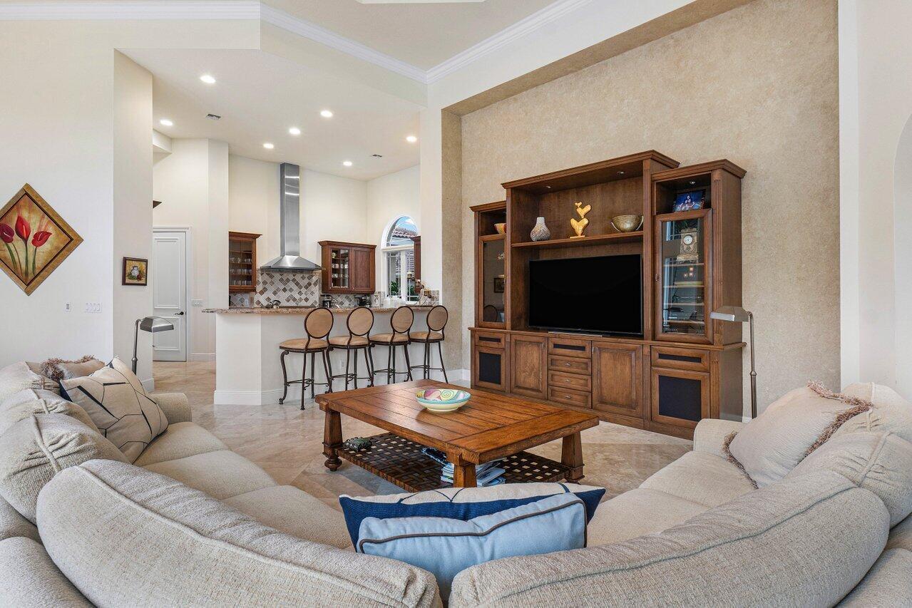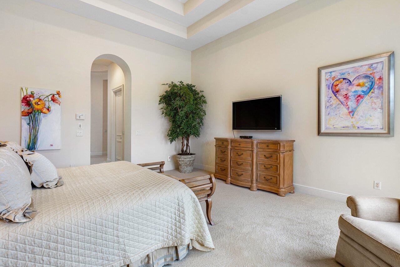 With five ensuite split bedrooms plus an office with built-ins, this elelgant home is ideal for family living and remote work. Cathedral ceilings & floor-to-ceiling windows fill the home with natural light. The chef's kitchen is equipped with a gas stove, and a double fridge, all overlooking the spacious family room--perfect for entertaining. A full house generator ensures you're never left in the dark. The enormous primary suite is a retreat in itself, boasting three walk-in closets, a cozy sitting area, and a spa-like bathroom for ultimate relaxation. Step outside to your private backyard, which offers serene water views, a screened patio, and a summer kitchen--ideal for outdoor gatherings. Bocaire Country Club is a boutique mandatory membership club