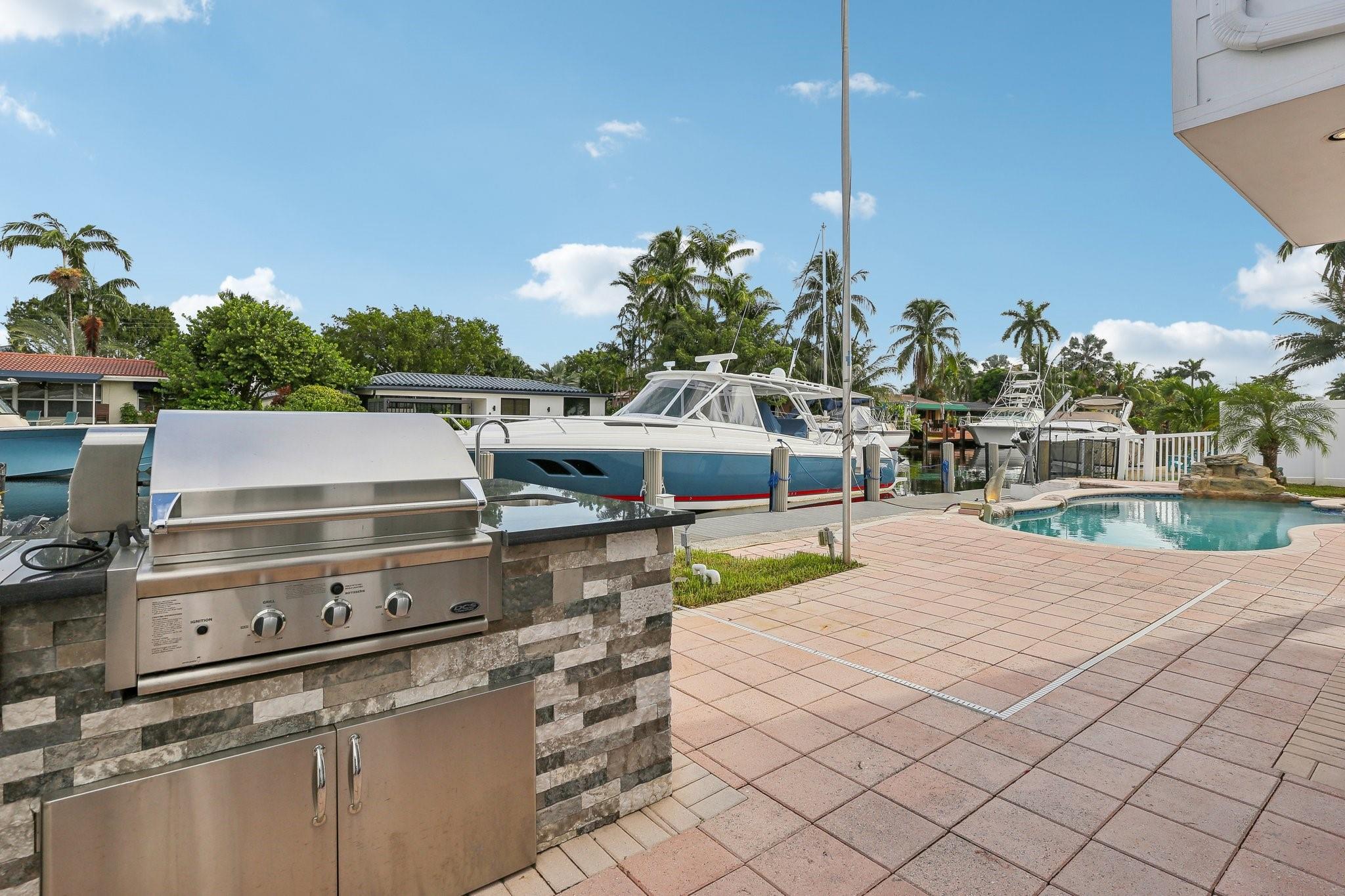 Discover the ultimate waterfront lifestyle with 65 feet of prime frontage in this stunning 3-bedroom, 3-bathroom retreat. Each spacious bedroom comes with a private ensuite, ensuring comfort and seclusion. The grand circular marble driveway and ample street parking offer convenience for family and guests. Step outside to your personal oasis featuring a heated saltwater pool and a gourmet outdoor kitchen, perfect for year-round gatherings. A newly extended dock on one of the widest canals provides direct ocean access with no fixed bridges. Enjoy scenic cruises along the New River or explore the nearby Las Olas shops and restaurants. Don’t miss out on this exceptional property—schedule your viewing today!