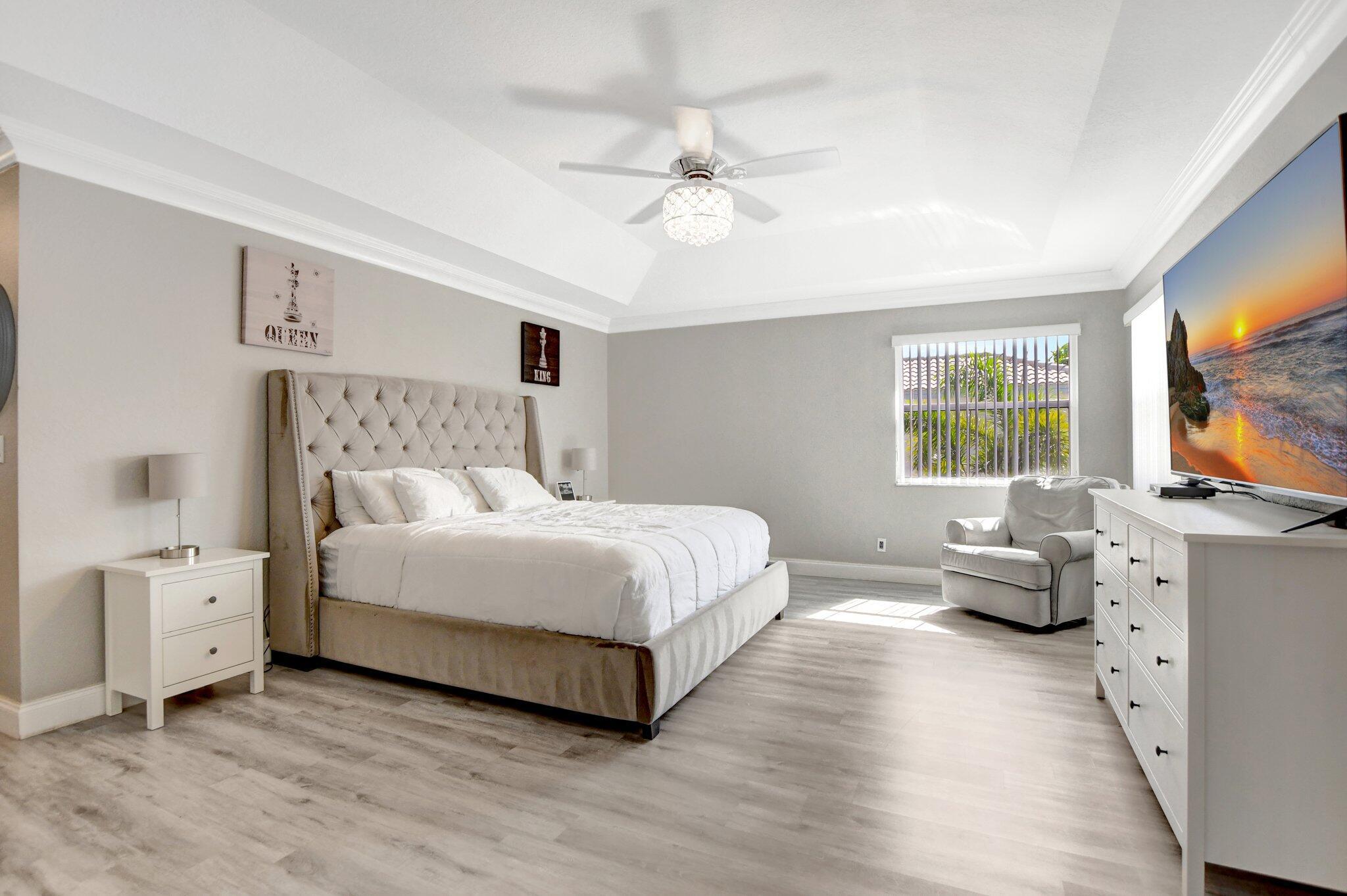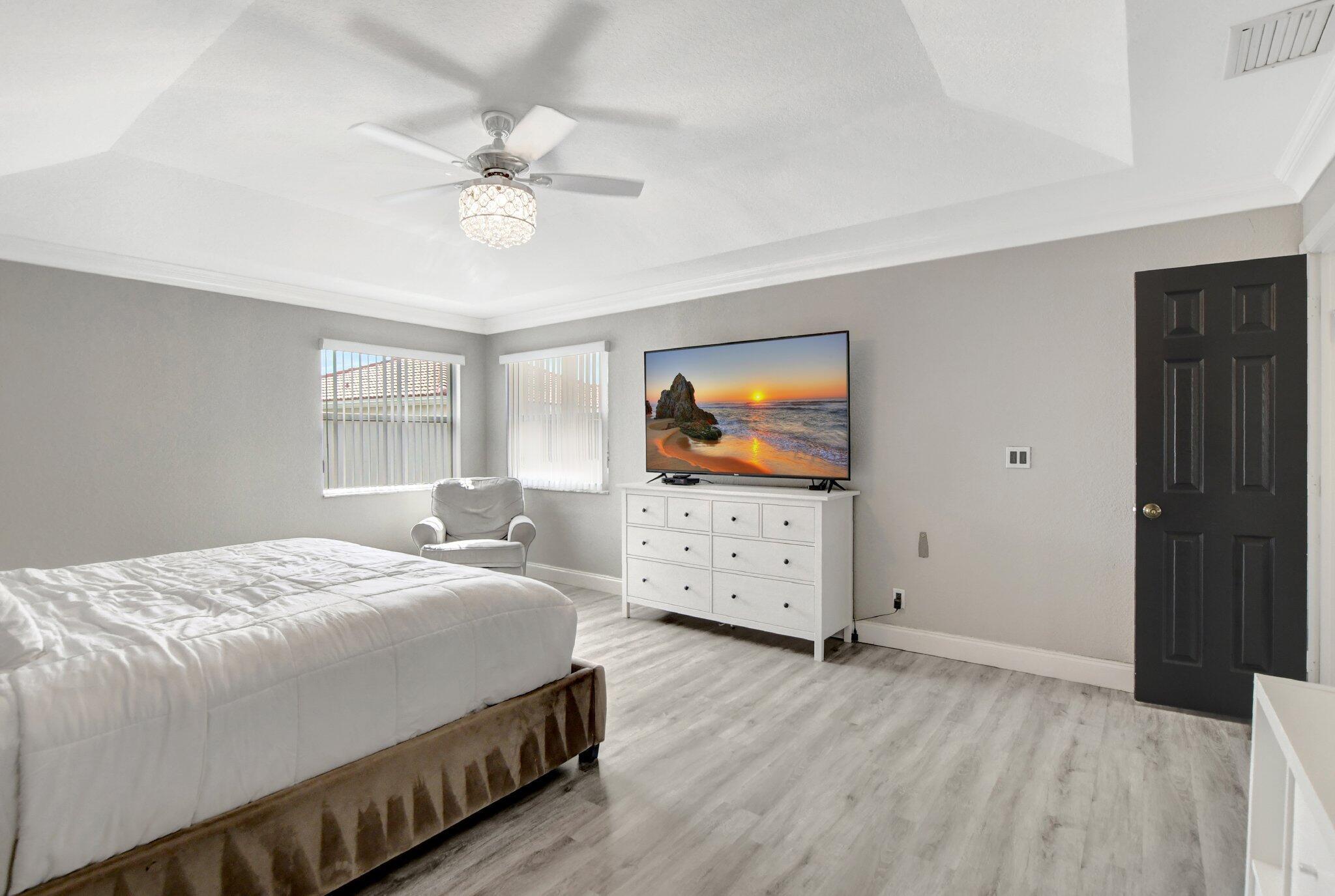 Welcome to this stunning 4-bedroom, 4-bathroom pool home in the gated Regatta subdivision of Mission Bay. Boasting over 2,800 sq. ft., this residence features a brand-new kitchen with white and espresso shaker cabinets, granite countertops, and stainless steel appliances. Enjoy high ceilings with crown molding, full accordion shutters, and a private enclosed pool area.Residents benefit from low HOA dues that include a security gate, high-speed internet, and access to the Mission Bay Clubhouse, featuring a saltwater pool, jacuzzi, sauna, and fitness center. The Community Park offers basketball courts, soccer fields, and playgrounds.Zoned for A+ rated schools within 3 miles, Mission Bay is West Boca Raton's premier family neighborhood.
