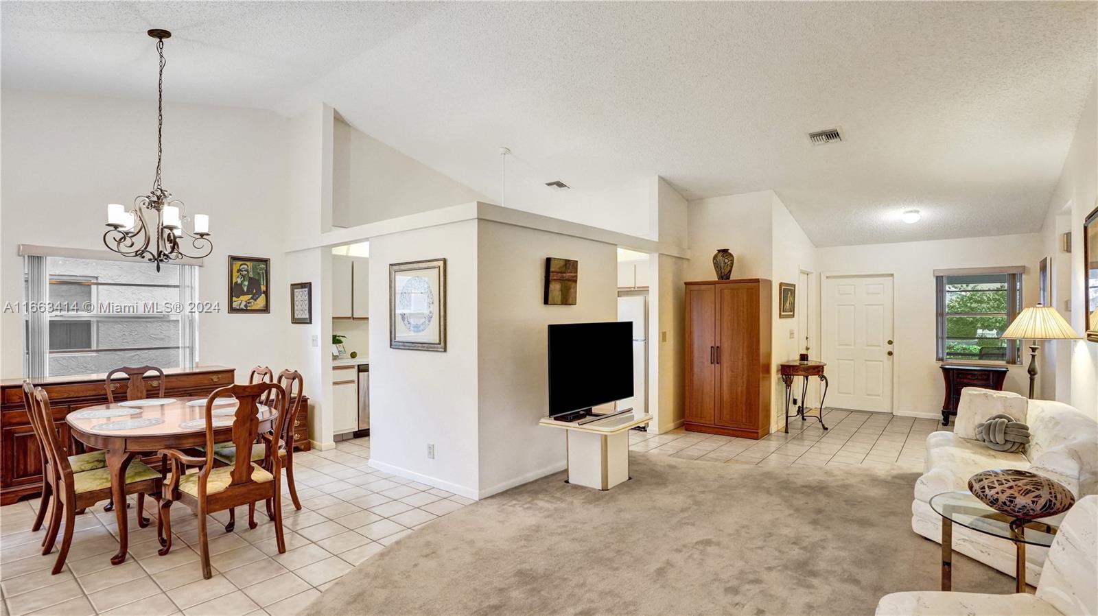 • Característica Interior:BedroomOnMainLevel, EntranceFoyer, EatInKitchen, FirstFloorEntry, LivingDiningRoom, VaultedCeilings
