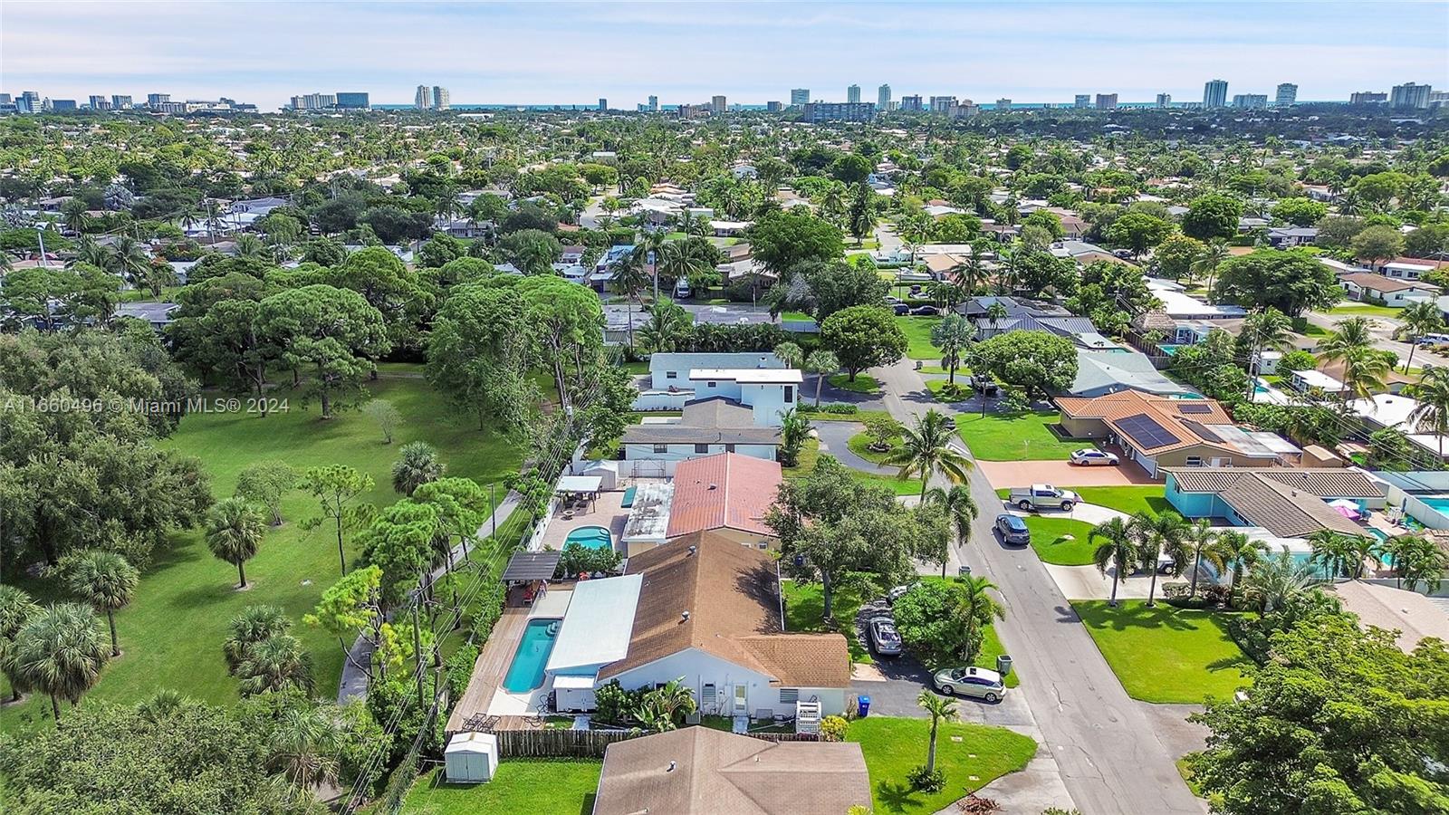 Exquisitely remodeled 4/3 Single Family Residence in the sought-after Garden Isles neighborhood in Pompano Beach. Backs up to beautiful Sgt Kip Jacoby Park. Facilities include rentable pavilion shelters, picnic areas, walking/ jogging track, a playground, tennis and more. Minutes away from prestigious Pine Crest School. The home is only 5 minutes to the beach, 15 minutes to downtown Ft. Laud. and minutes away from I-95 and US-1. Upgrades include a new roof, high impact windows, beautiful porcelain flooring throughout, fully remodeled bathrooms, new HVAC systems to cool the entire home, refurbished pool and equipment, new pool deck, new landscaping w/irrigation system, new fence and much more. Check out the PRIVATE MASTER BEDROOM upstairs with new master bath! Open House Sat 10/12 12-3pm.
