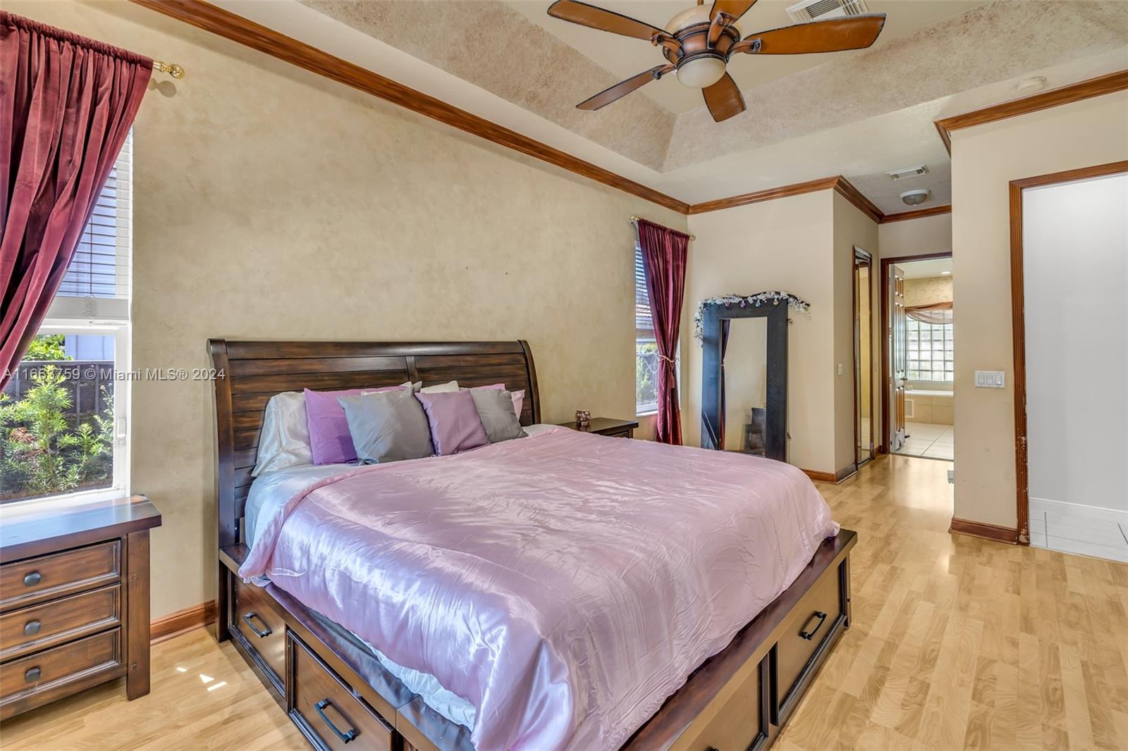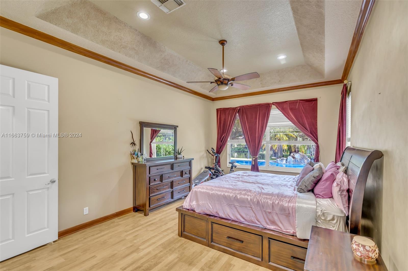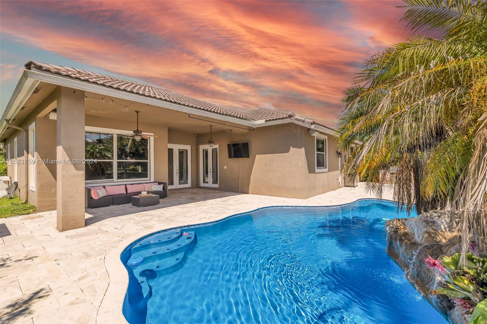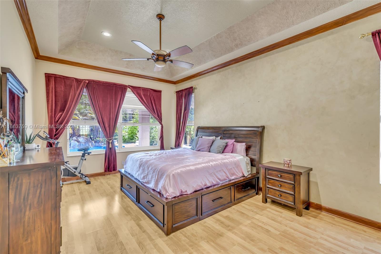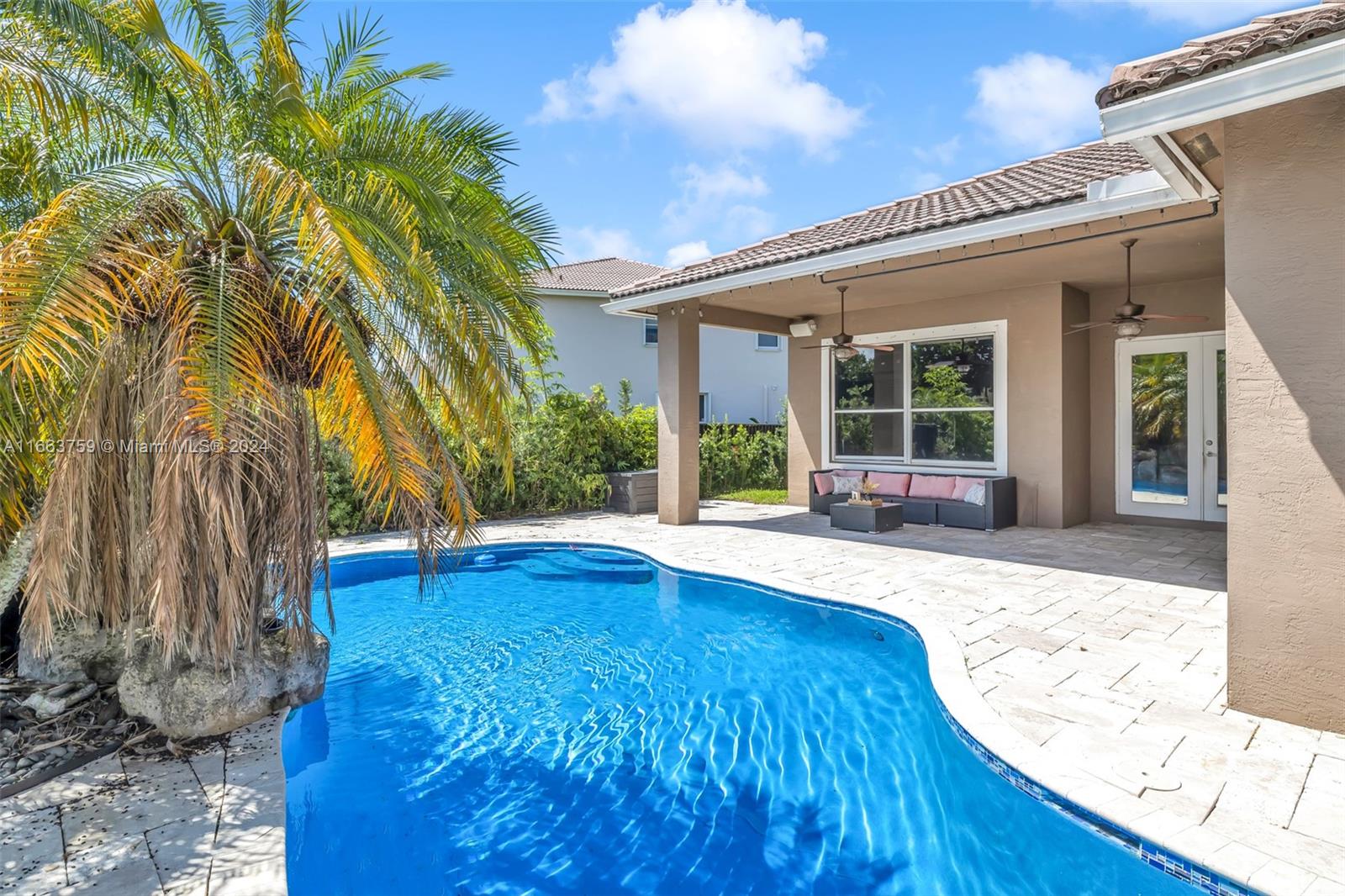 WELCOME HOME TO THS VERY DESIRABLE CLAYMORE MODEL IN VANDERBILT ESTATES. FOUR BEDROOMS PLUS OFFICE/DEN THREE FULL BATHROOMS TRIPLE SPLIT FLOOR PLAN OFFERS LOADS OF NATURAL LIGHT & CROWN MOLDING THROUGHOUT. KITCHEN OFFERS SS APPLIANCES, DOUBLE OVENS, FLAT COOK TOP, COUNTER SEATING & IS OPEN TO HUGE GREAT ROOM. FORMAL LIVING ROOM & DINING ROOM PERFECT FOR GATHERINGS. MASSIVE PRIMARY SUITE HAS TWO WALK-IN CLOSETS SOAKING TUB, SEPERATE SHOWER & DUAL SINKS. STEP OUTSIDE TO A COVERED PATIO, SUMMER KITCHEN & OPEN POOL, WITH TRANQUIL VIEW OF THE WATER. HOME IS LUSHLY LANDSCAPED & SITUATED ON A CULDESAC. A/C 2020. ADD YOUR FINISHING TOUCHES ON THIS GREAT HOME! "A" RATED SCHOOLS. CLOSE TO SHOPPING, EATERIES & PARKS. EASY ACCESS TO SAWGRASS EXPY.