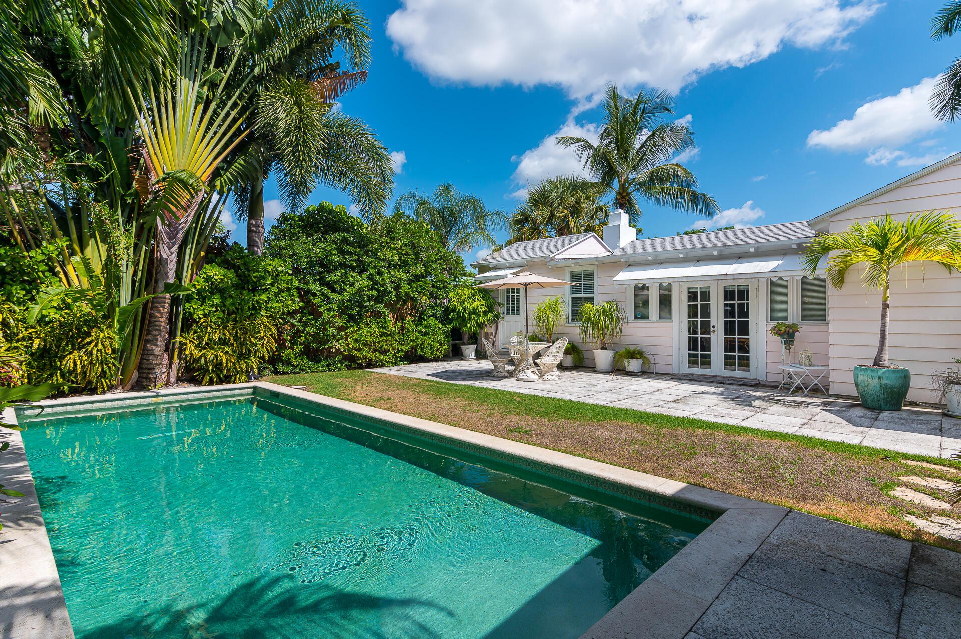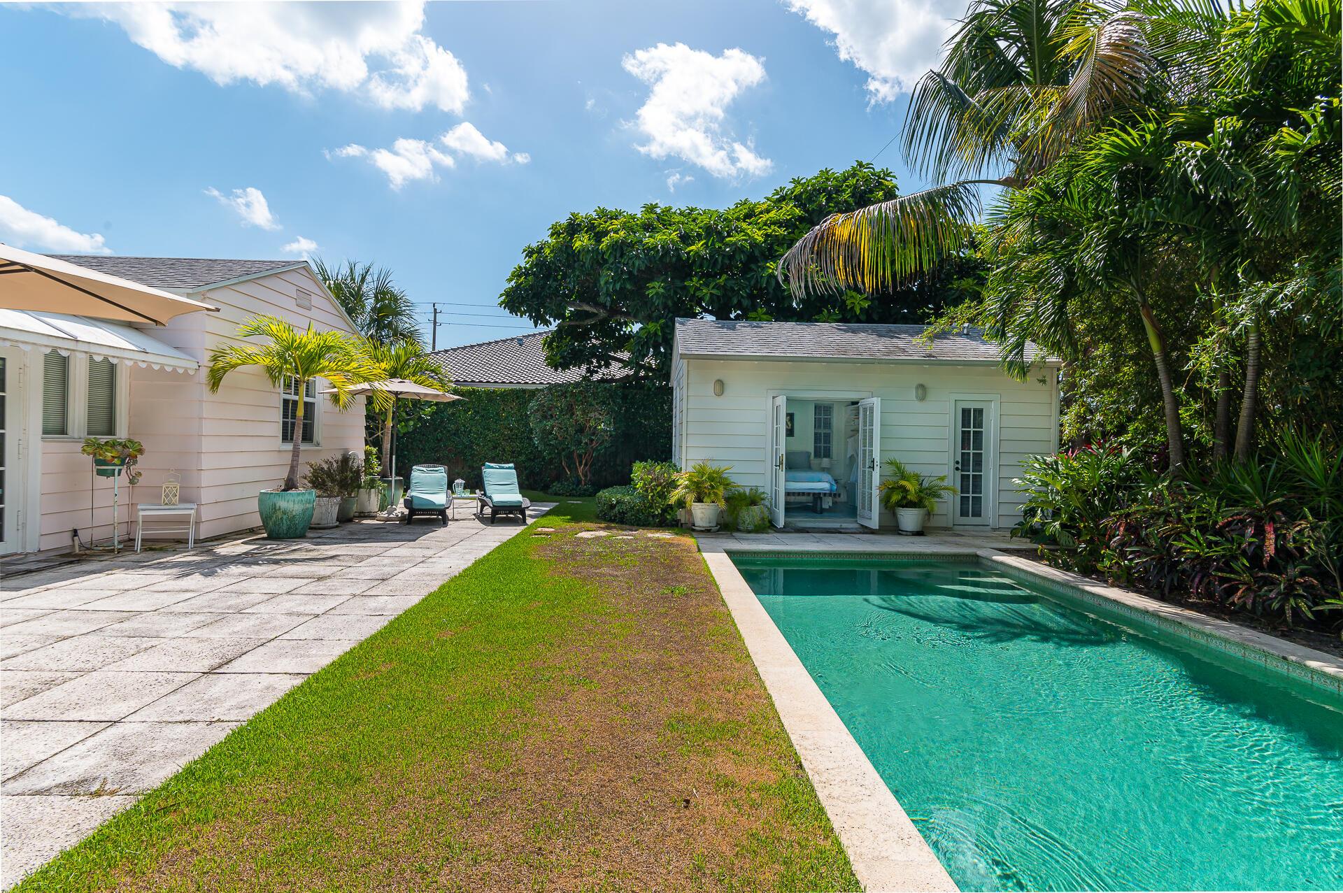 Charming Bermuda cottage with guest house and pool! Wonderful seasonal getaway. The main house has 2 bedrooms and 1 bath. Guest house has a 1 bedroom and 1 bath at the end of a wonderful long lap pool. Featured in Vogue UK, this Vintage Florida home has been rented for multiple seasons by tenants who had to return before they purchased a home. It has been loved by all. Not to be missed.