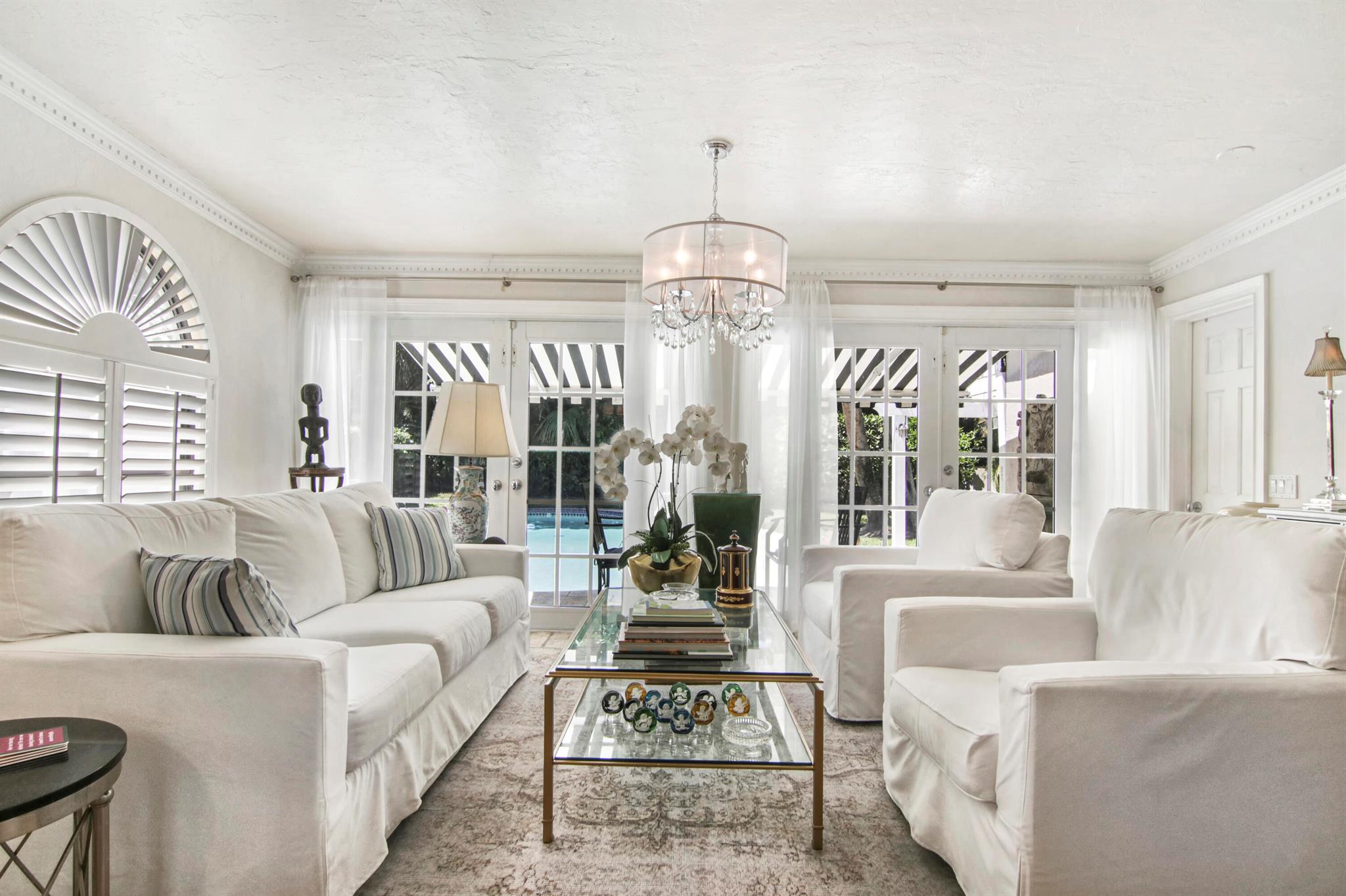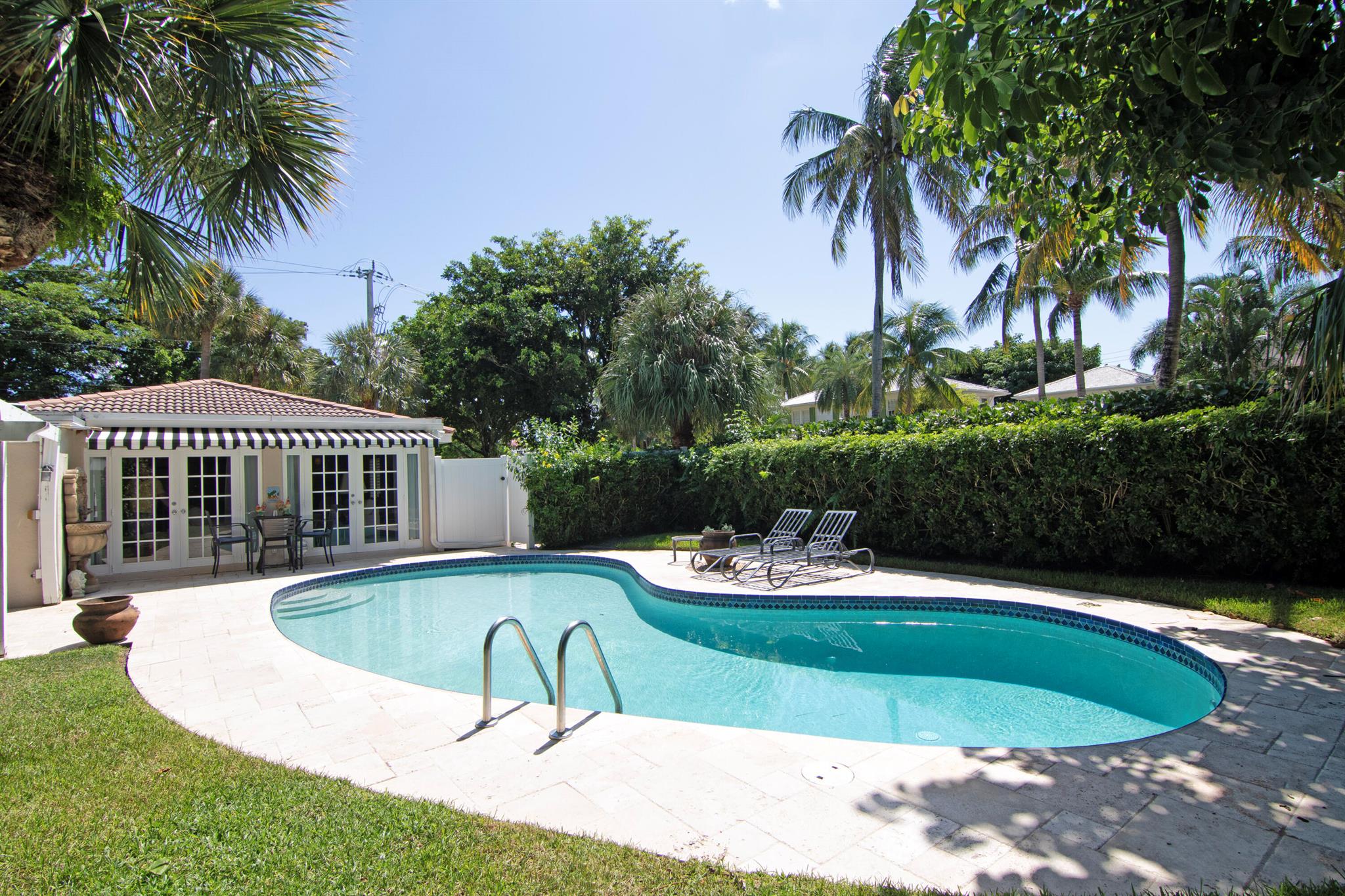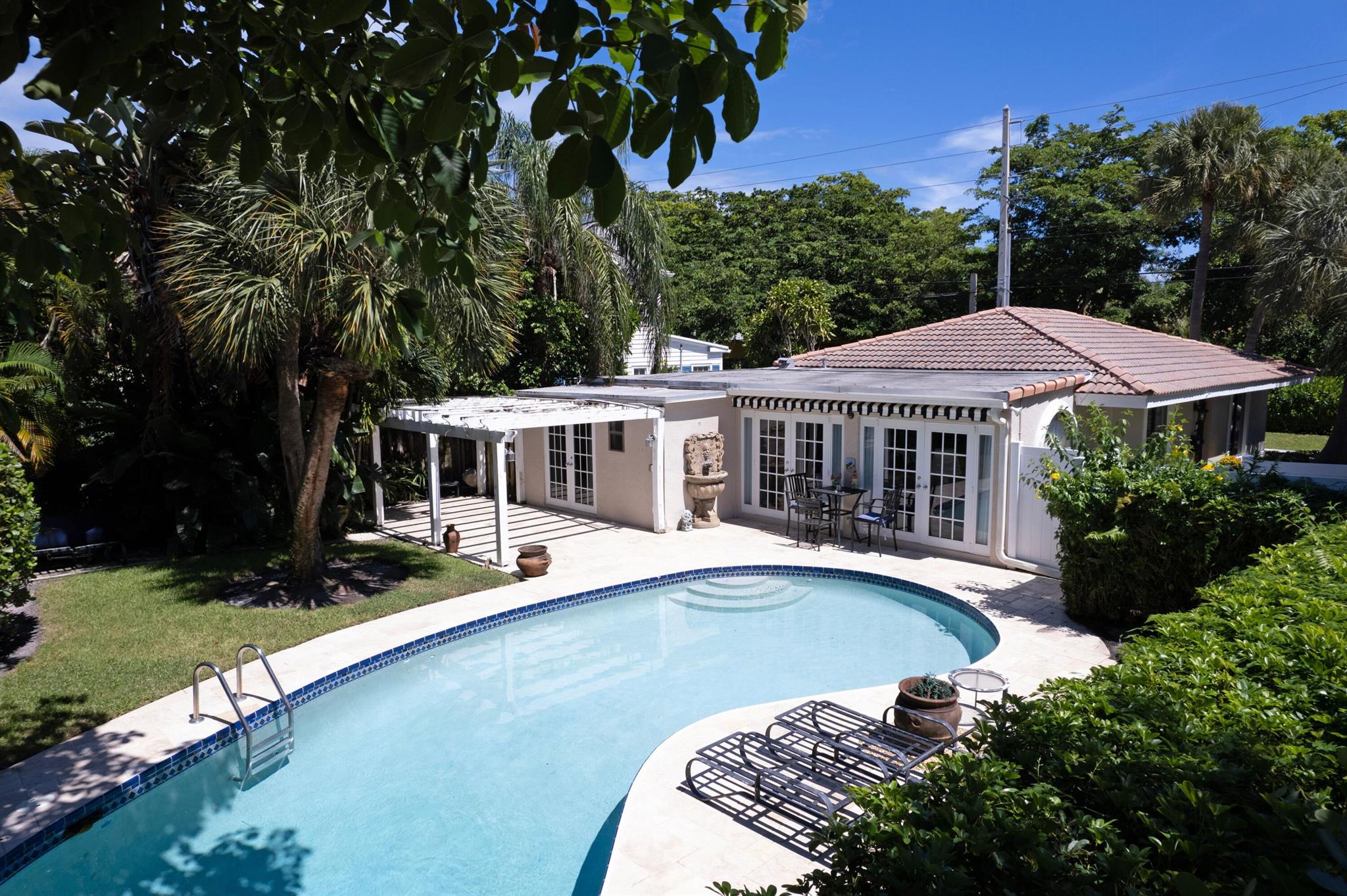 Charming bungalow on a coveted corner lot in the exclusive El Cid neighborhood of West Palm Beach. Just one block on a tree lined street to Flagler Drive and the Intracoastal waterway. Open concept, high ceilings and many windows provides tons of natural light. Newer AC and hot water, plantation shutters; French doors to the large pool surrounded by meticulous lush landscaping and high clusia hedges is both serene & very private. On a 9070 SF +/- lot, this home is non-contributing which means you have many options here! Move in, add on, or build new!