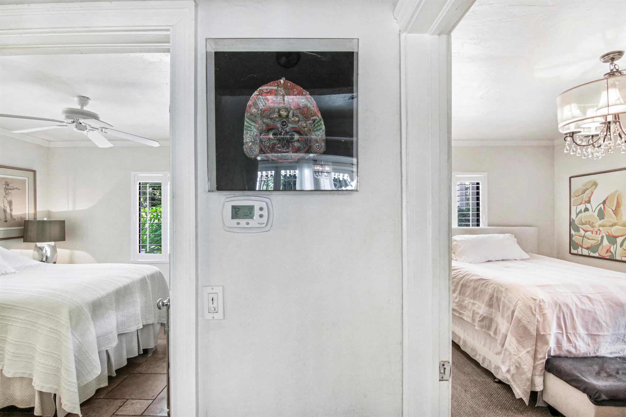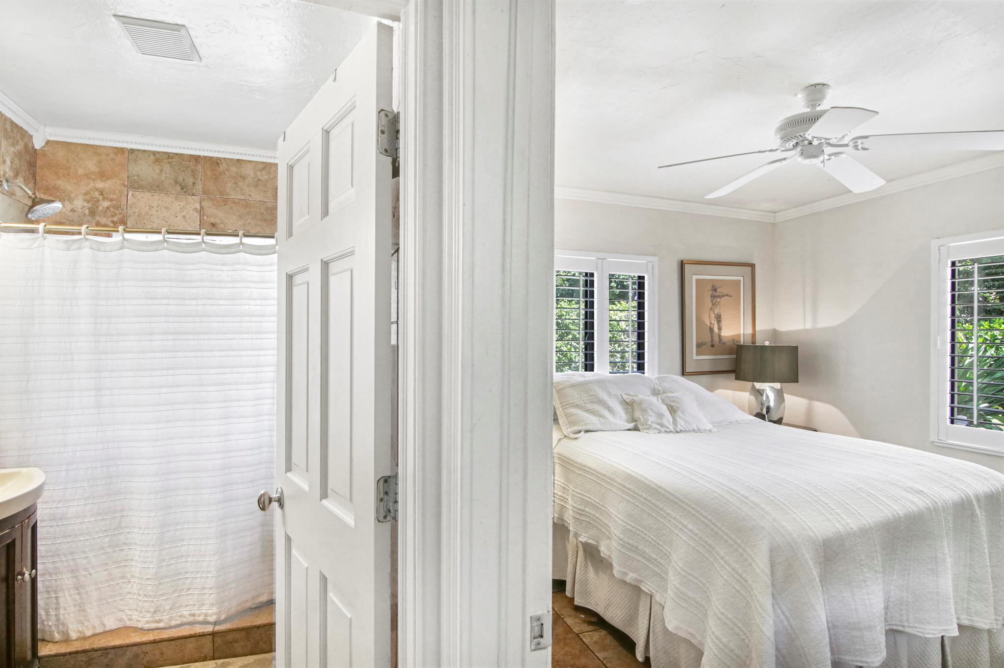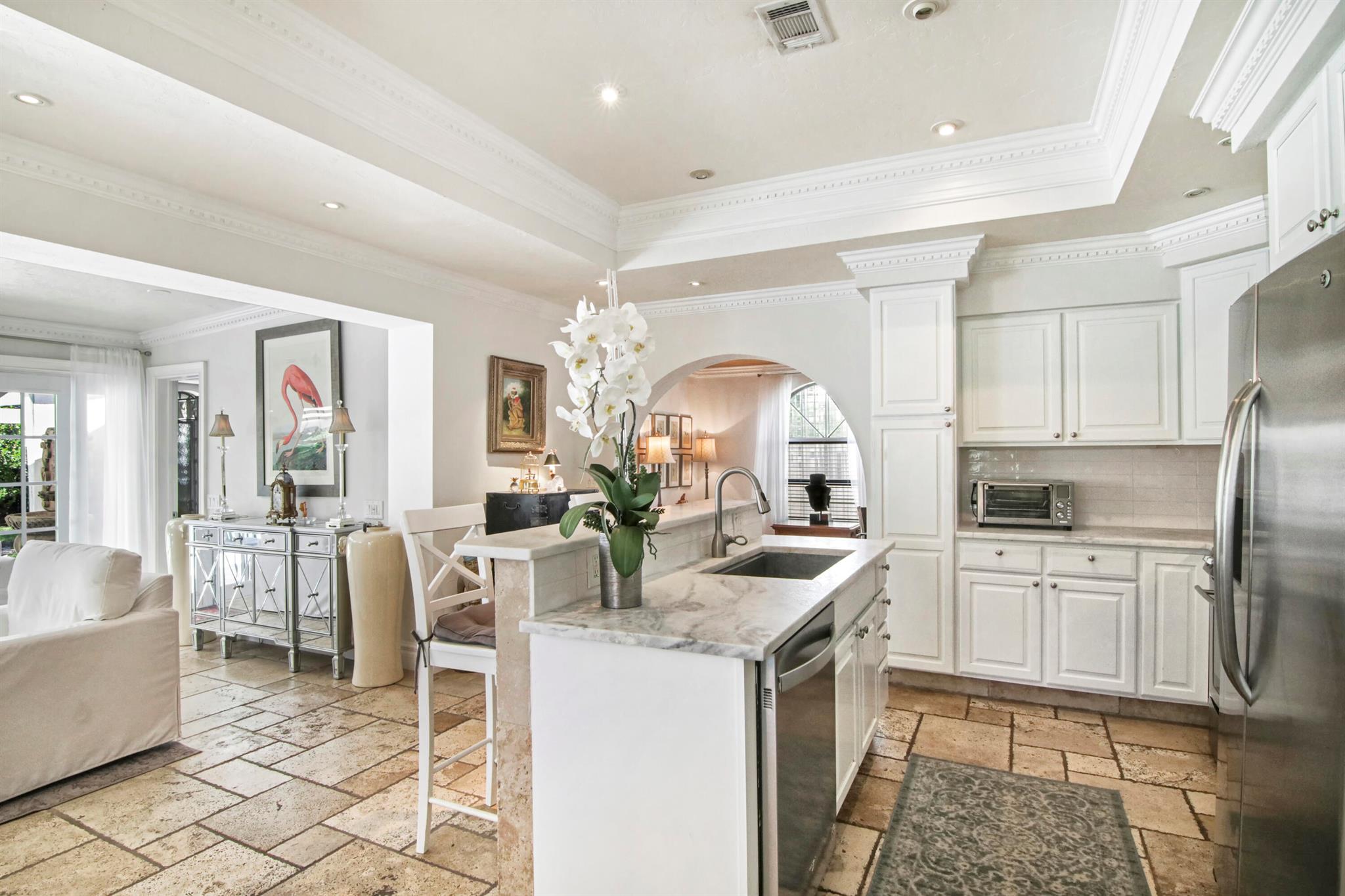Charming bungalow on a coveted corner lot in the exclusive El Cid neighborhood of West Palm Beach. Just one block on a tree lined street to Flagler Drive and the Intracoastal waterway. Open concept, high ceilings and many windows provides tons of natural light. Newer AC and hot water, plantation shutters; French doors to the large pool surrounded by meticulous lush landscaping and high clusia hedges is both serene & very private. On a 9070 SF +/- lot, this home is non-contributing which means you have many options here! Move in, add on, or build new!