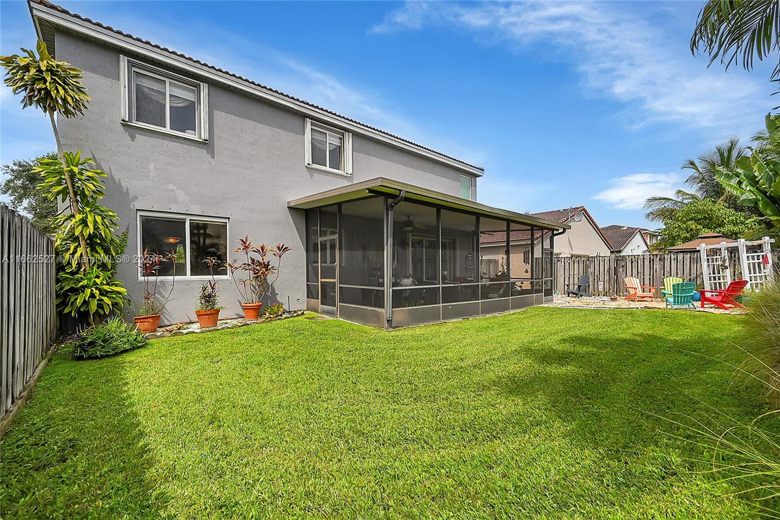 BRAND NEW ROOF! Great opportunity to live in the desirable city of Davie. This two-story house also offers partial impact windows and new water heater. It features a big backyard screen patio with a fenced yard. 4 bedrooms upstairs with 2 baths and 1/2 bath downstairs. Hurricane protected. Separate laundry room. House is nestled in a serene and picturesque community with A+ schools. Whether you're sipping coffee or hosting gatherings, this well maintained house provides plenty of space and natural lightning with high ceilings. The beautiful and friendly community provides easy access to I-595 and airport. Close to shopping and dining options. The Village at Harmony Lake includes swimming pool, tennis courts, handball courts, park and low HOA FEE. Make this your perfect new home!!