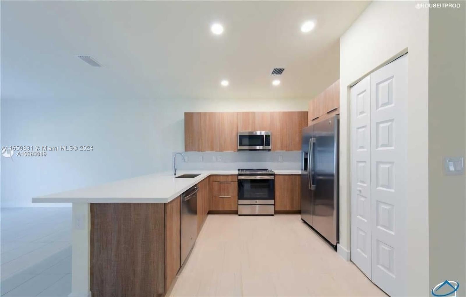 Well-maintained end-unit townhouse located in Astoria at Central Park, Doral, featuring 3 bedrooms, 2.5 baths, and a great layout with green space on the side, only one detached neighbor, and no rear neighbor for added privacy. Part of the highly sought-after Grand Bay community, which offers a fantastic clubhouse with pools, gym, tennis court, and more. Conveniently located near major highways like Turnpike and 826, with easy access to Dolphin Mall, Downtown Doral, International Mall, and City Place. Vacant, Laminate floor will be installed to replace the carpet.