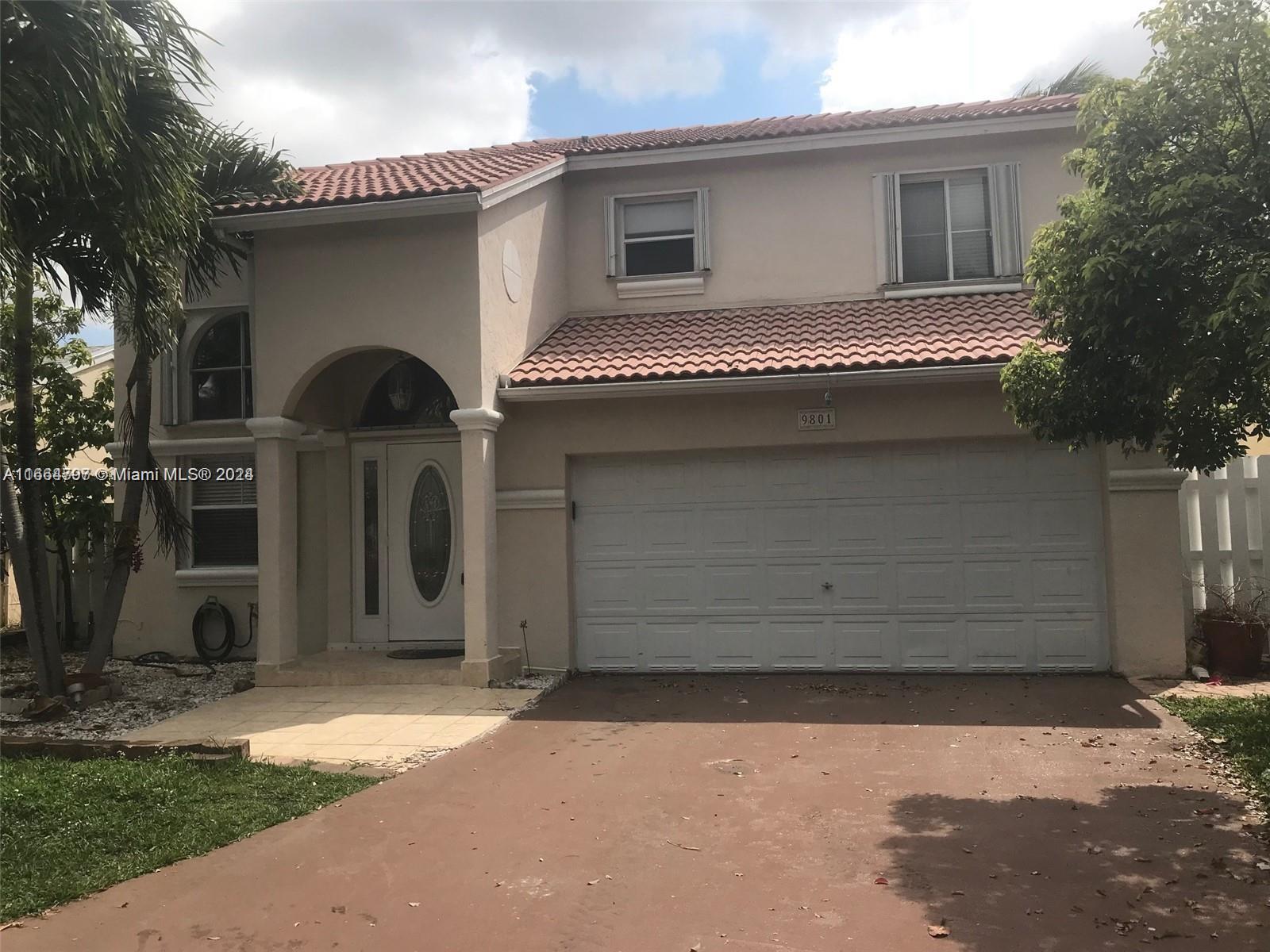 Beautiful Spacious 3-bed/2.5-bath - 2-car garage home located in a cul-de-sac at the Garden Lake community just south of Pines Blvd off Palm Avenue in Pembroke Pines. Open and updated kitchen with white cabinets and granite countertops opens to the family room with plenty of natural lighting. All bedrooms on second floor as well as the washer and dryer. Walk-in closet on master bedroom - dual sink and combination bathtub/shower on master bathroom. Storm shutters, enclosed/covered patio, ceramic tile throughout, vaulted ceilings, fenced yard are some of the features on this house. . Low HOA $155 and pet friendly community. $5000 Toward buyer's closing costs