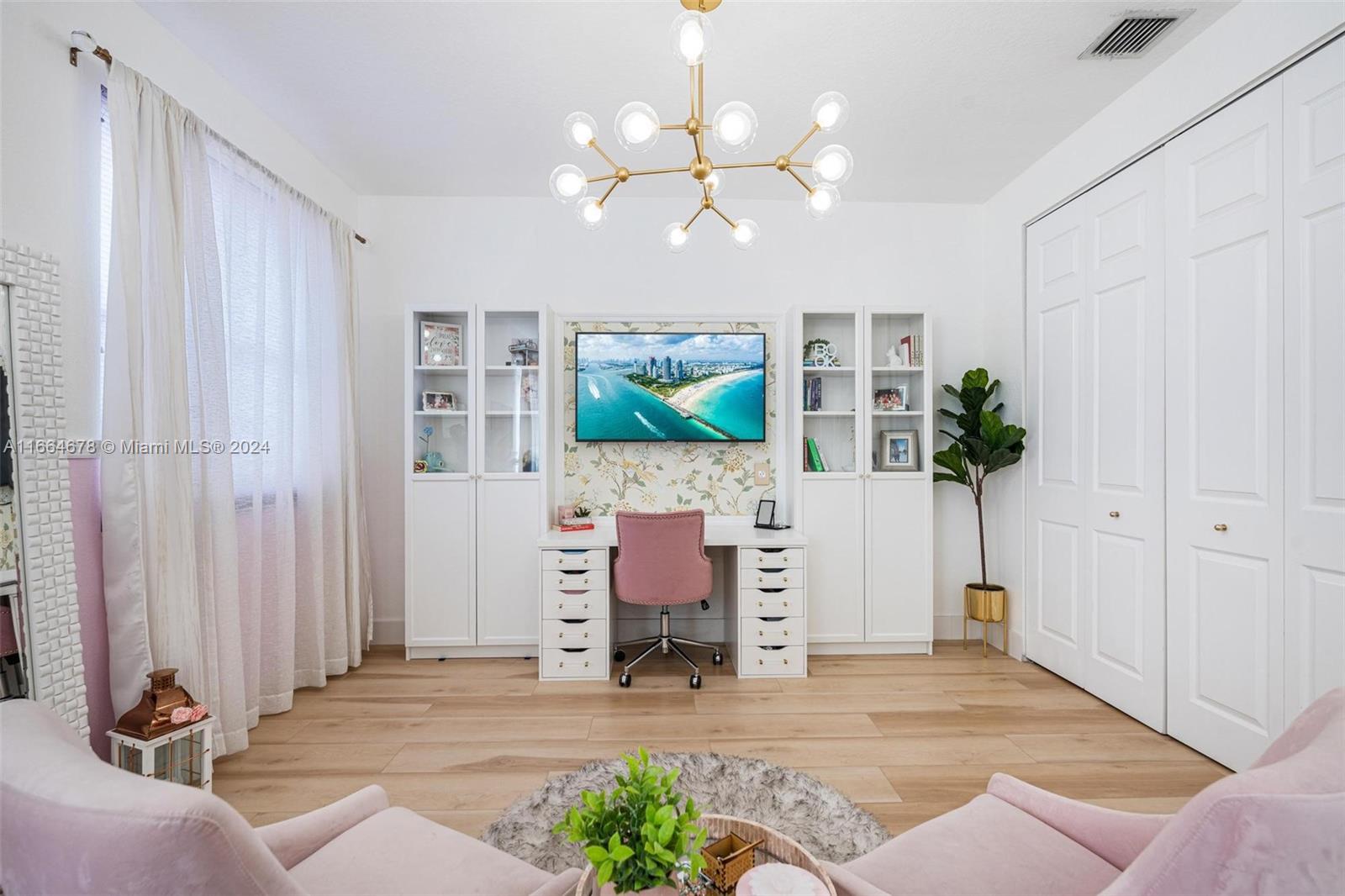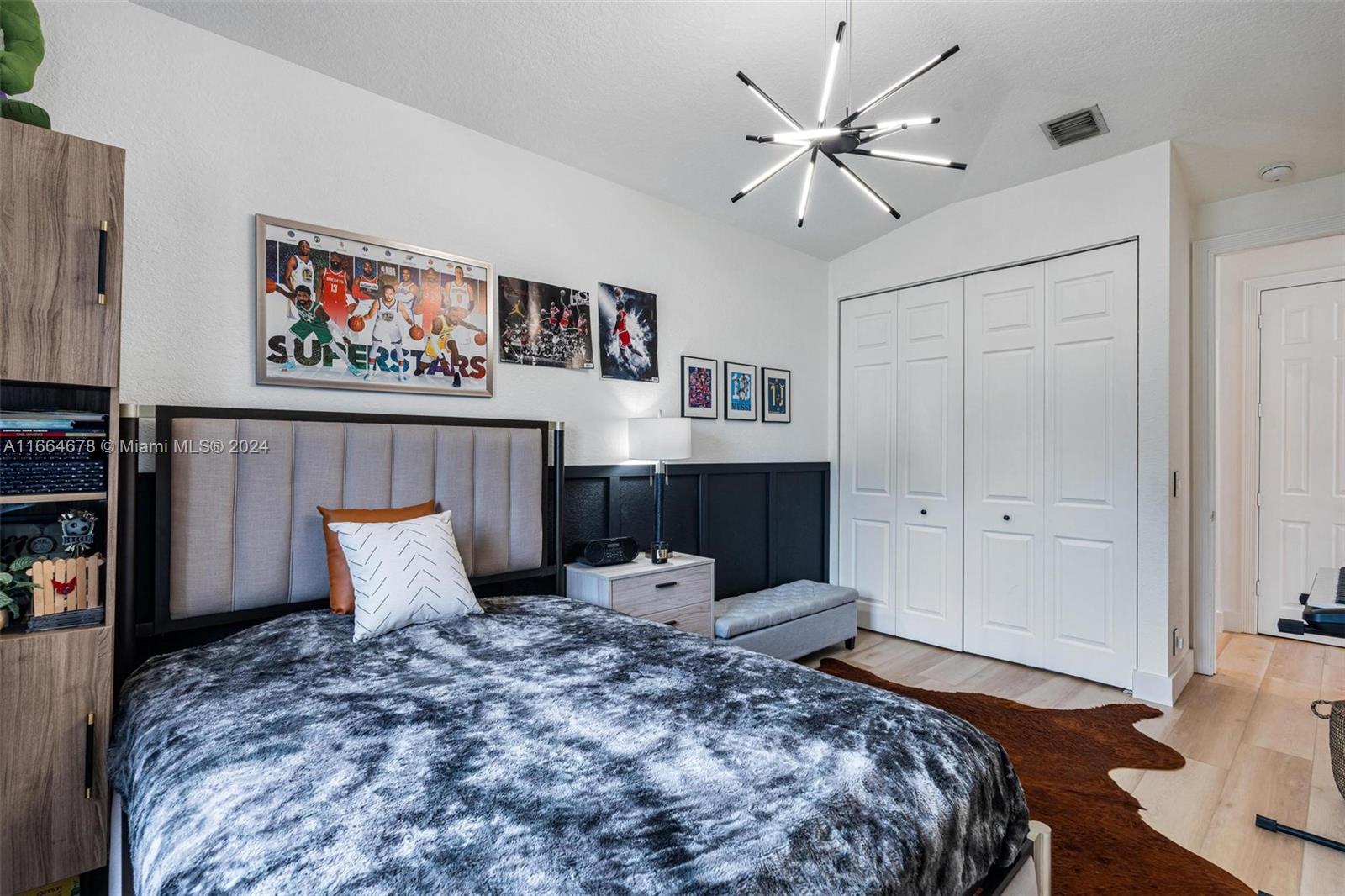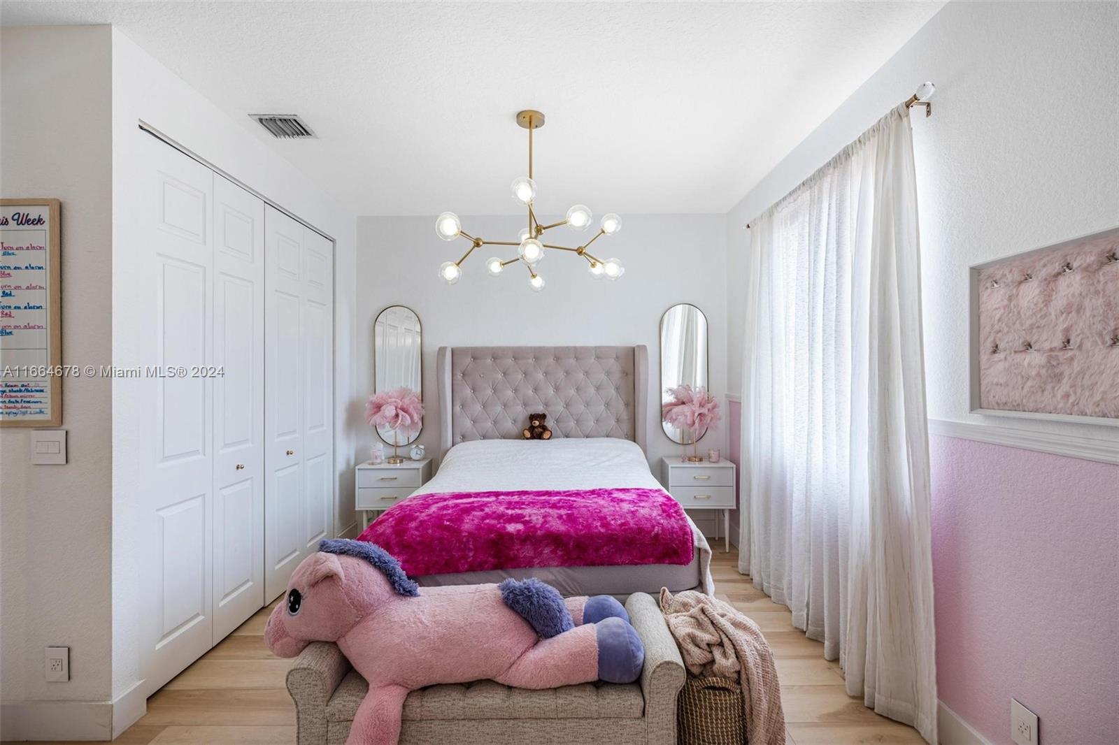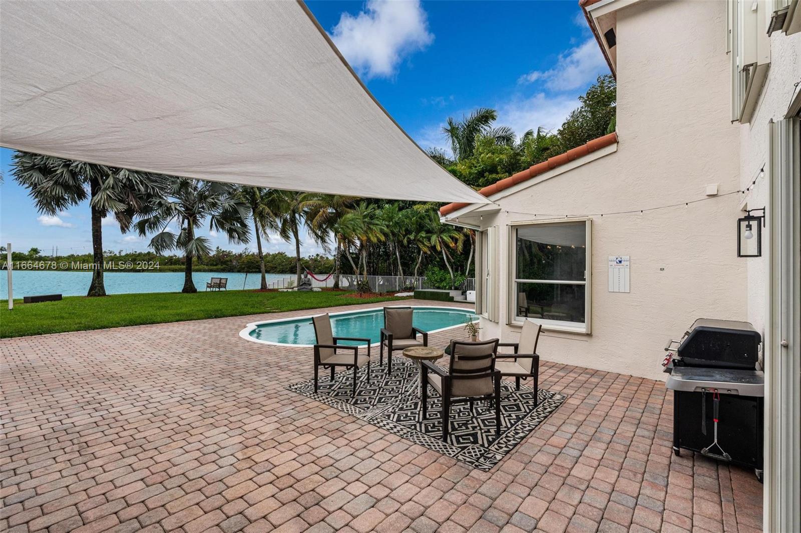 Beautifully renovated contemporary 5 bedroom, 3.5 bath home complete with a 2 car garage on a 12,000+ square foot lot in the coveted gated community of Encantada in West Pembroke Pines. Enjoy the modern look of large format porcelain tiles throughout the main living area. The kitchen is fully equipped with new Café appliances and a new induction cooktop (2024). New washer and dryer included! Single garage space is under air and converted to a 7 seat Dolby Atmos home cinema room. Freshly painted with new outlets, Lutron Smart light switches and new engineered wood flooring upstairs. Live worry free with a new roof from 2023! The outdoor space is an entertainer's dream with a beautiful pool and covered terrace. Home is on a peaceful lake with unobstructed views for the ultimate zen retreat.