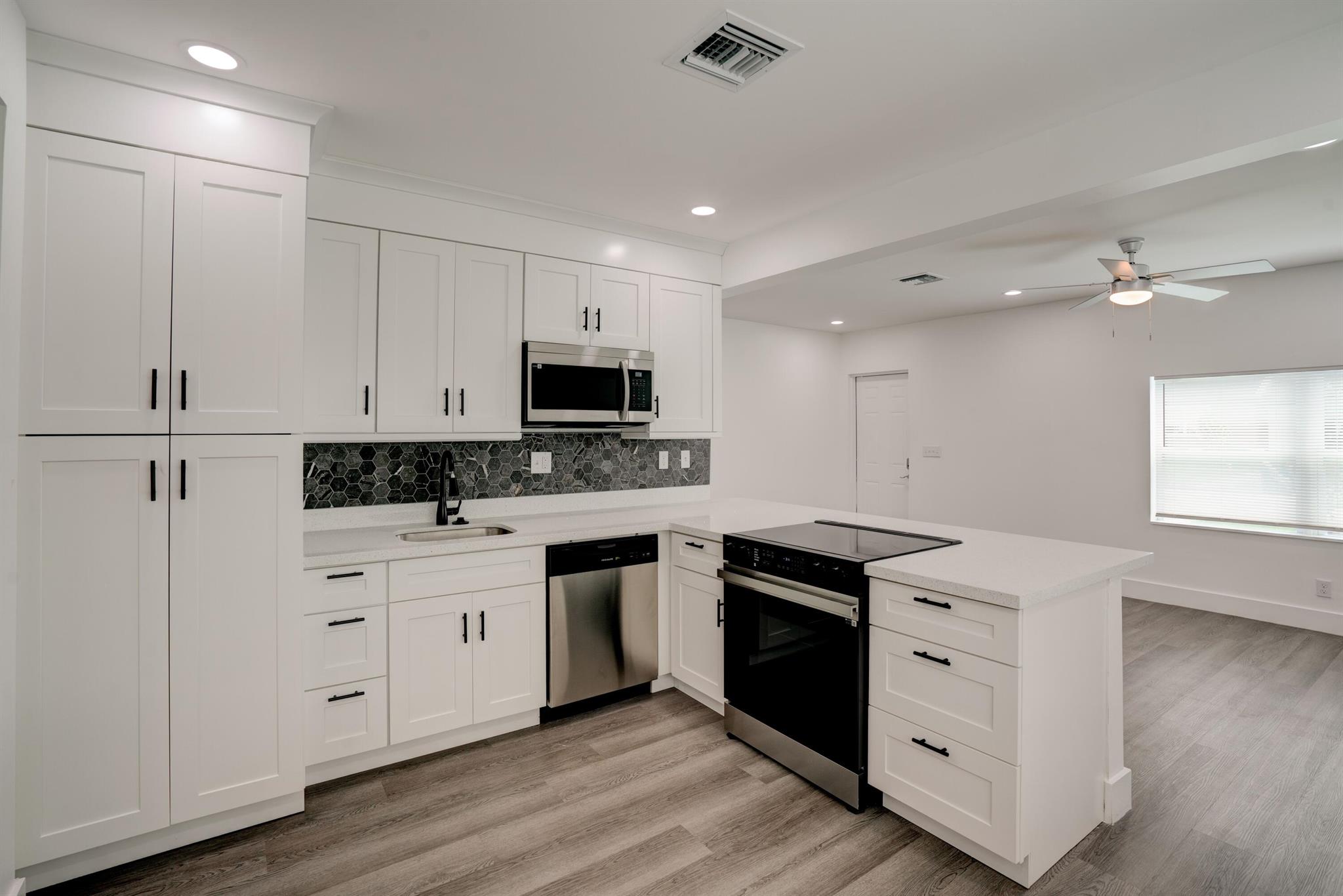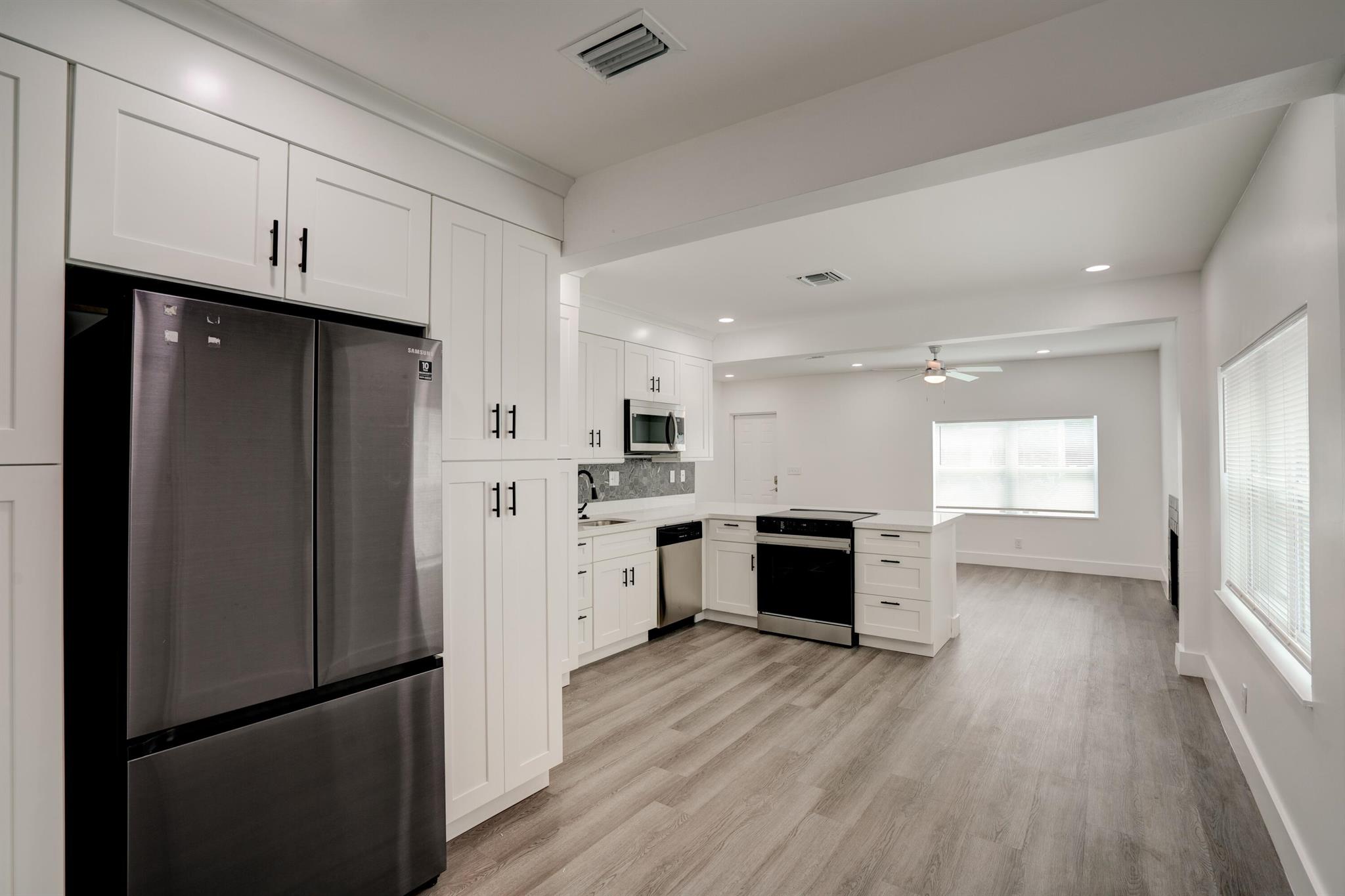 Charming single family home in West Palm Beach - with separate studio home in rear!This fully renovated property in the heart of West Palm Beach offers two beautifully updated homes on one lot! The front home is a modern 2-bedroom, 1-bathroom SFH featuring new flooring and fixtures throughout.The back home is a completely renovated studio with full bathroom, a kitchenette, a private entrance, its own meter and AC unit--ideal for generating rental income or as an in-law suite. Each home has a new roof, impact windows and doors, new plumbing and new electrical. Plus new irrigation system installed!Located just minutes from shopping, the Riviera Beach Marina, and beaches. Whether you're looking to invest or find a multi-generational living solution, this home is a must see.