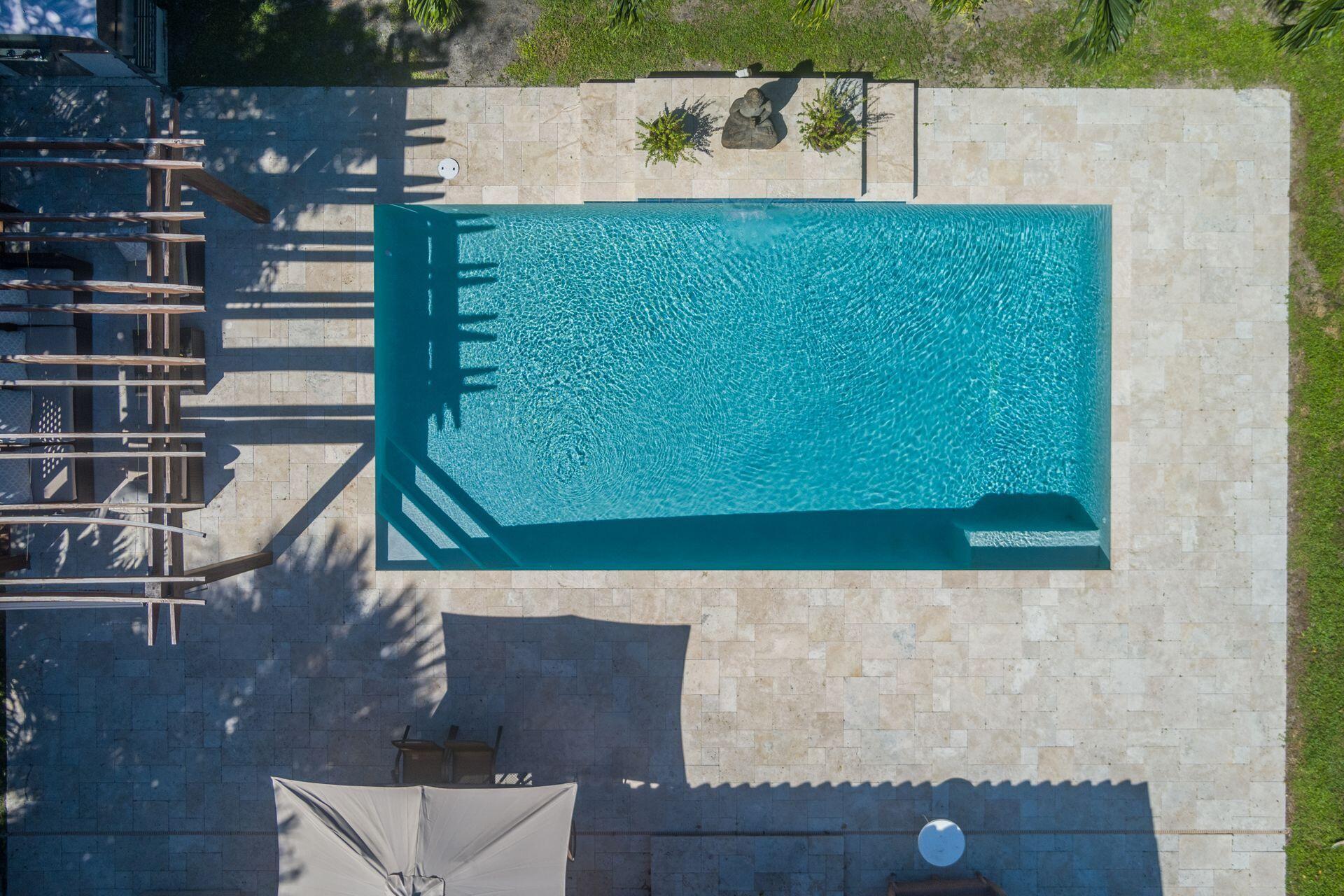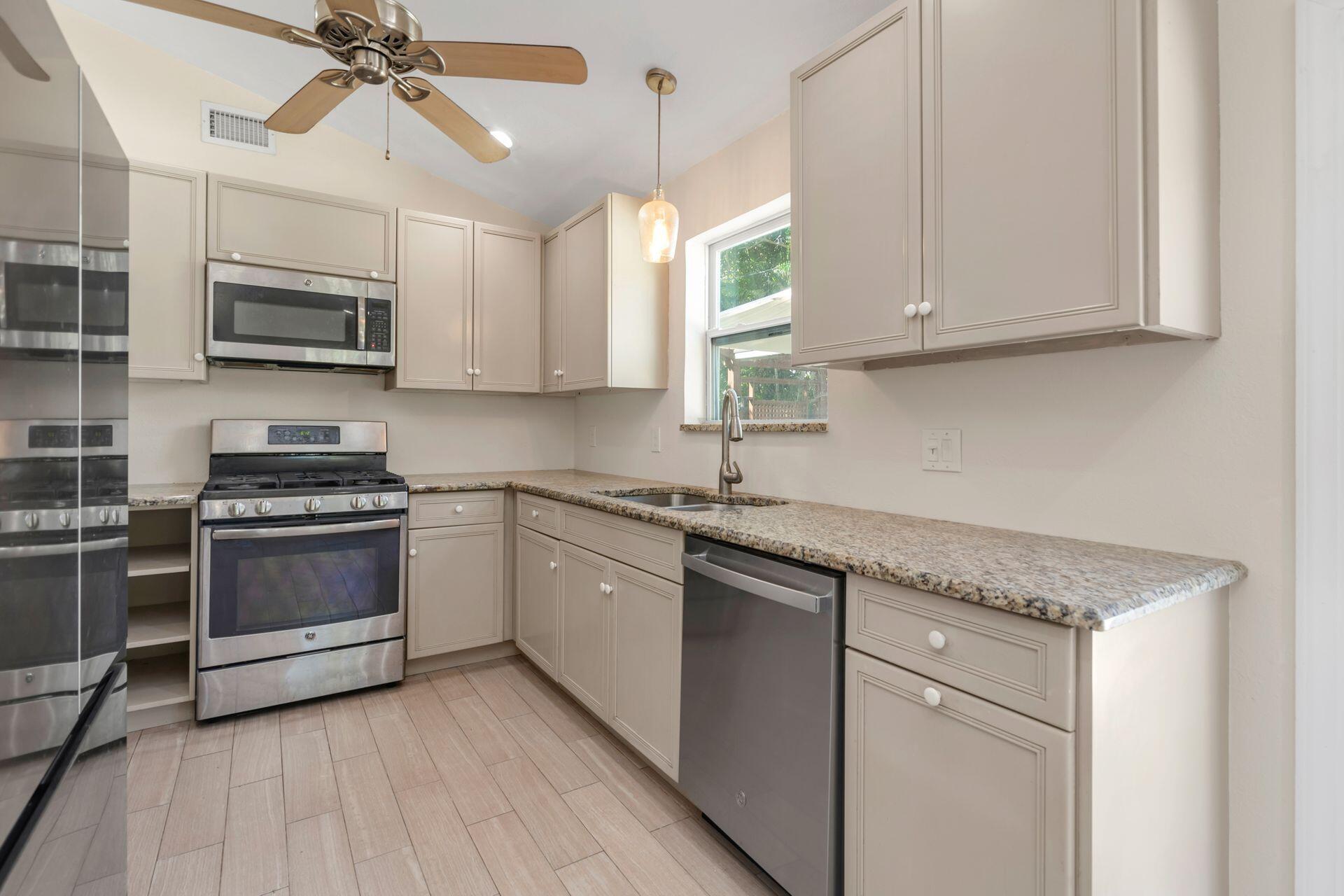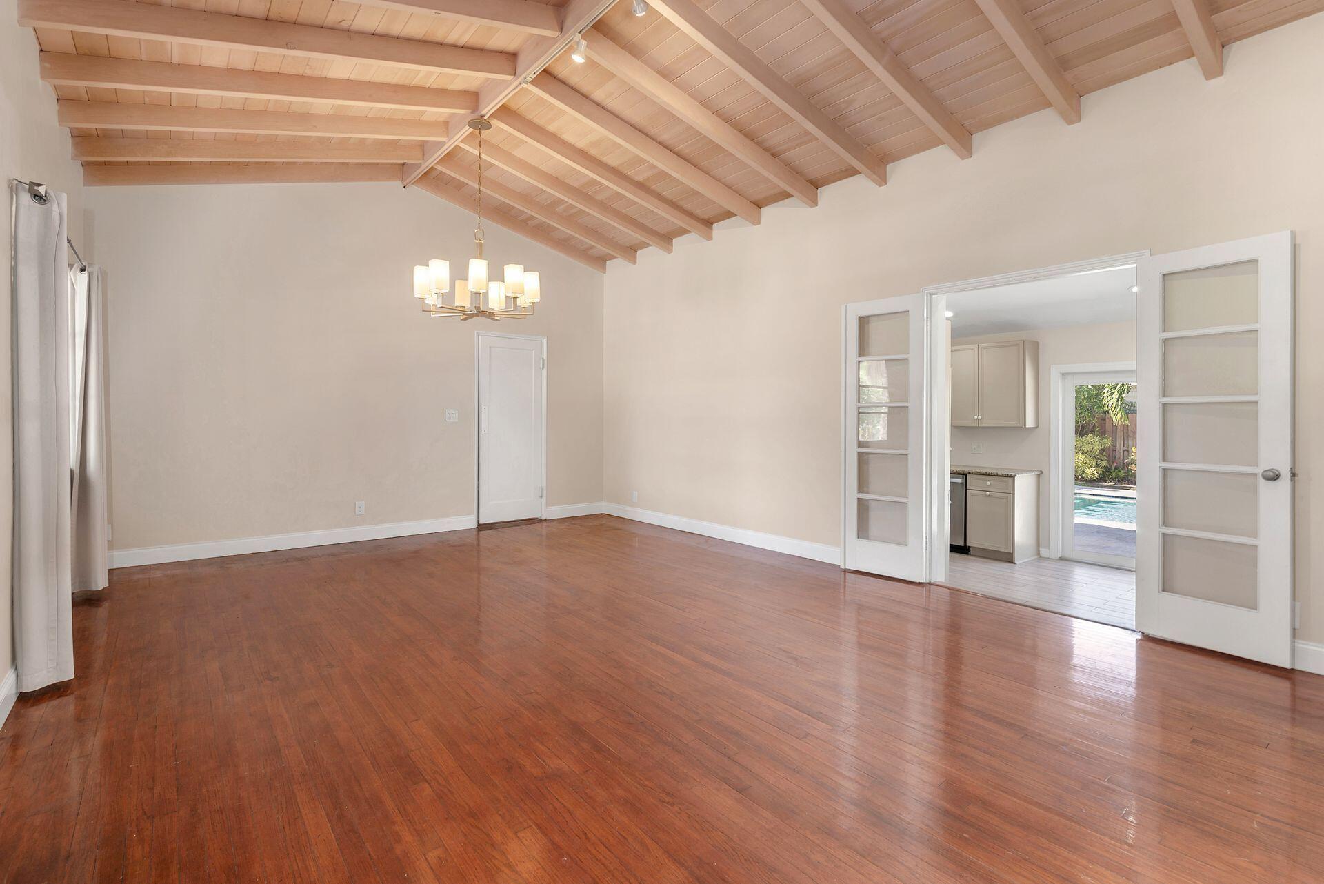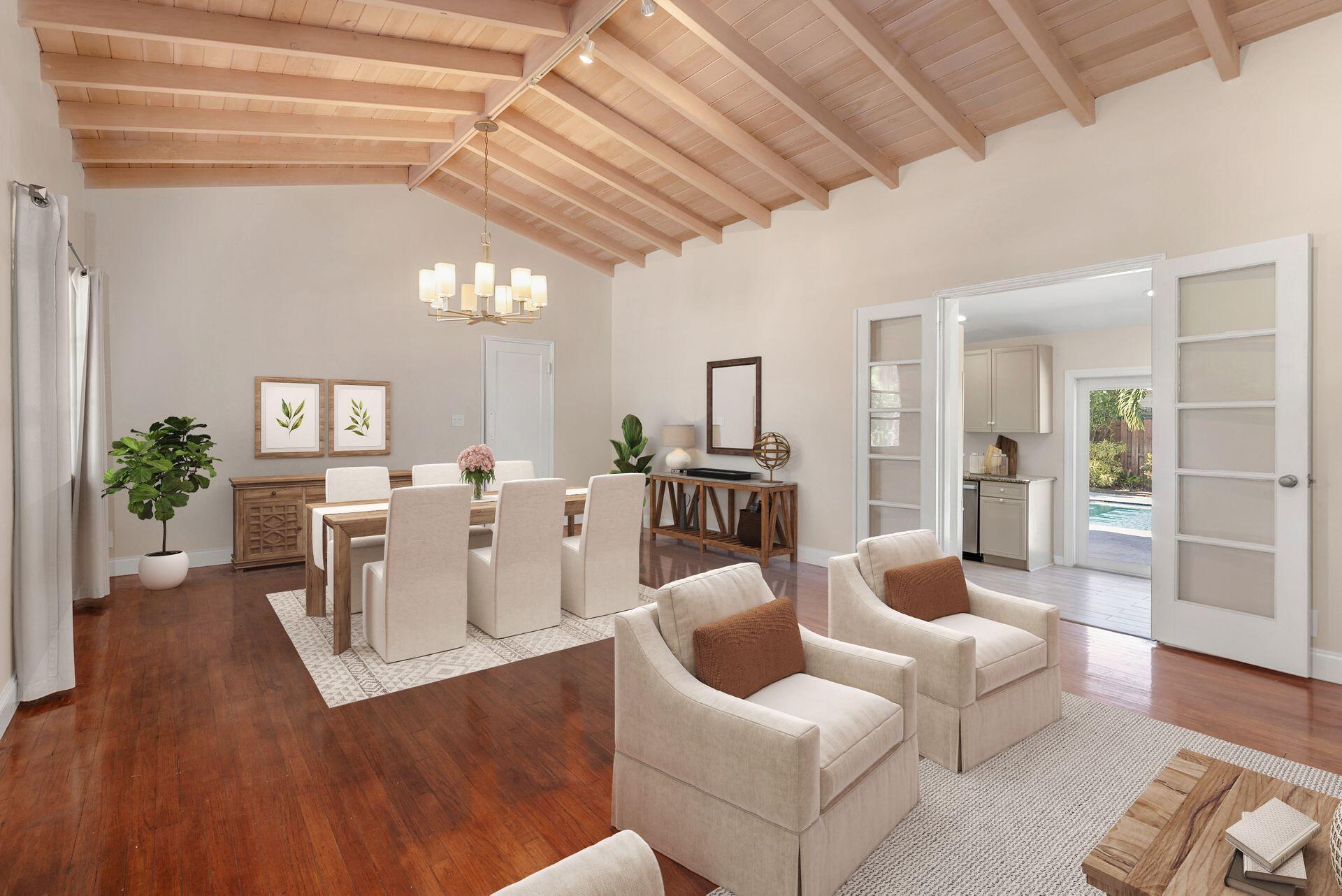 Rare find in desirable Northwood Shores! This 1947, cement block, home offers 2 bedrooms, 2 baths plus a den/nursery/hobby room. When entering the home, you will be greeted by a bright, open 28 X 15 living/dining/family area with vaulted cypress ceilings, original tongue and grove hardwood floors and brick fireplace. The bathrooms have been tastefully renovated and the spacious kitchen has been updated with wood cabinets, granite countertops, stainless steel appliances, 5-burner gas stove, tile flooring and impact french doors leading to the spacious fenced in backyard. The kitchen also has a rare, original corner brick fireplace. The current owner added an amazing 30 X 15 pool in 2018 with Travertine decking and a sturdy, attractive gazebo with an attached natural gas grill.
