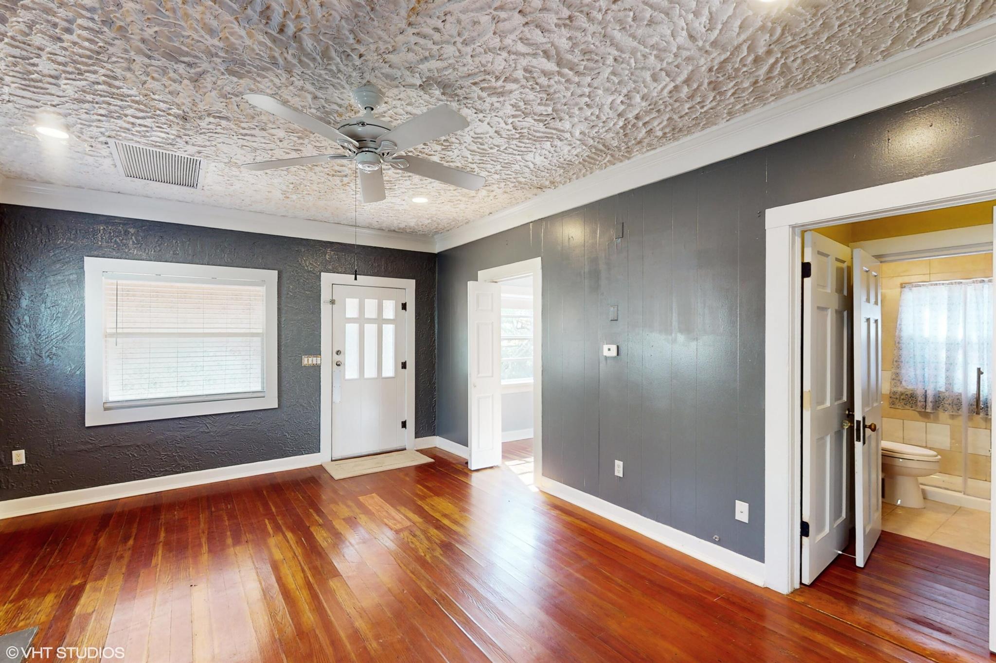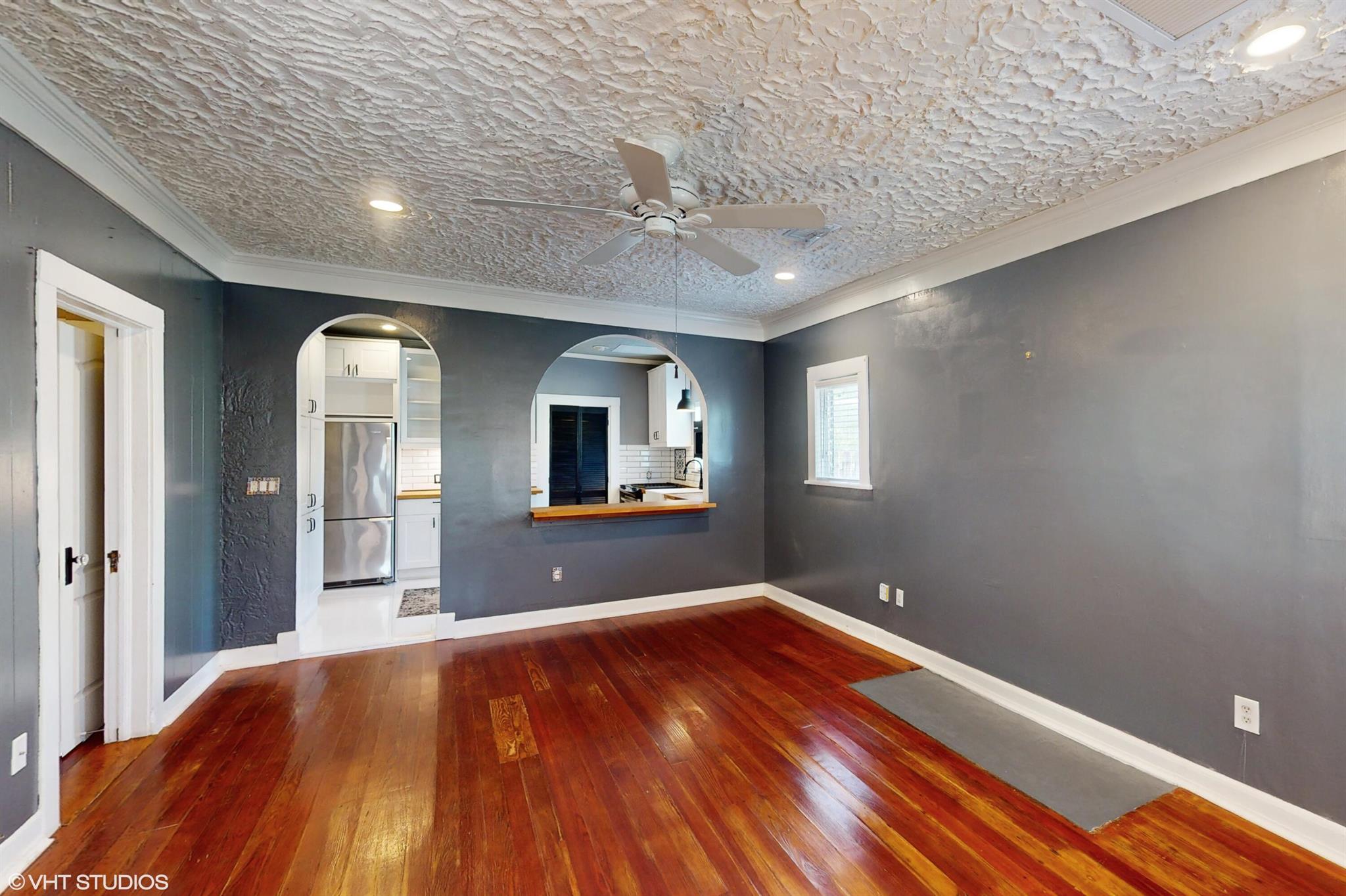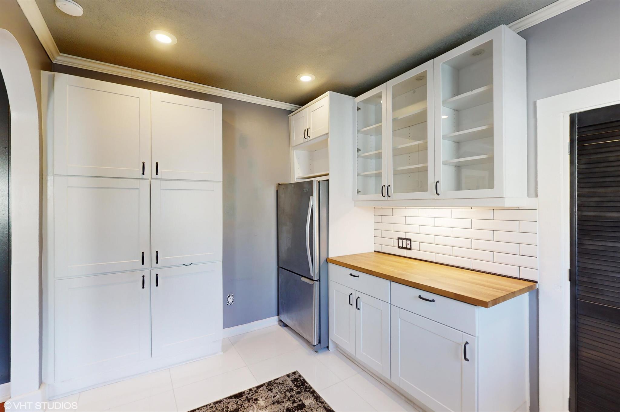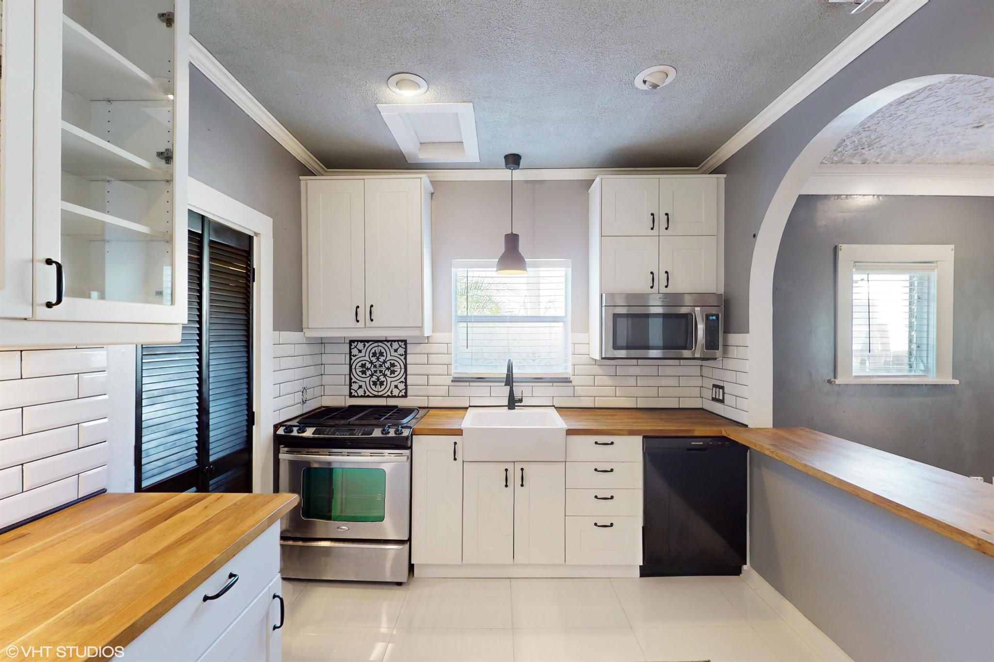 Step into this charming Spanish-style 2-bedroom, 1-bathroom home, where classic design meets modern comfort. The eye-catching exterior features a beautifully landscaped front yard, complete with vibrant greenery and a welcoming, arched front porch. The striking tiled entryway leads you into a home full of character.Inside, the spacious living room showcases rich hardwood floors, archways, and a textured ceiling with recessed lighting, adding a touch of elegance and warmth. The updated kitchen boasts stunning white shaker cabinets, butcher block countertops, stainless steel appliances, and a stylish subway tile backsplash. A sleek gas range and modern farmhouse sink complete the look, making this kitchen a true culinary haven. The Florida room offers additional space for relaxation.