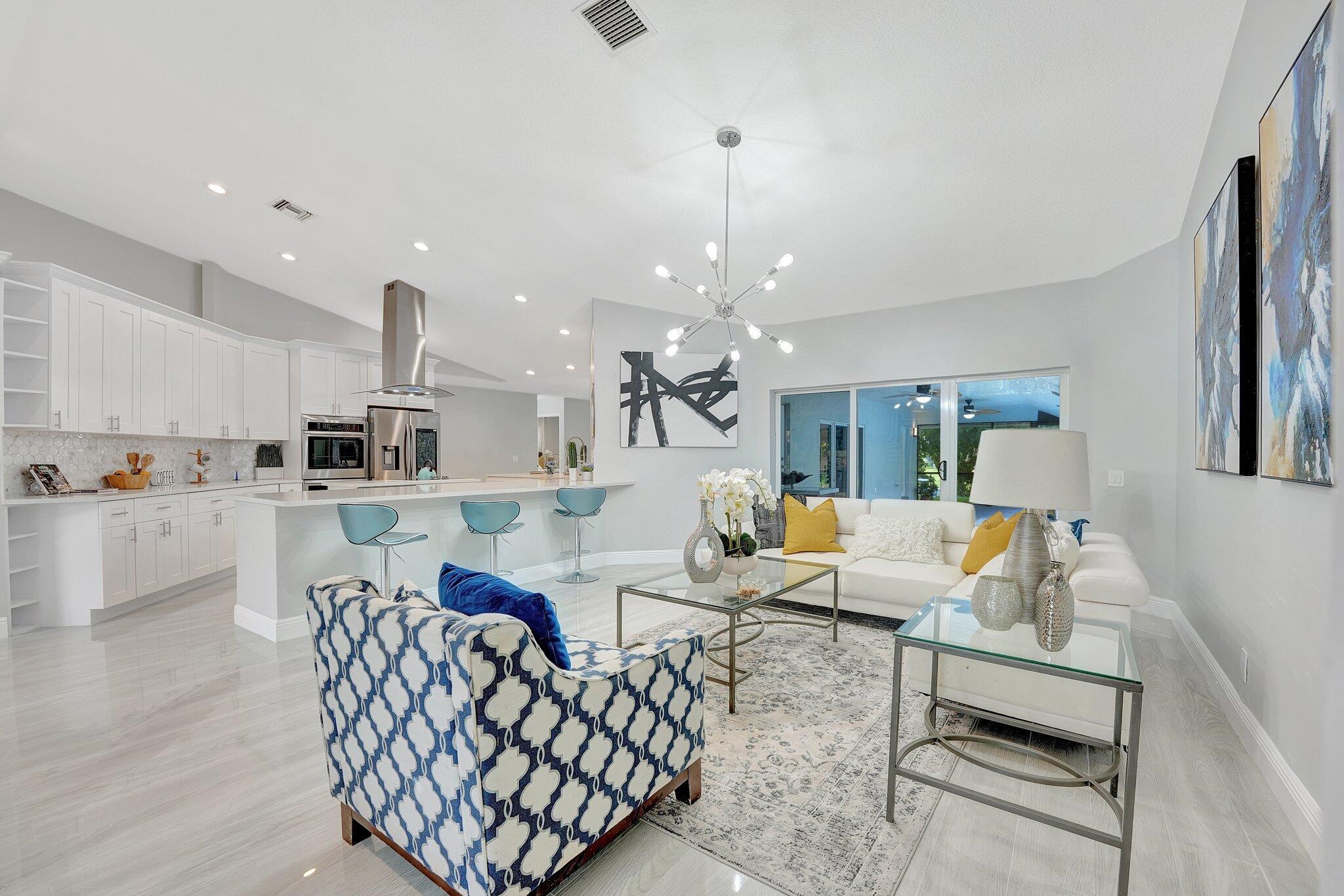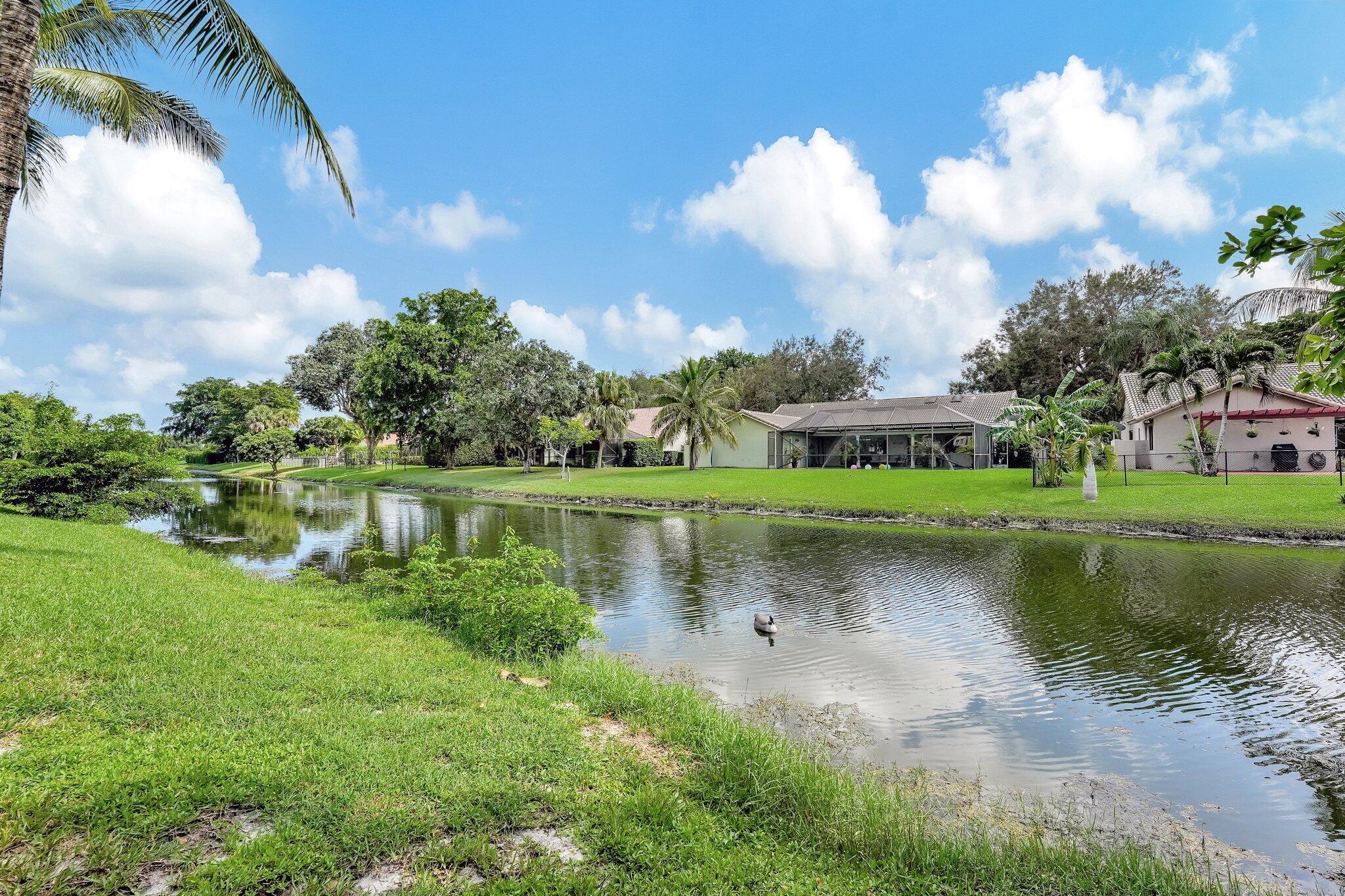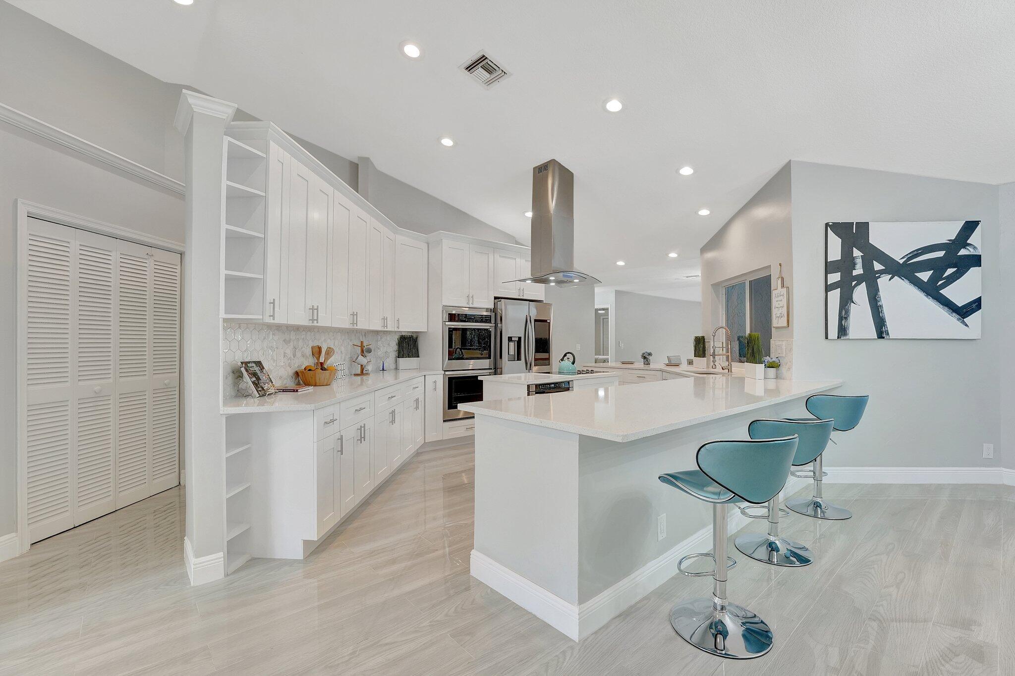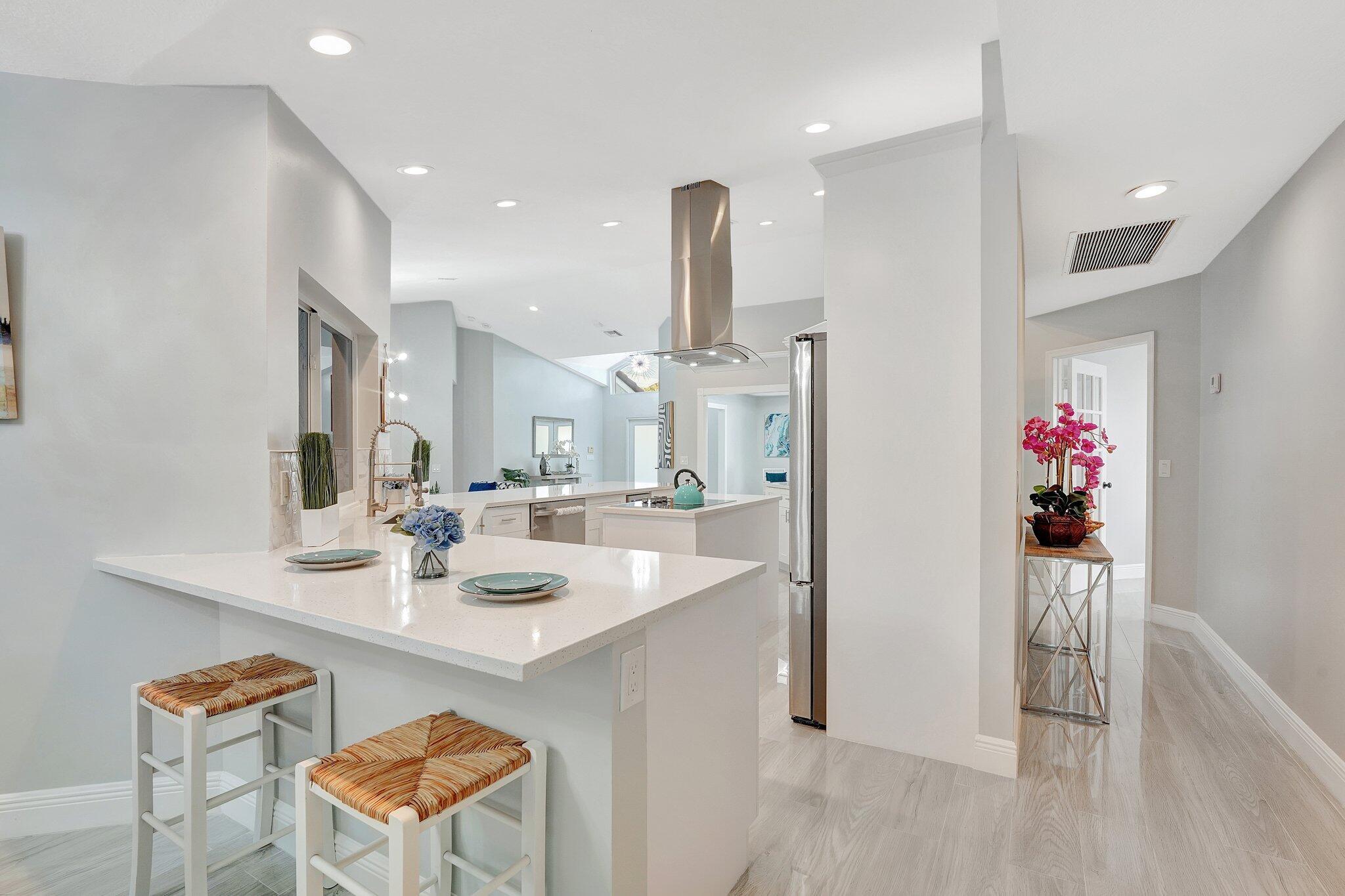 DREAM HOME: This spectacular 4 BR/3 full Bath waterfront home features a large screened-in, newly diamond brite pool and a tri-split floor plan in the sought-after 24-hour manned-gated community of Ridgeview. Included are a brand new 2024 tile roof, new 2024 AC units, and brand new impact windows and doors. Inside, enjoy all new flooring, modern bathrooms, and a new custom island kitchen with new appliances, including a Family Hub refrigerator, double-stacked ovens, and wine cooler. The high vaulted ceilings with skylights enhance the open layout. The expansive patio has an outdoor kitchenette, and the backyard boasts a custom pergola and seating. There's also a jacuzzi in the master bath, a convenient cabana bath, an extra multi-purpose room, updated landscaping, and an ADT system.