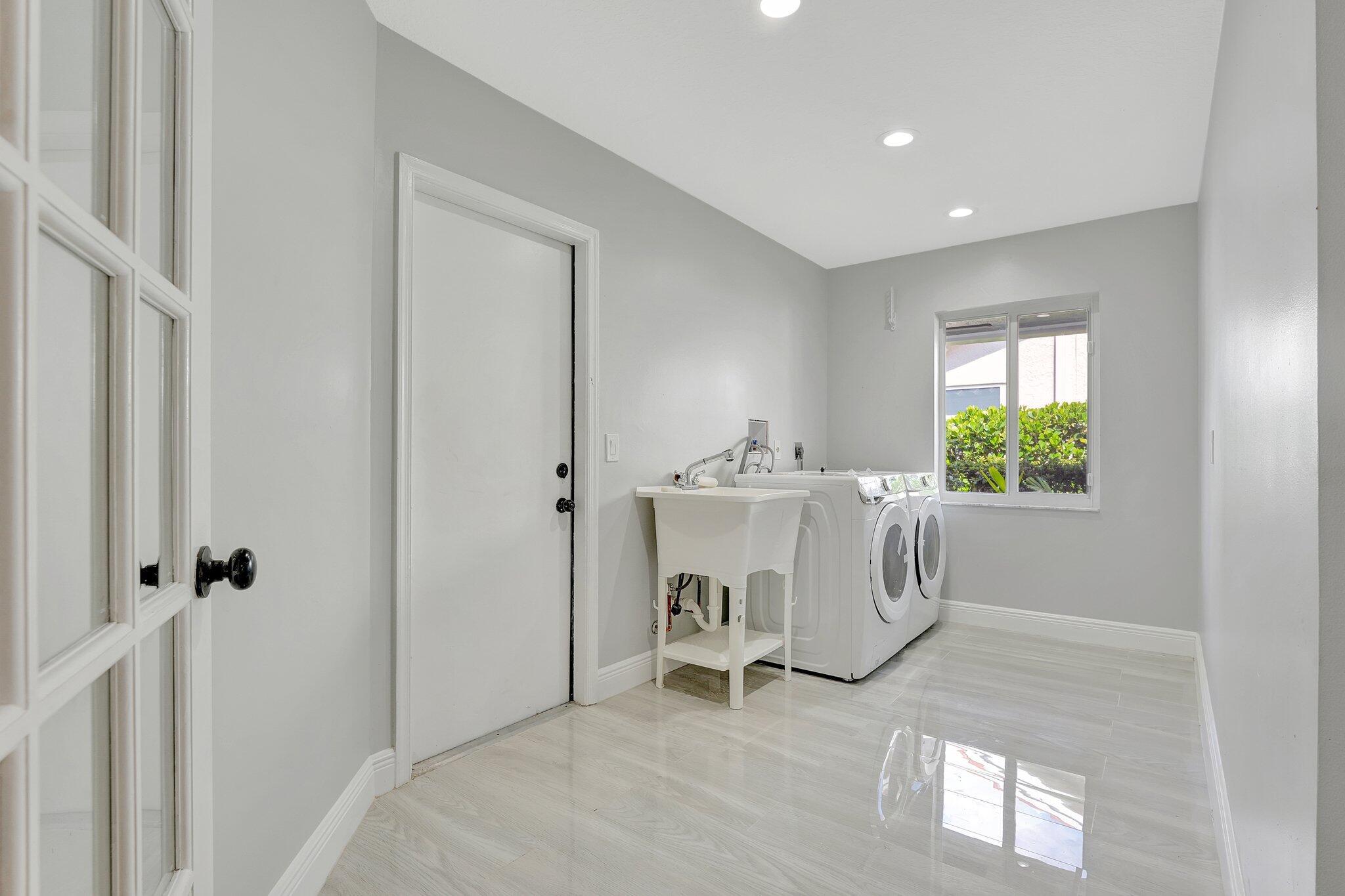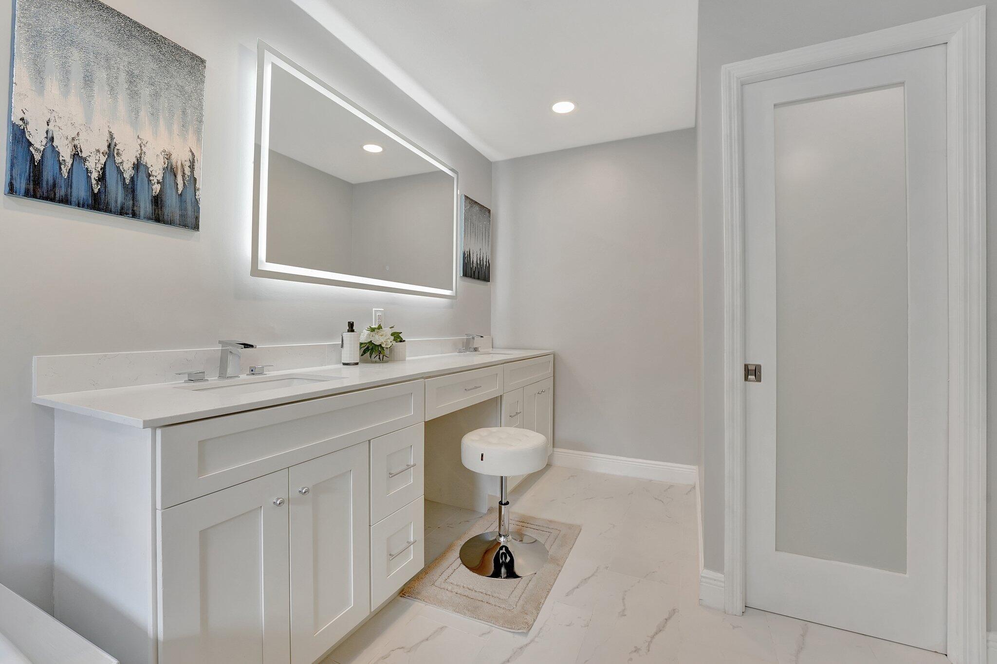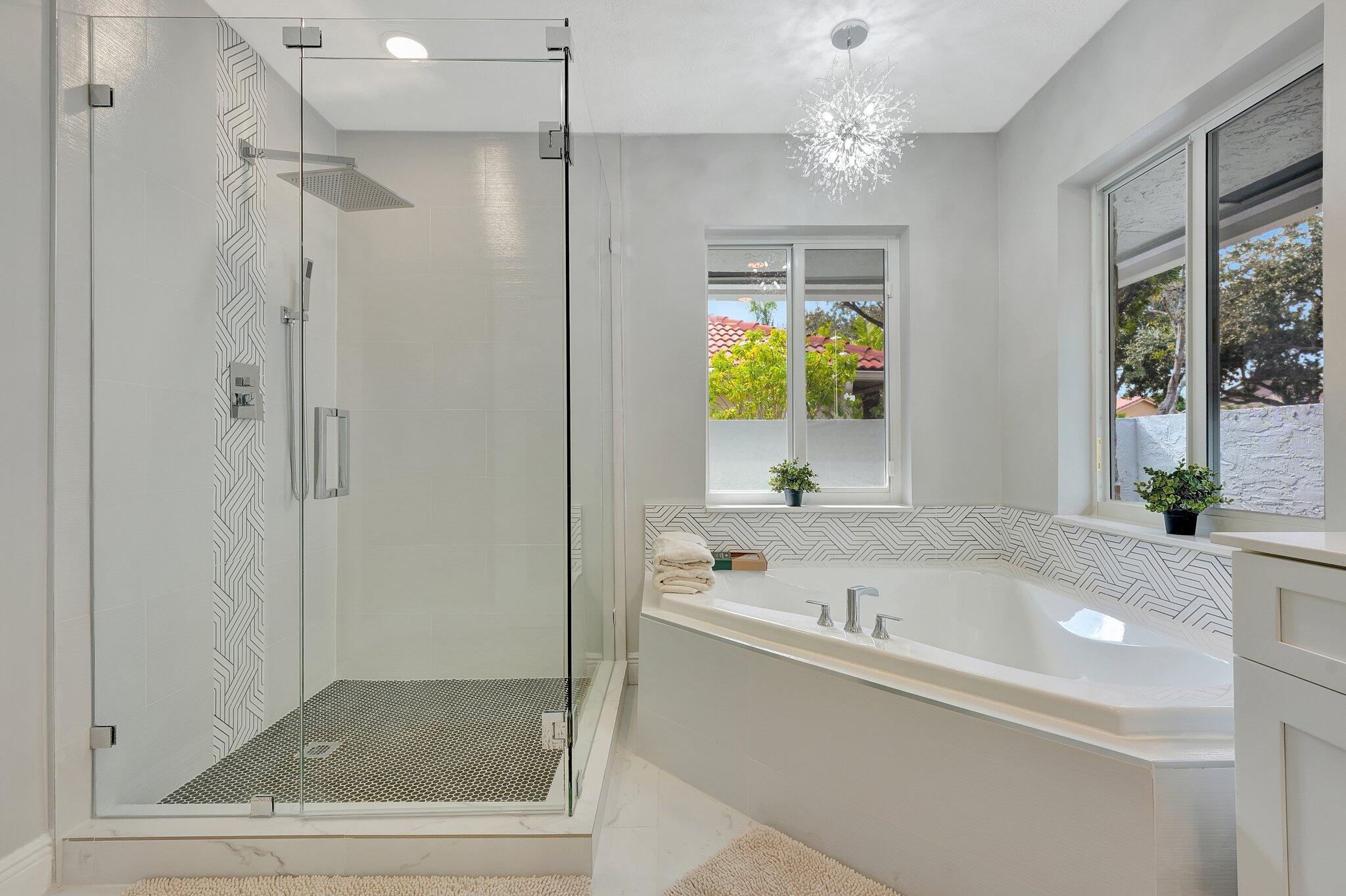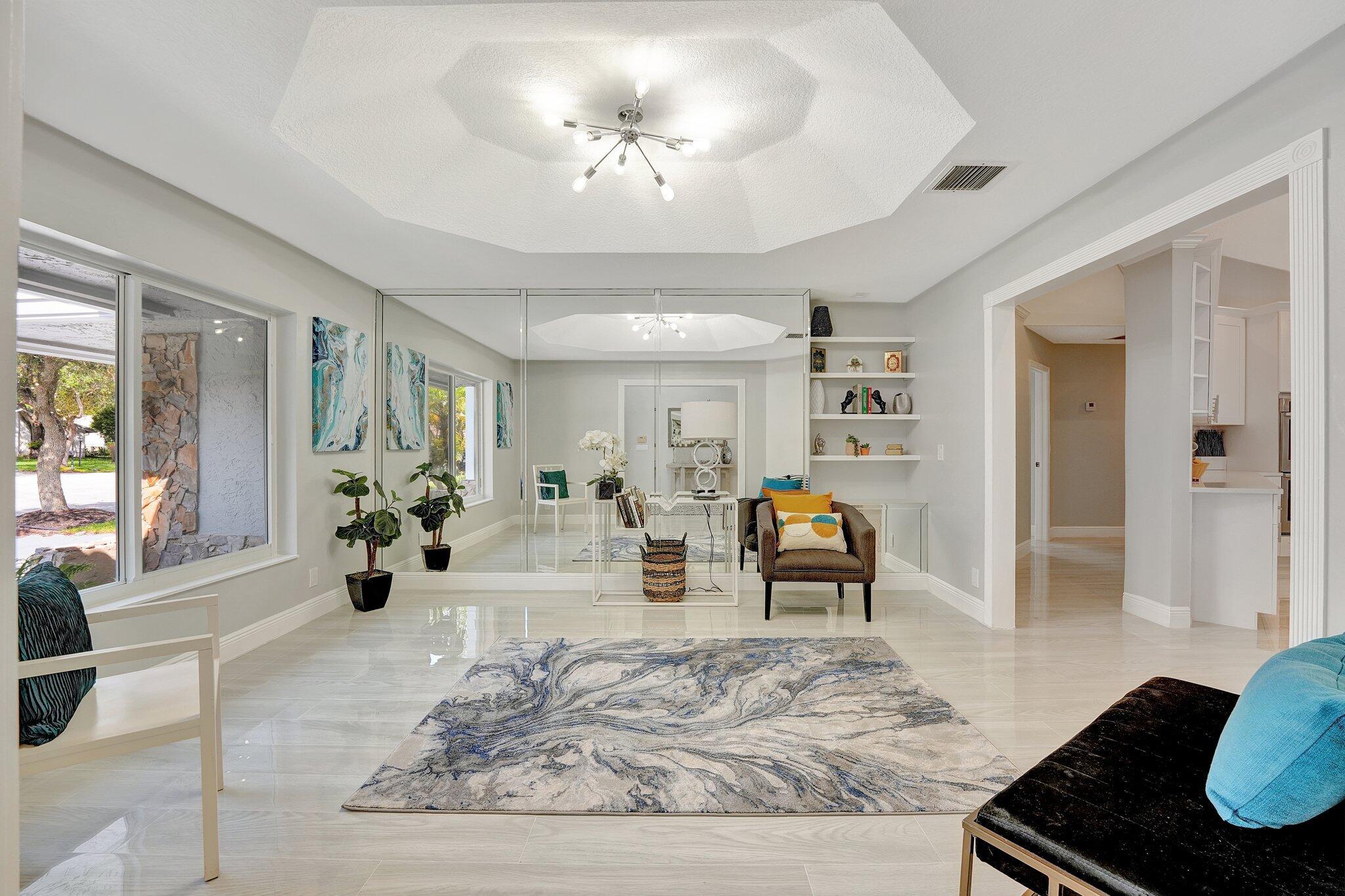 DREAM HOME: This spectacular 4 BR/3 full Bath waterfront home features a large screened-in, newly diamond brite pool and a tri-split floor plan in the sought-after 24-hour manned-gated community of Ridgeview. Included are a brand new 2024 tile roof, new 2024 AC units, and brand new impact windows and doors. Inside, enjoy all new flooring, modern bathrooms, and a new custom island kitchen with new appliances, including a Family Hub refrigerator, double-stacked ovens, and wine cooler. The high vaulted ceilings with skylights enhance the open layout. The expansive patio has an outdoor kitchenette, and the backyard boasts a custom pergola and seating. There's also a jacuzzi in the master bath, a convenient cabana bath, an extra multi-purpose room, updated landscaping, and an ADT system.