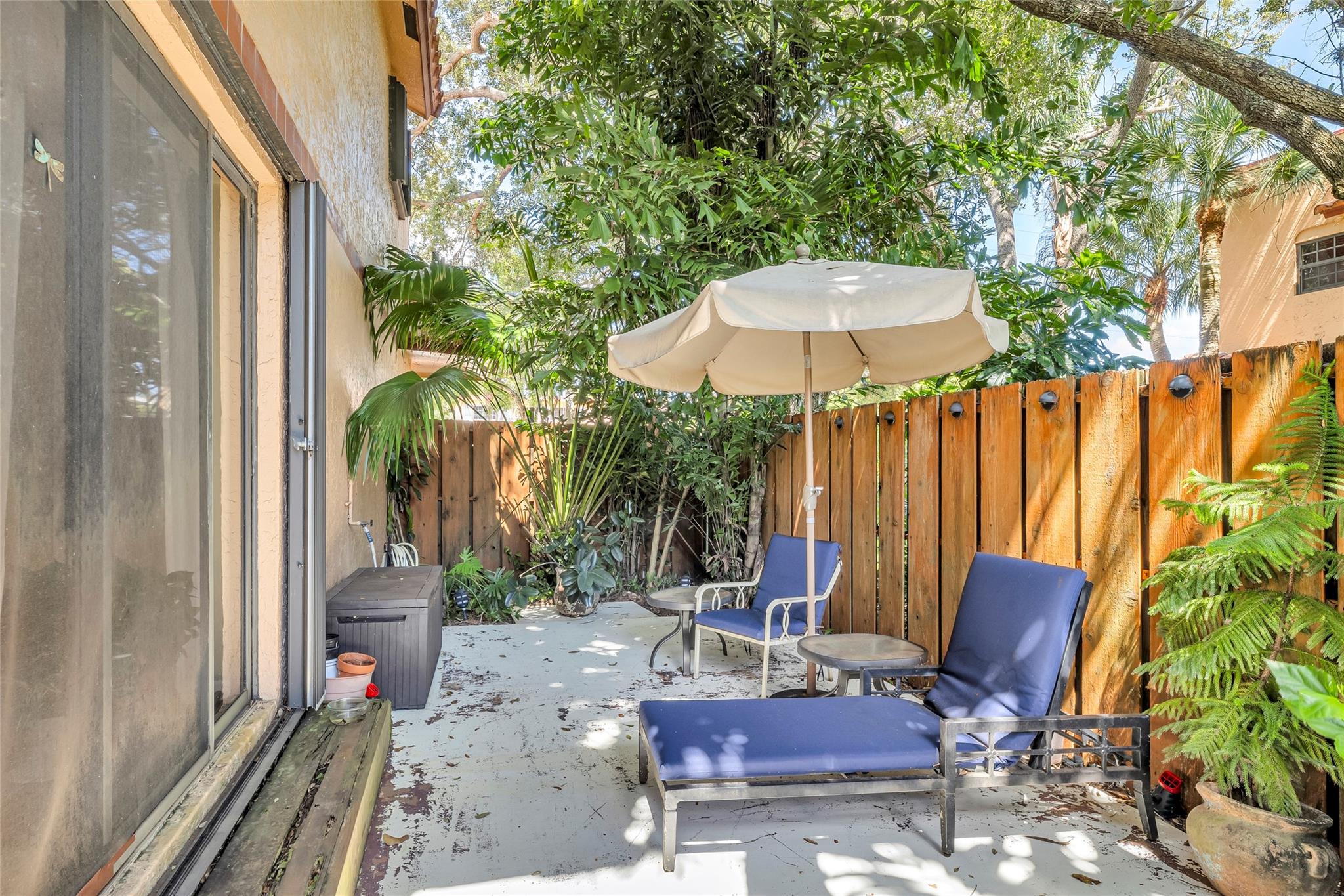 Rarely available corner unit in Spanish Springs -- 3 bedrooms and 2.5 bathrooms. This unit has a sweet patio area AND a back yard. Kitchen renovated in 2020, new AC in 2022, new roof on the building in 2024. Bedrooms upstairs, 2 have walk-in closets. Townhome protected with accordion shutters. Full size washer & dryer inside the home. Unit comes with 2 assigned parking spaces. Many dogs/support animals in the community. Spanish Springs Townhomes has mature tropical landscaping, a lovely pond setting, Clubhouse, and Pool. Monthly HOA fee is $609 includes reserves. Easy to get to Wilton Manors just up NE 4 Ave/Wilton Drive, and only 20 minutes drive to Fort Lauderdale airport.
