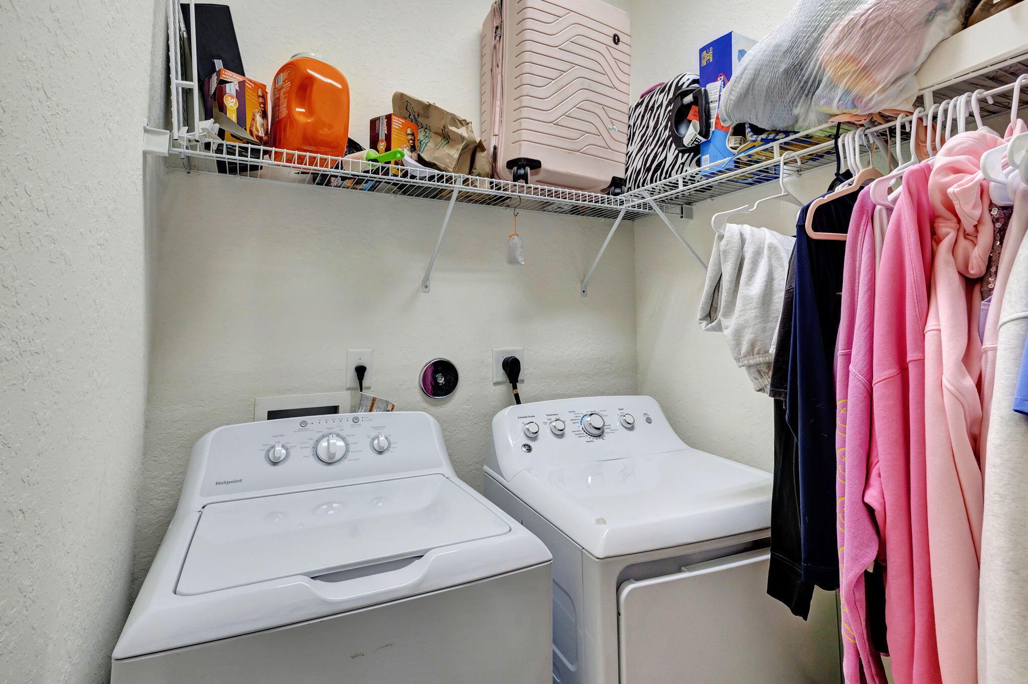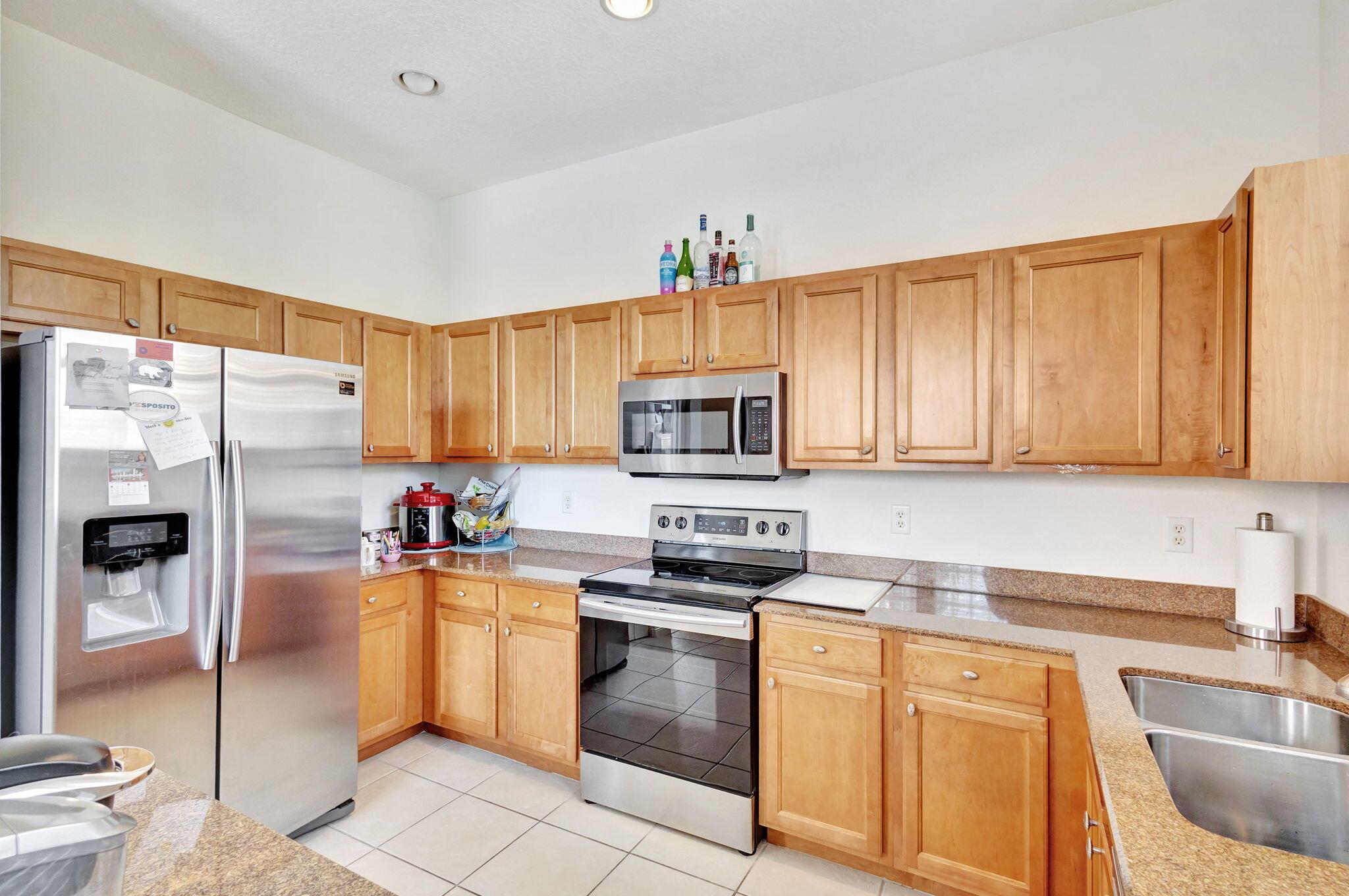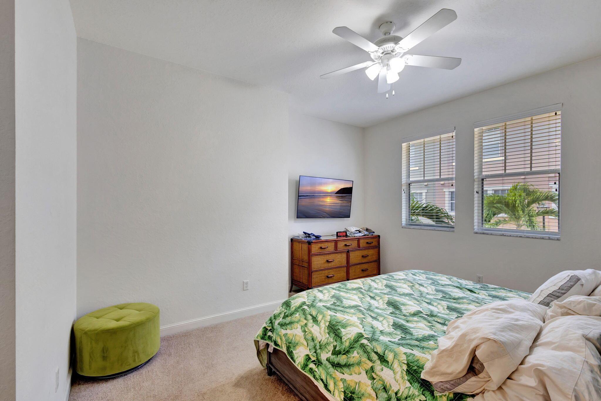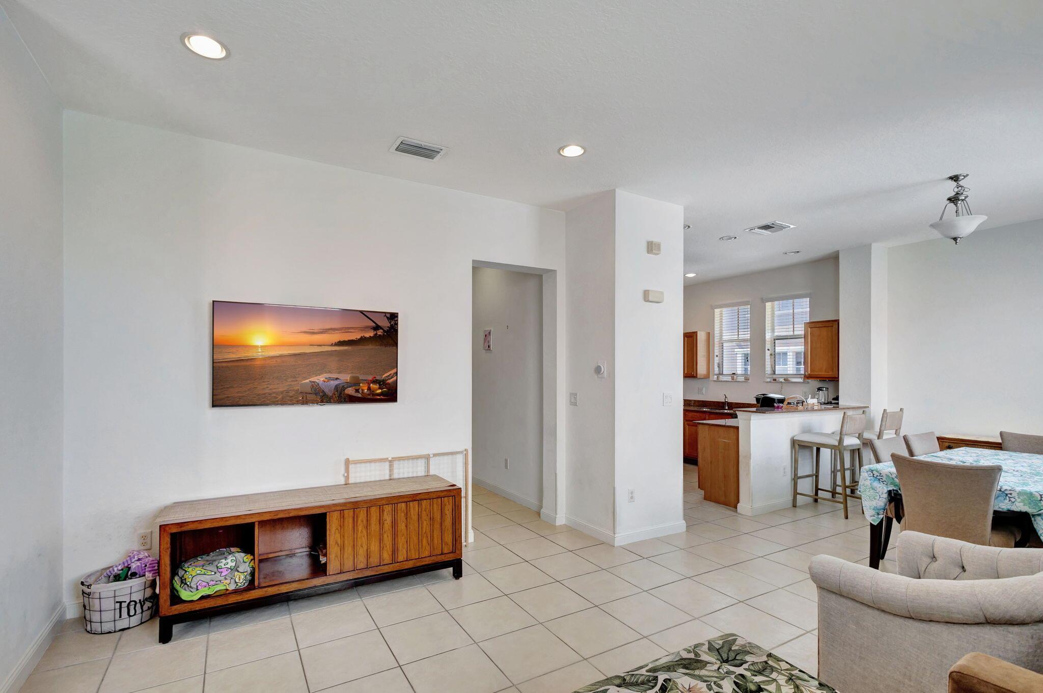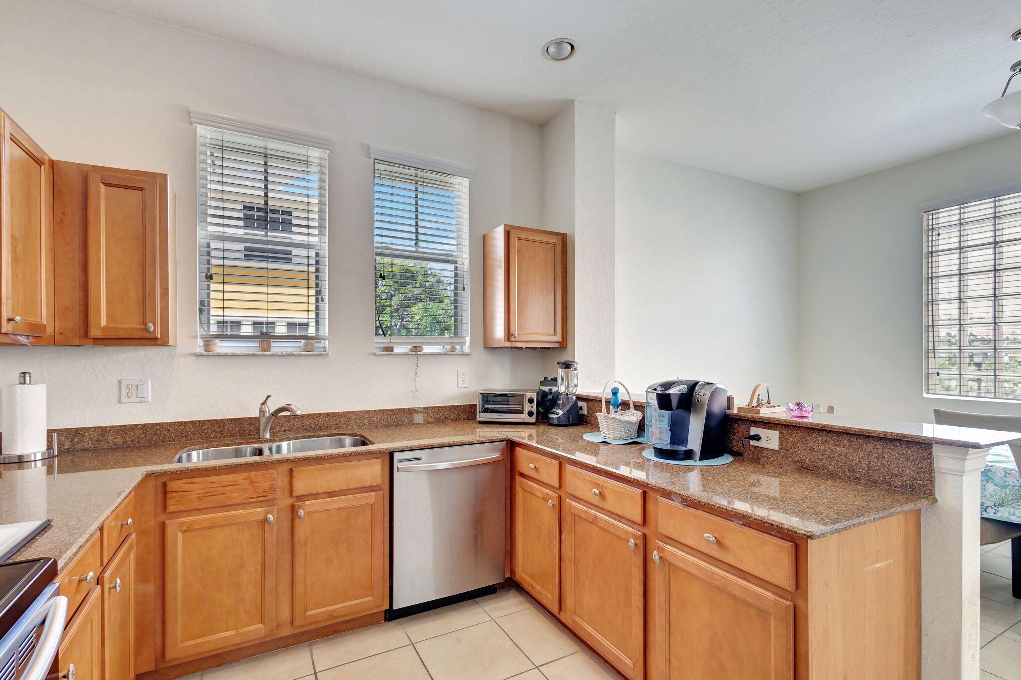 2 bedroom corner unit near the heart of it all, with attached oversize 2 car garage! New AC unit installed in 2022. This townhome with soaring ceilings is awash in plenty of natural light throughout the day. Kitchen features granite counters, pull-down faucet & stainless appliances. Primary bath with walk-in closet and dual vanity sinks. Full size washer/dryer in designated laundry room. 5 minutes from downtown West Palm, I-95, and PBI airport. Walk across the street to the new Palm Beach Outlet Shops, Whole Foods, Target, and multiple restaurants. Community amenities include 24hr manned gate w/ nightly roving patrol, HUGE lakeside pool, recently renovated gym and lakeside jogging track. Water, trash removal, master insurance, cable & internet service included w/ HOA