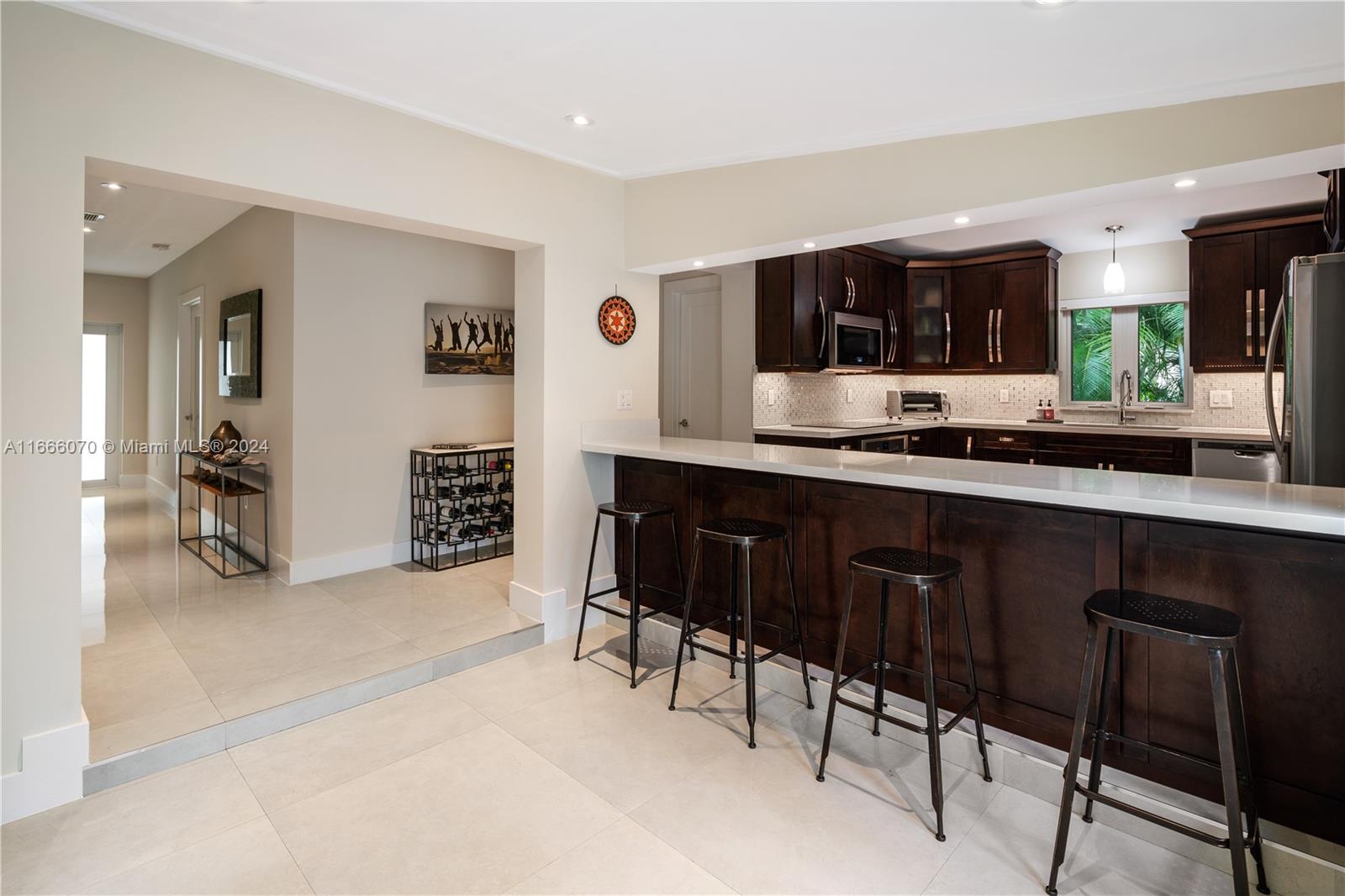 Live among the butterflies, in this beautifully and thoughtfully updated home on Mariposa Avenue in coveted South Coral Gables. Attentive design allows for formal spaces and a separate family room off the new kitchen. Clean lines and seamless modern flooring connect the 3 bedrooms and 2.5 remodeled bathrooms in a comfortable floor plan. Substantial laundry room makes house organization and clean up a breeze. A full 2 car garage with its own gated entrance provides ample storage. The house oozes tranquility and peace of mind with impact doors and windows throughout, as well as a 4 year old roof, and all new PVC pipes. Enjoy the outdoors year-round on the brick paver patio in the spacious and private yard. A Very Special Home.