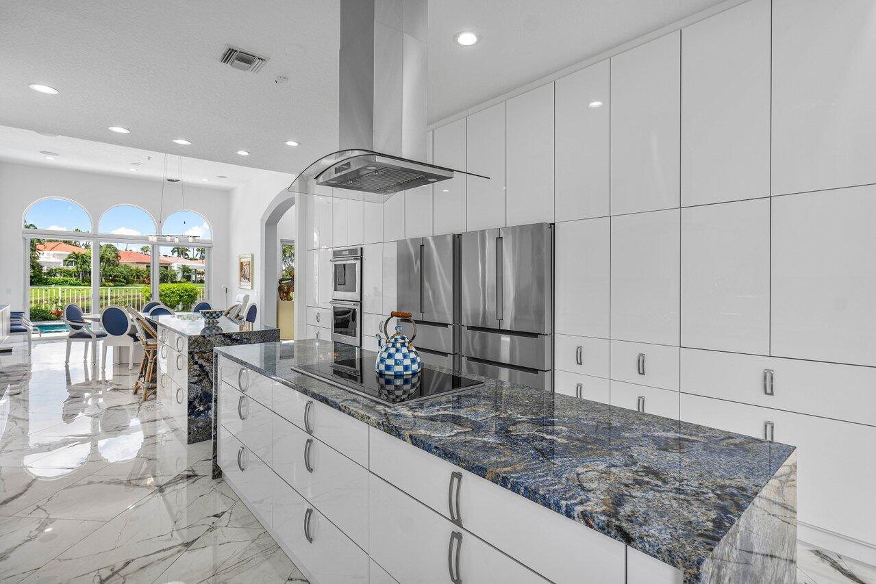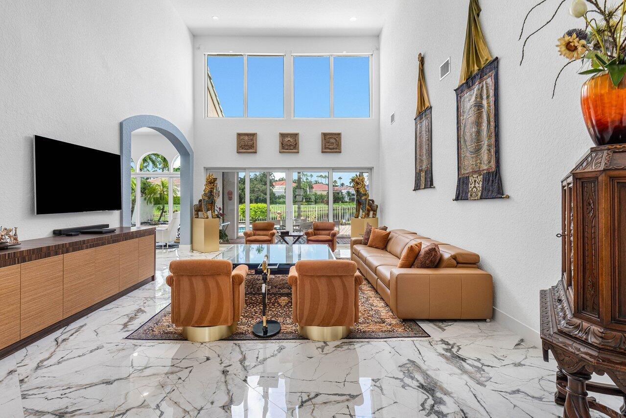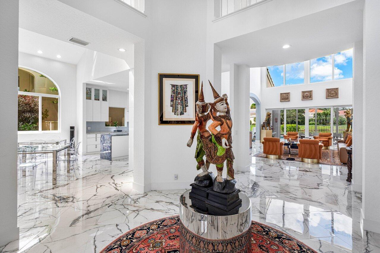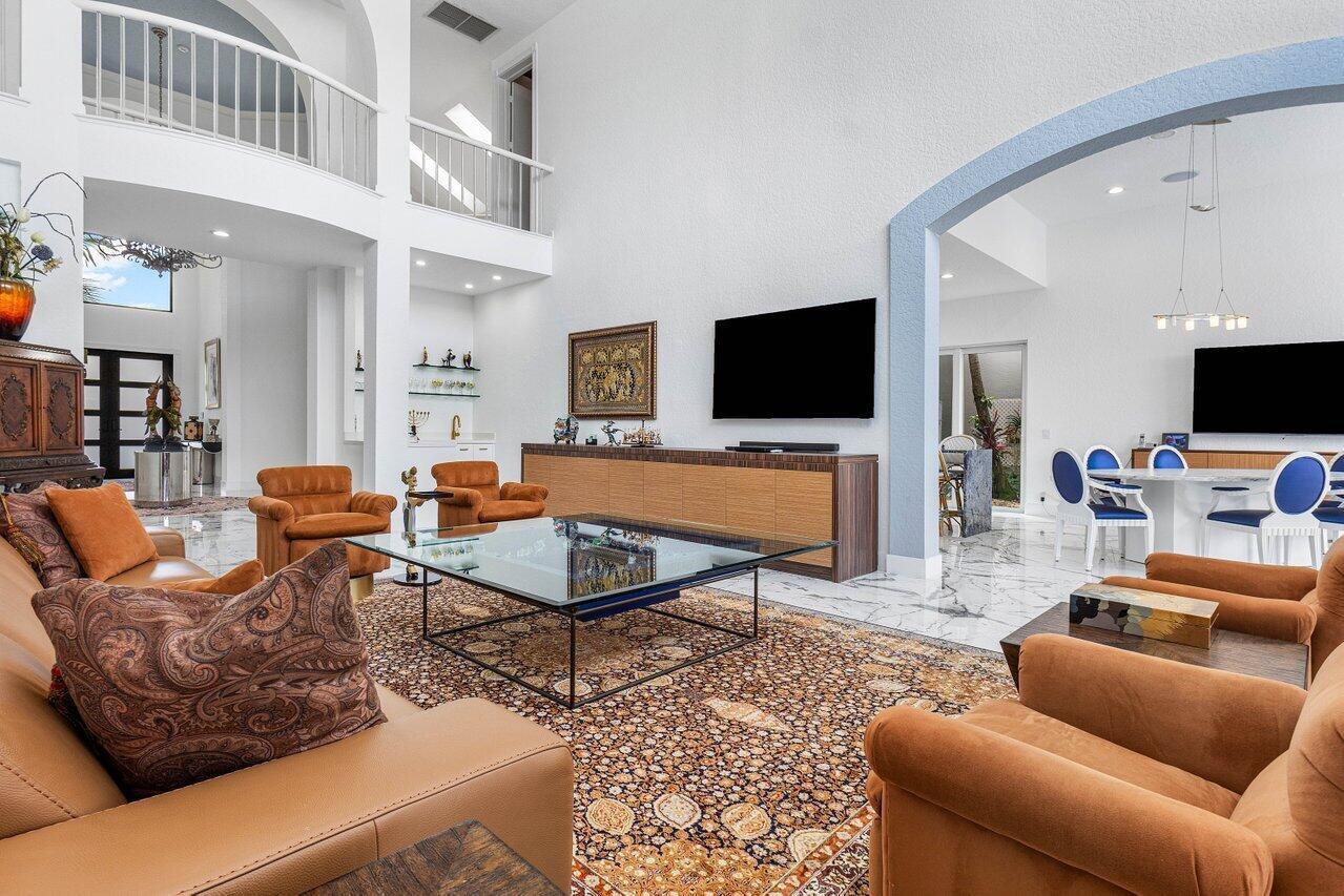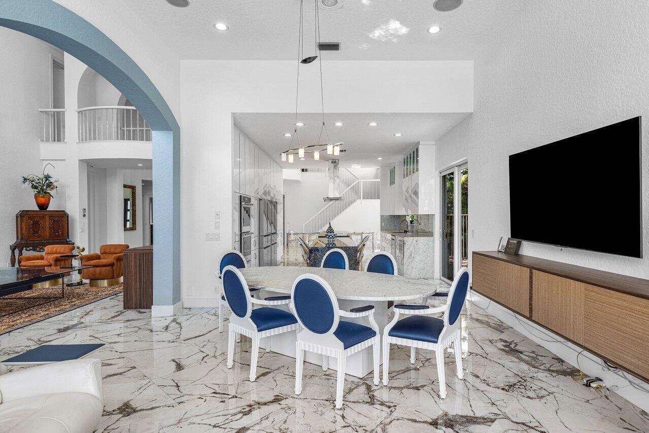 Upon entering this stunning home in The Polo Club, where golf memberships are available for the two 18-hole courses, you are welcomed by soaring two-story ceiling heights that fill the space with an abundance of natural light. The grand foyer leads to an expansive great room featuring a wet bar, perfect for entertaining guests. The great room opens to a screened-in patio area that overlooks a private pool, with a pristine meandering lake enhancing the ambiance. The remodeled chef's kitchen is truly breathtaking, showcasing dual islands, immense storage, dual refrigerators, and an induction stovetop, making it a dream for any culinary enthusiast. Adjacent to the kitchen, the dining area is ideally situated for convenience and easy access, making gatherings seamless and enjoyable. The -