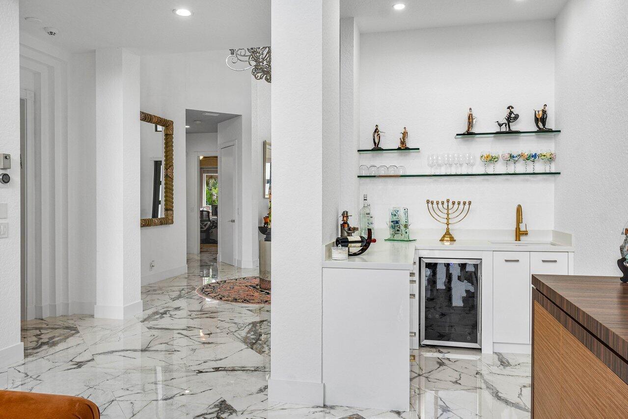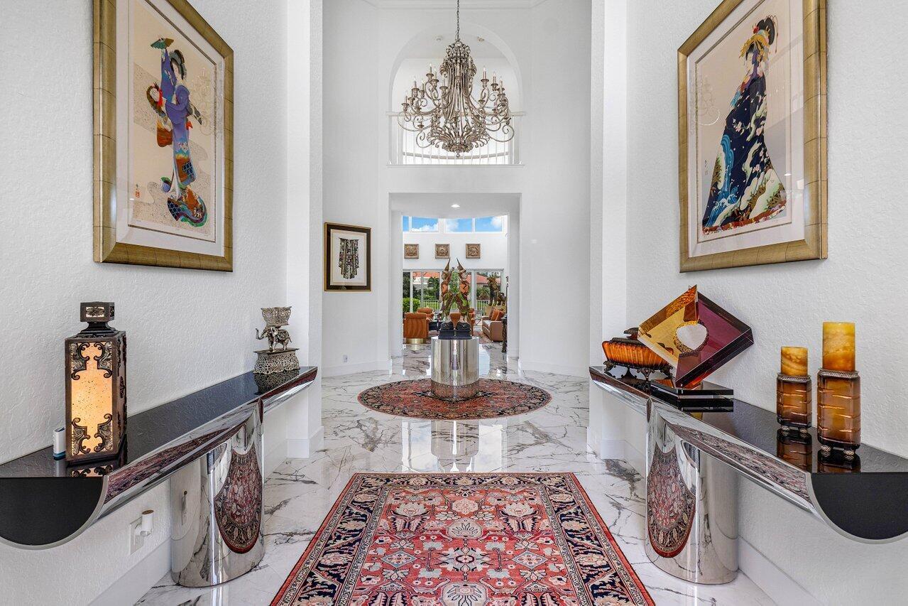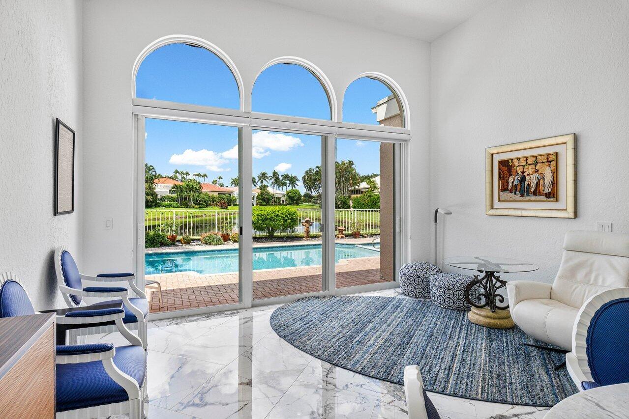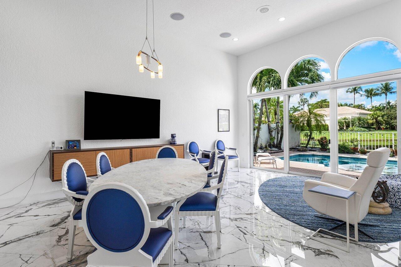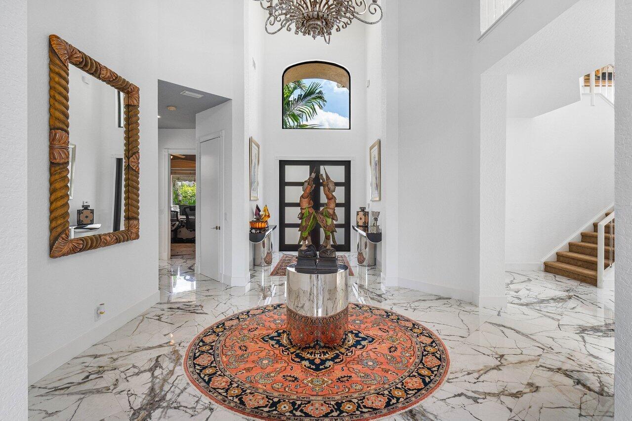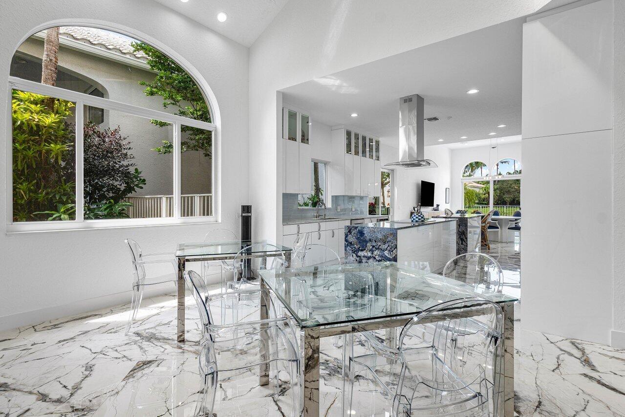 Upon entering this stunning home in The Polo Club, where golf memberships are available for the two 18-hole courses, you are welcomed by soaring two-story ceiling heights that fill the space with an abundance of natural light. The grand foyer leads to an expansive great room featuring a wet bar, perfect for entertaining guests. The great room opens to a screened-in patio area that overlooks a private pool, with a pristine meandering lake enhancing the ambiance. The remodeled chef's kitchen is truly breathtaking, showcasing dual islands, immense storage, dual refrigerators, and an induction stovetop, making it a dream for any culinary enthusiast. Adjacent to the kitchen, the dining area is ideally situated for convenience and easy access, making gatherings seamless and enjoyable. The -