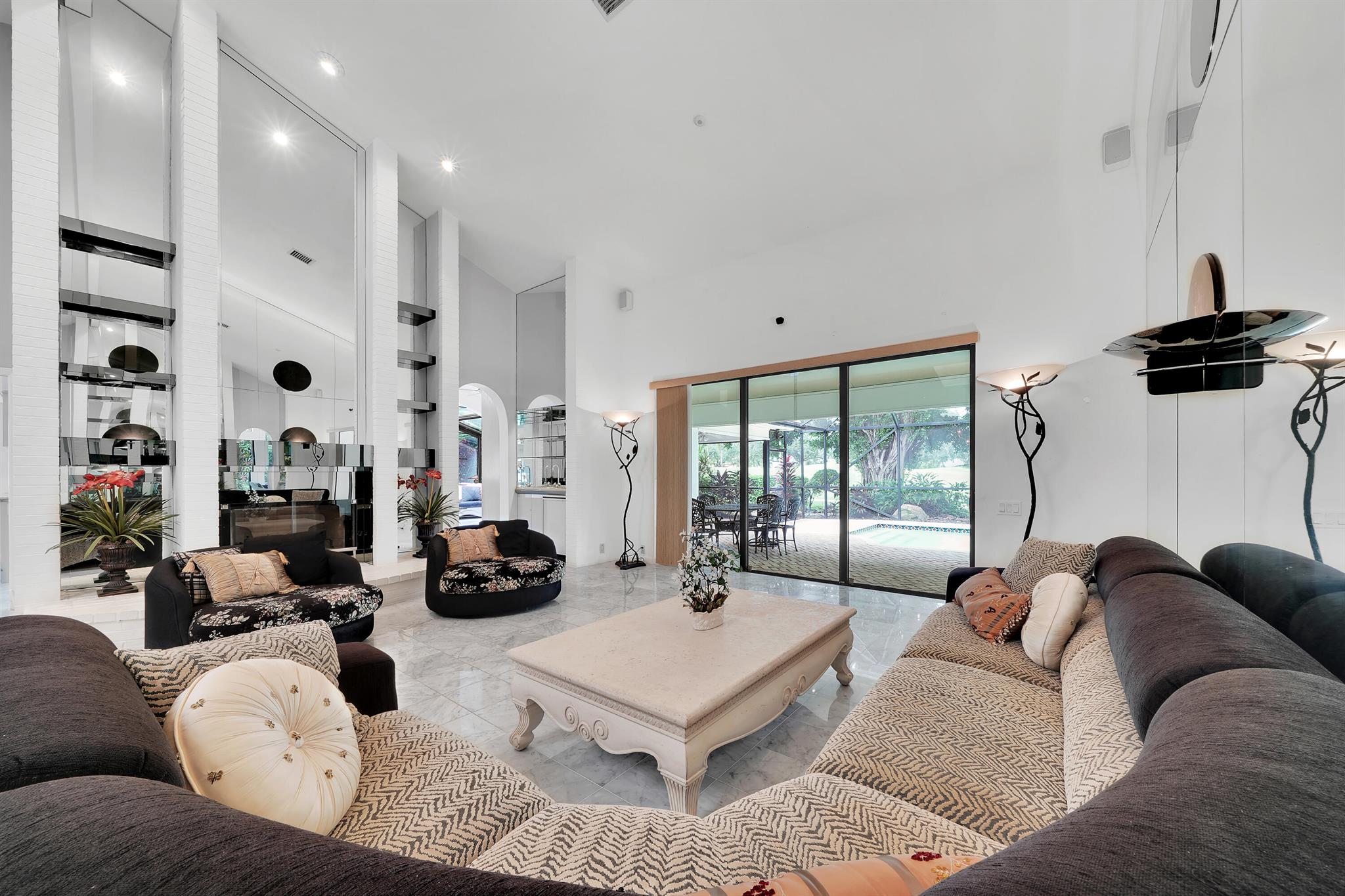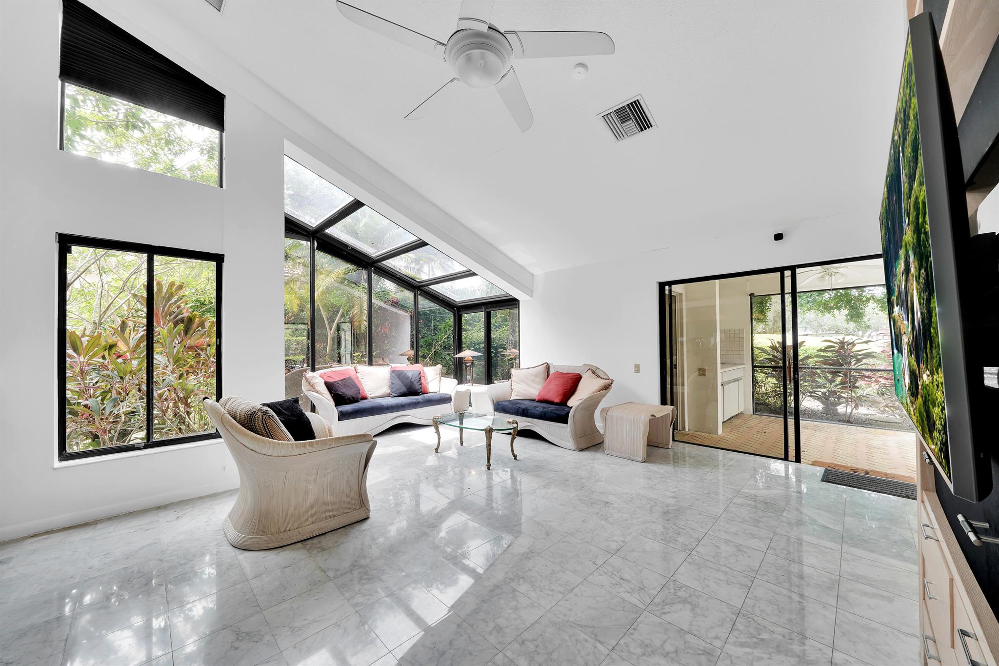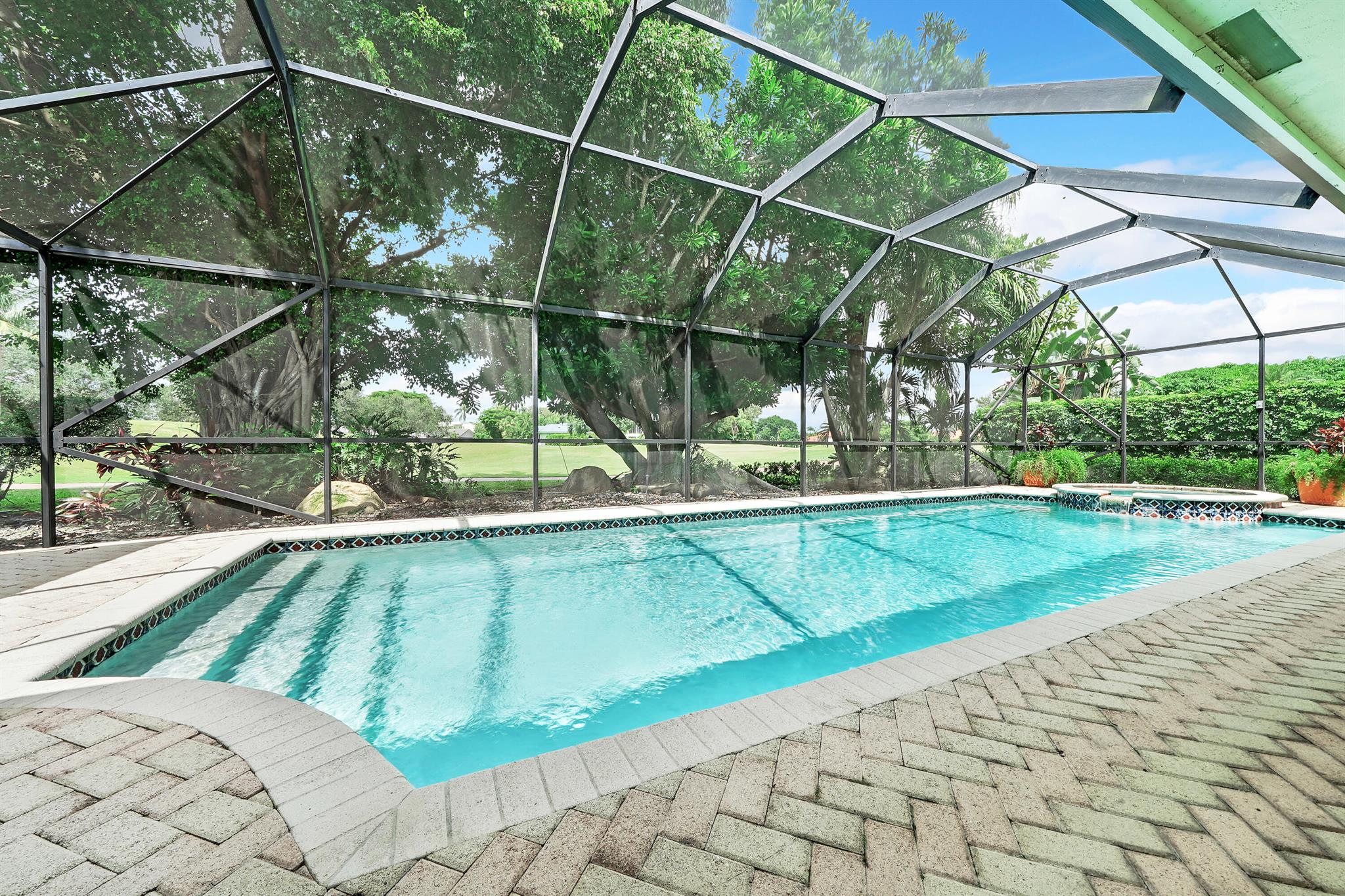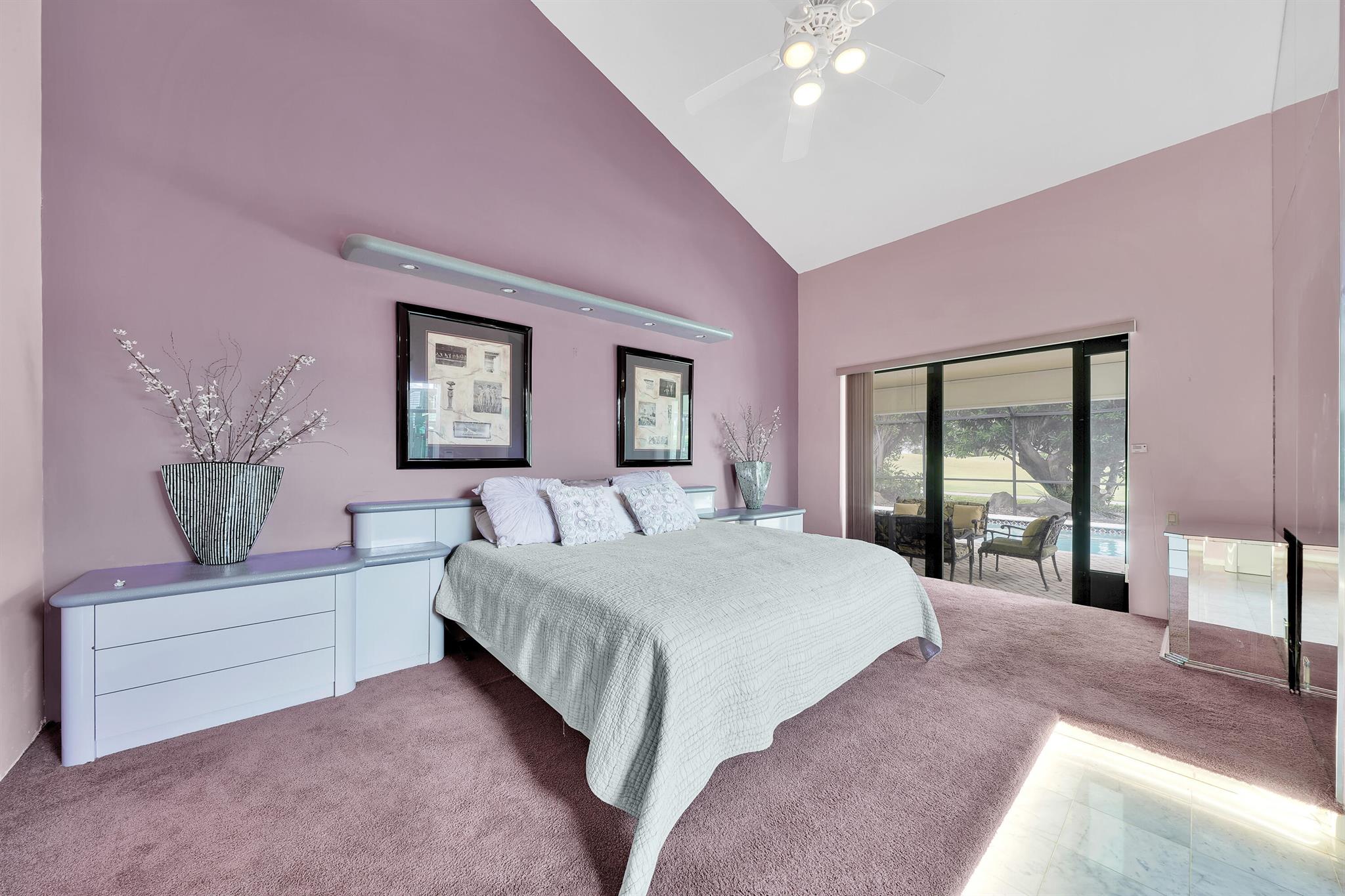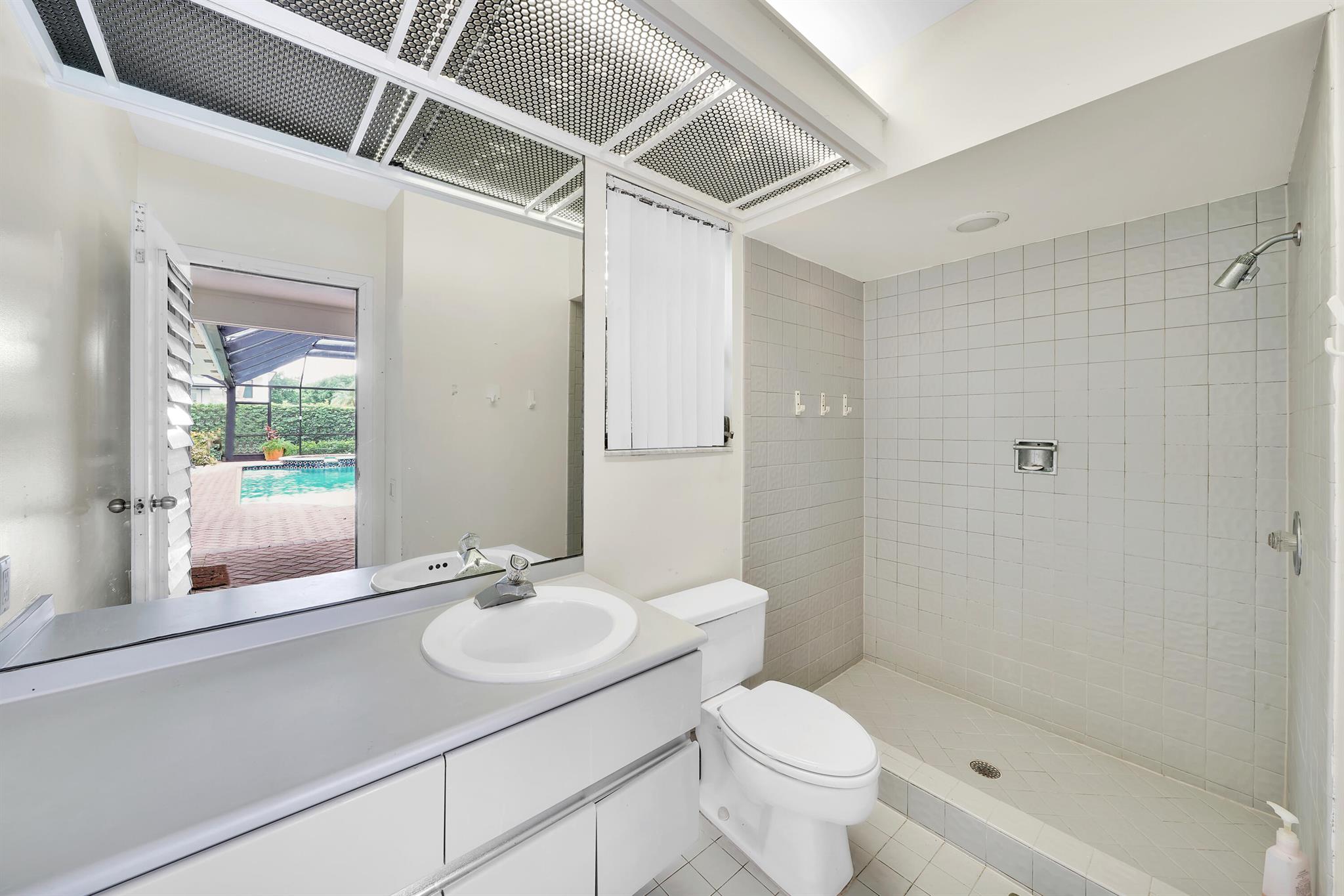 Beautiful home in the heart of Boca Raton's premier golf community, Boca Grove. Step through elegant double doors into a spacious living room with a custom stone fireplace. This 4-bedroom, 3.5-bath home features soaring ceilings, skylights, and ample natural light throughout. The expansive, screened-in patio with a pool provides the perfect space for relaxation or entertaining, all with picturesque views of the 6th hole. Enjoy the best of Florida outdoor living in this private oasis. Boca Grove offers exceptional amenities, including a Sports and Wellness Center, tennis, pickleball, and paddle courts, a children's playground, and a Fazio-designed golf course with no tee times required. IDEAL FOR RENOVATION!