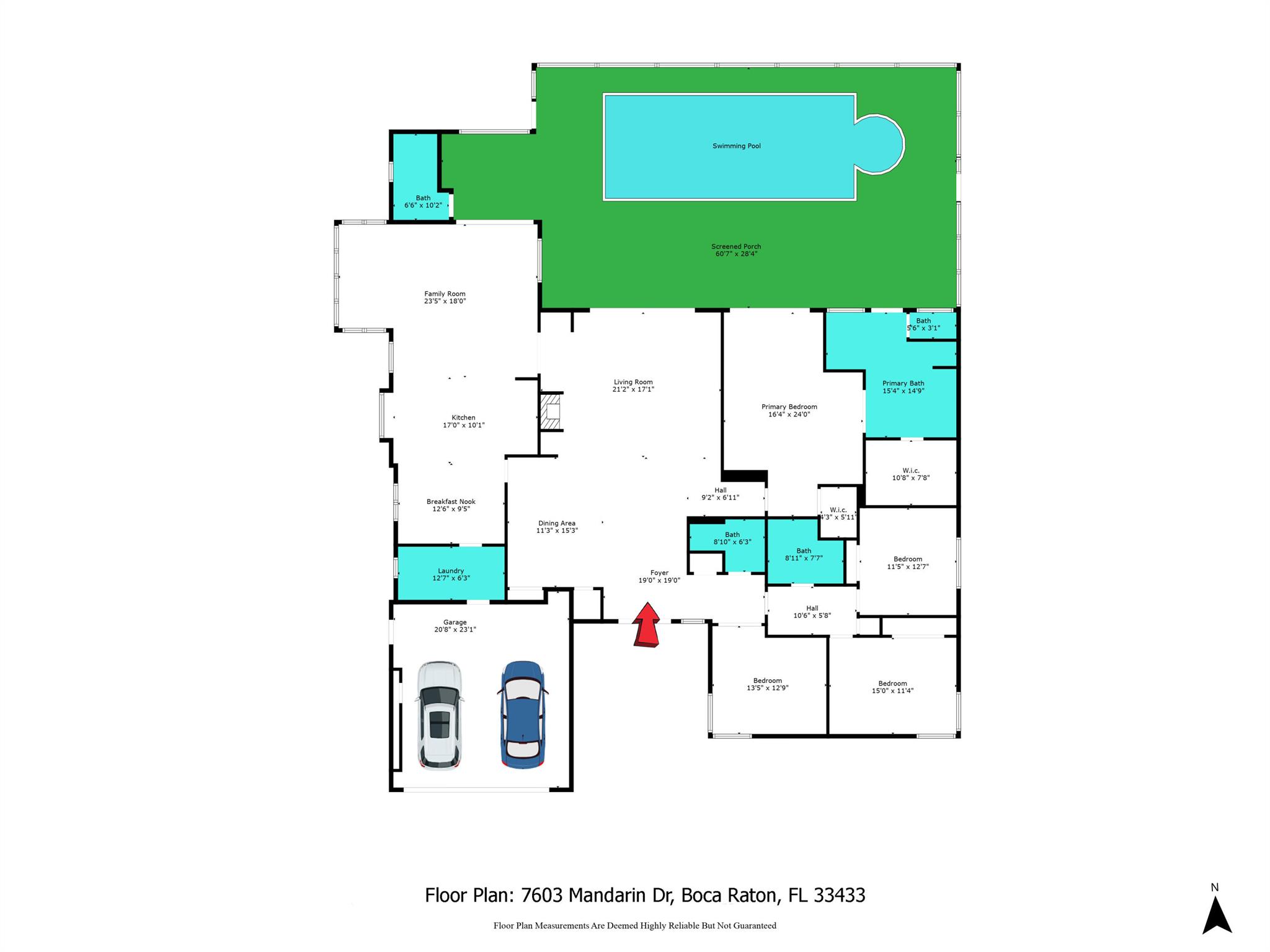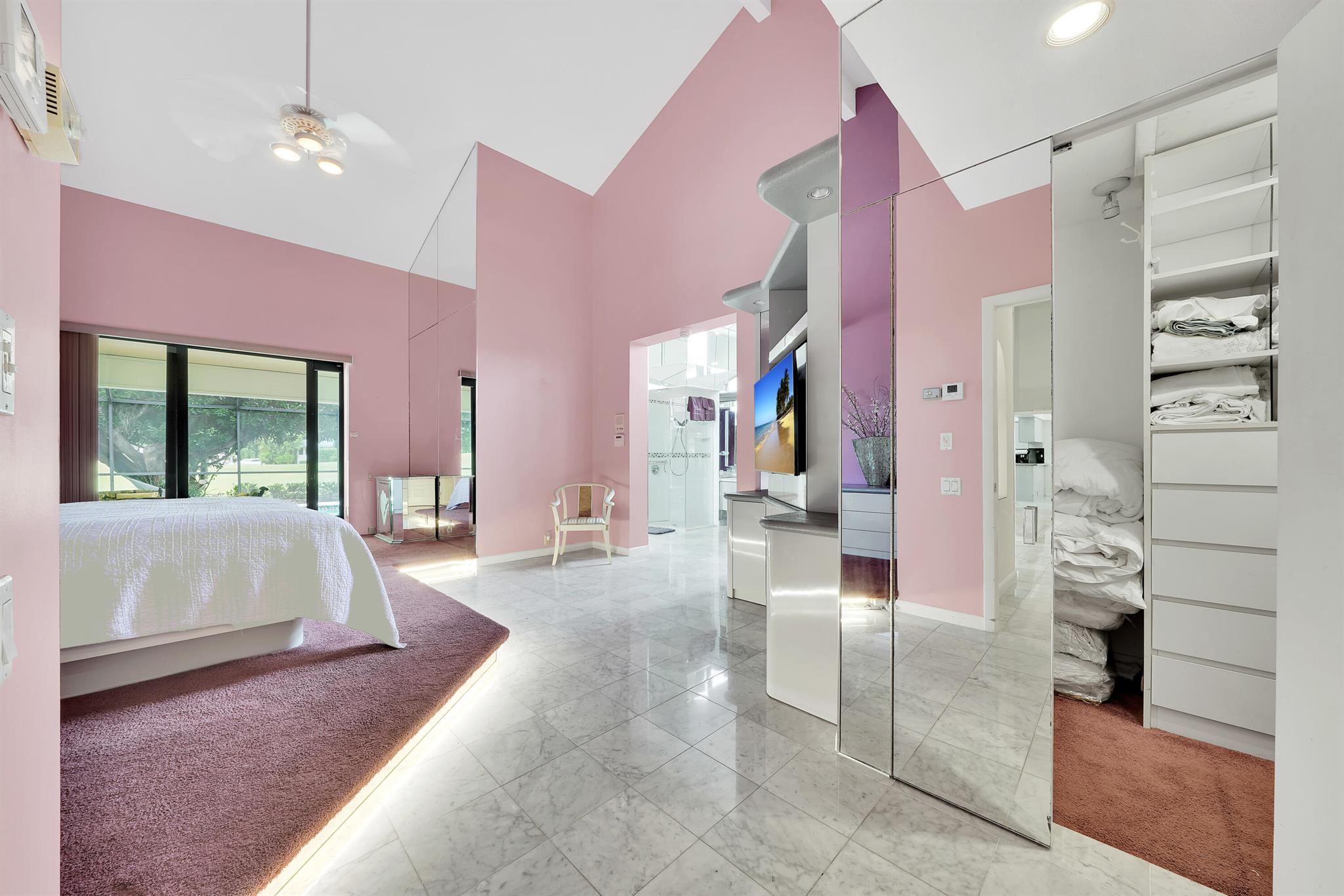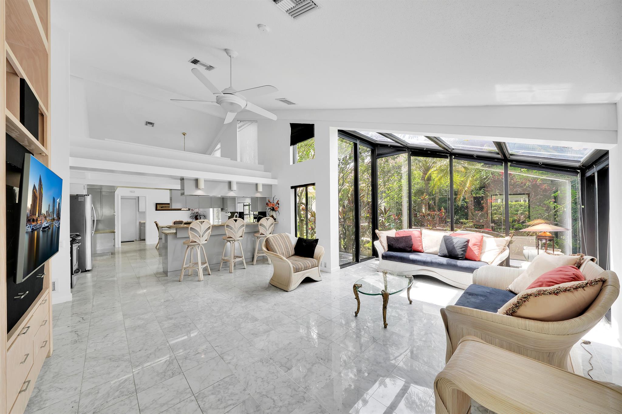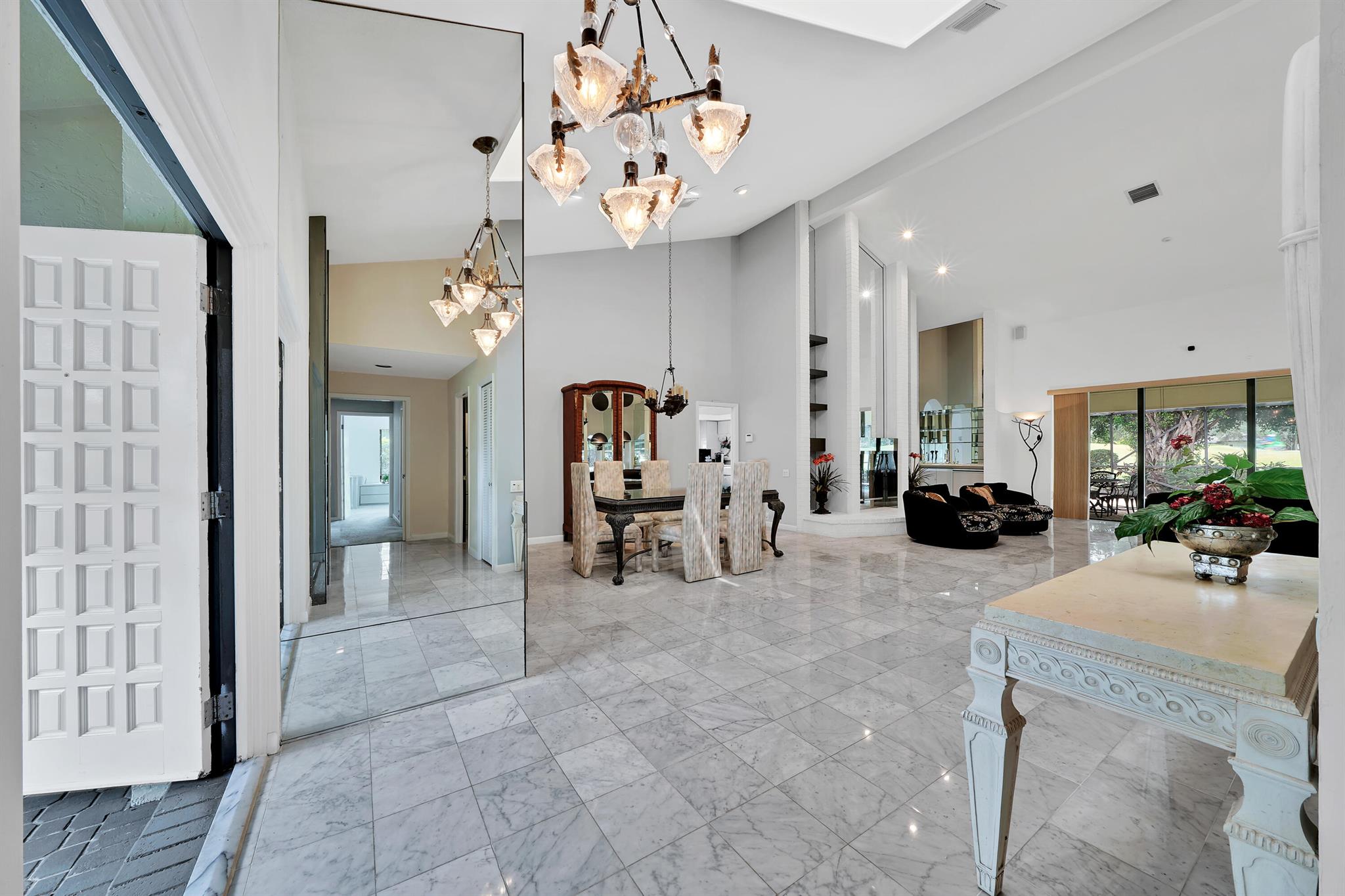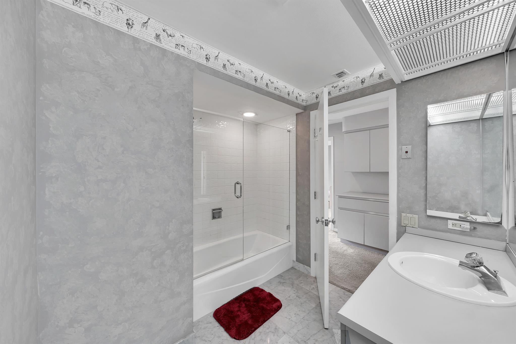 Beautiful home in the heart of Boca Raton's premier golf community, Boca Grove. Step through elegant double doors into a spacious living room with a custom stone fireplace. This 4-bedroom, 3.5-bath home features soaring ceilings, skylights, and ample natural light throughout. The expansive, screened-in patio with a pool provides the perfect space for relaxation or entertaining, all with picturesque views of the 6th hole. Enjoy the best of Florida outdoor living in this private oasis. Boca Grove offers exceptional amenities, including a Sports and Wellness Center, tennis, pickleball, and paddle courts, a children's playground, and a Fazio-designed golf course with no tee times required. IDEAL FOR RENOVATION!