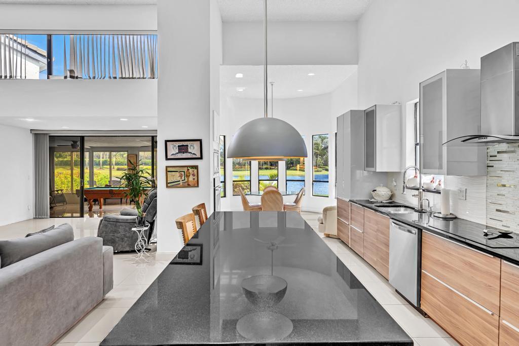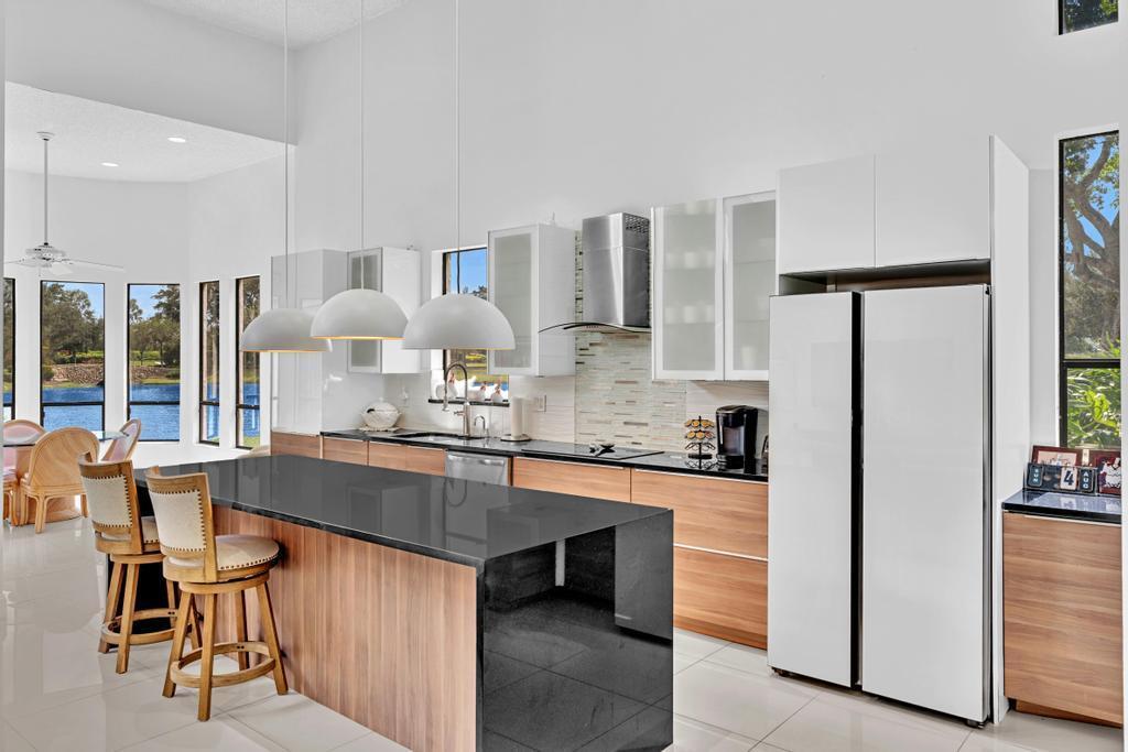 THIS FANTASTIC CONTEMPORARY ONE STORY HOME IS LOCATED ON ONE OF THE BEST AND LARGEST LAKE LOTS WITH FOUNTAIN AND GOLF VIEWS. IT HAS 3 BEDROOM 3,5 BATHROOMS, PLUS A LARGE DEN OR OFFICE THAT COULD BE MADE INTO A 4TH BEDROOM. THE LARGE RENOVATED KITCHEN HAS BRAND NEW DESIGNER REFRIGERATOR AND WALL OVEN AND A OVERSIZED ISLAND THAT FLOWS INTO THE OPEN FLOOR PLAN. GREAT FOR FAMILY'S OR PARTIES. MASTER HAS HIS AND HER SEPERATE BATHROOMS. NEW FLAT ROOF, FASCIA, A/C DUCTS, WASHER AND DRYER, HOT WATER HEATER + IMPROVEMENTS. ONLY 1 NEIGHBOR NEXT TO THE HOME WITH AN EXPANSIVE LANDSCAPED AREA DOWN TO THE LAKE. THE PRIVATE GATED STONEBRIDGE COUNTRY CLUB IS LOCATED IN ONE OF THE HOTTEST PARTS OF BOCA AND INCLUDES CLUBHOUSE, TENNIS, GOLF, FITNESS CENTER, PICKLE BALL AND MANY EVENTS AND ACTIVITIES.