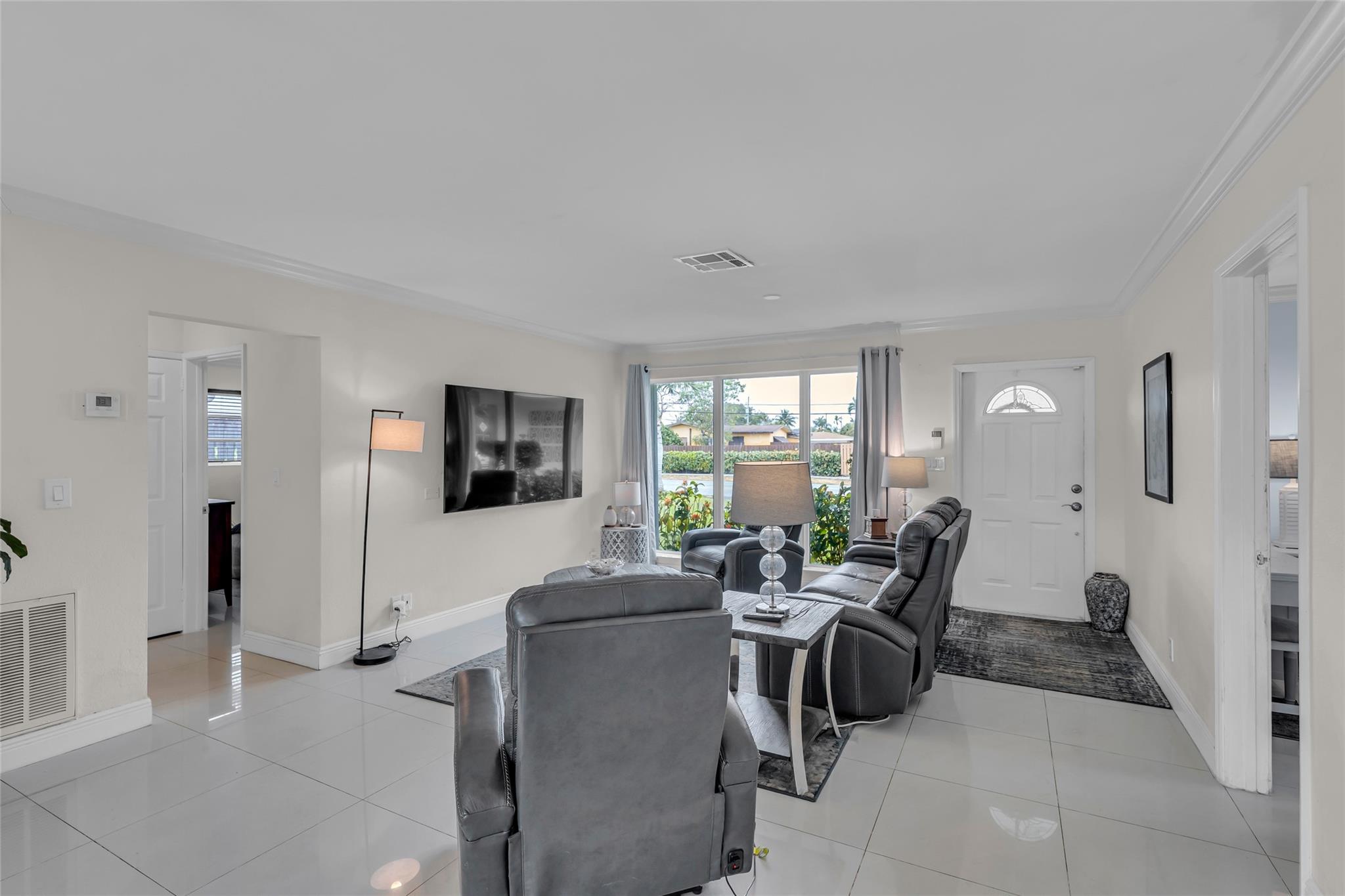 Experience the epitome of South Florida living in this immaculate 3/2 pool home in Coral Ridge Isles. Featuring a spacious open floor plan adorned with crown molding, tile flooring and an abundance of natural light, this residence exudes a warm and inviting ambiance. The kitchen boasts granite countertops, stainless steel appliances and ample cabinet space. Step outside to your own private oasis: a heated saltwater pool, expansive patio and charming gazebo provide the perfect backdrop for al fresco dining, sun-soaked relaxation, and entertaining guests. Both the backyard and side yard are outfitted with turf for easy upkeep. Prime location, just moments away from pristine beaches, vibrant shopping districts, and a diverse culinary scene. Don't miss your chance to call this paradise home!