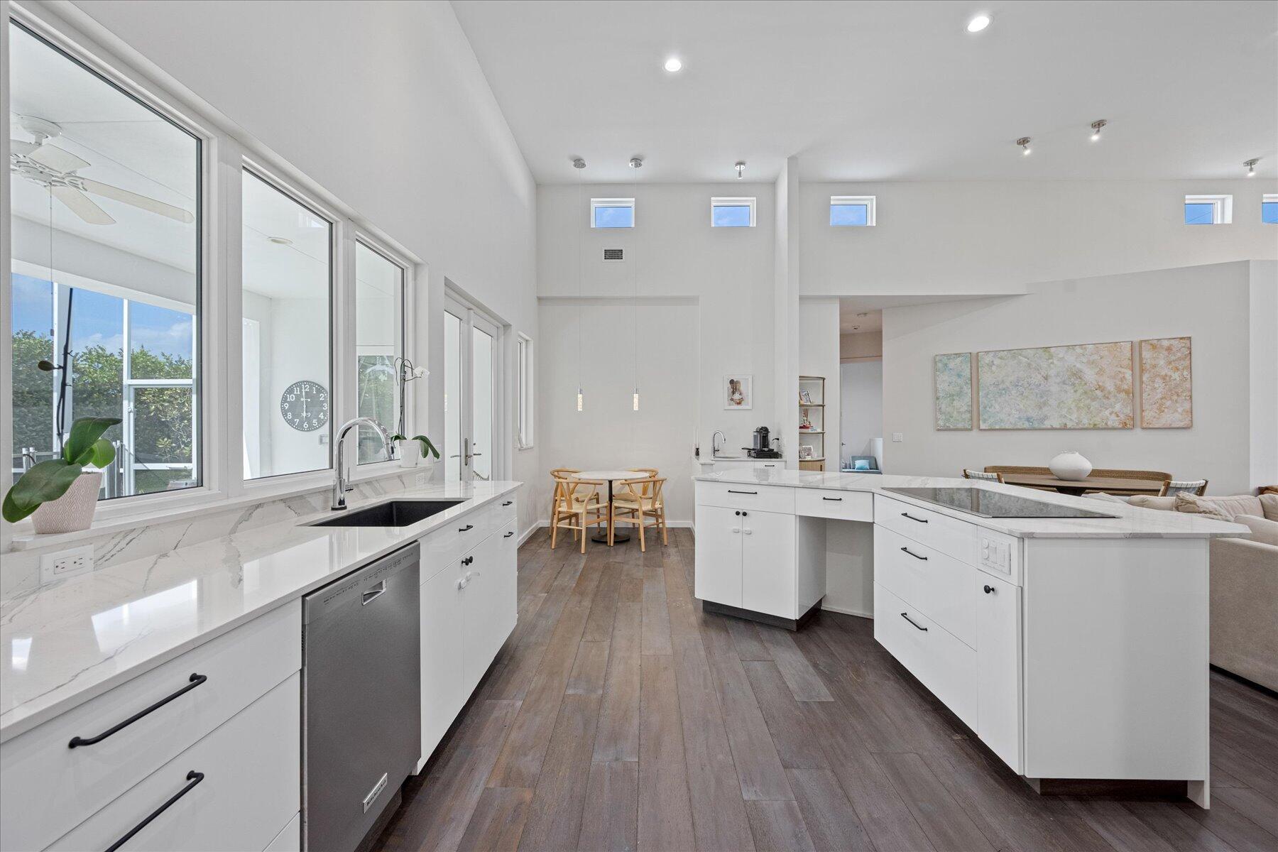 Experience the pinnacle of luxury living in South Florida with this stunning custom-built home, completed in 2016 and just moments from the beach! Tucked away in the coveted Lake Rogers Isle community of Boca Raton, this enchanting residence features 2 bedrooms, 2.5 bathrooms, and a versatile den that can easily transform into a 3RD BEDROOM. From soaring 14-foot ceilings to exquisite engineered hardwood flooring, every detail radiates modern elegance. Enjoy an unbeatable location, just a leisurely 10-minute stroll to the beach and mere minutes from the picturesque Spanish River Park, top-rated schools, chic local shops, and exquisite dining options. Safety and style blend seamlessly with impact windows and doors, ensuring both security and energy efficiency. Step outside to your private