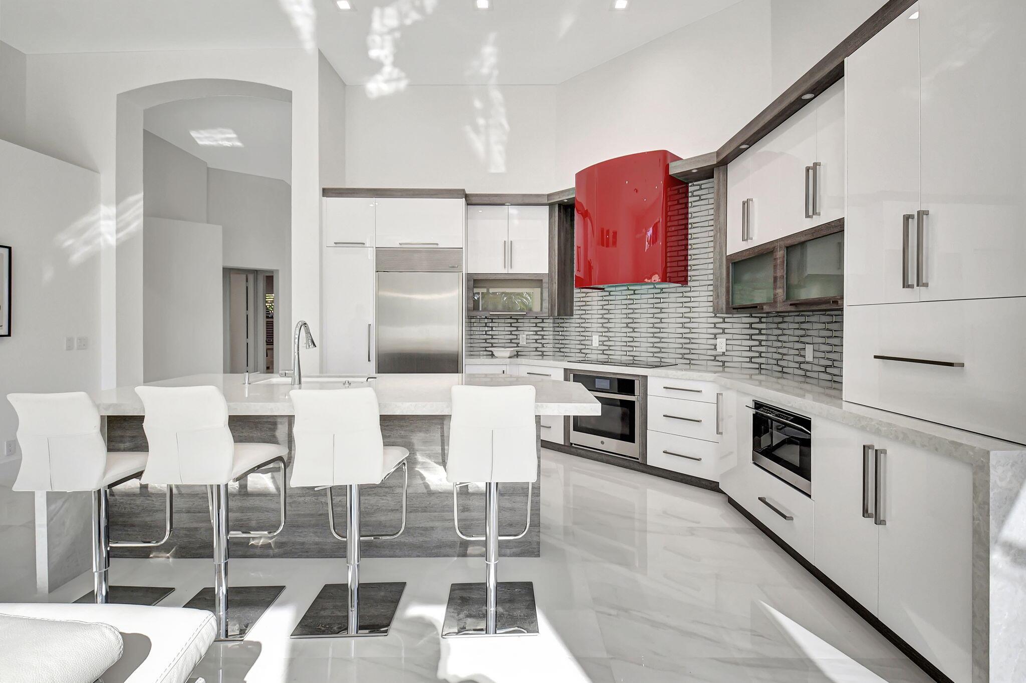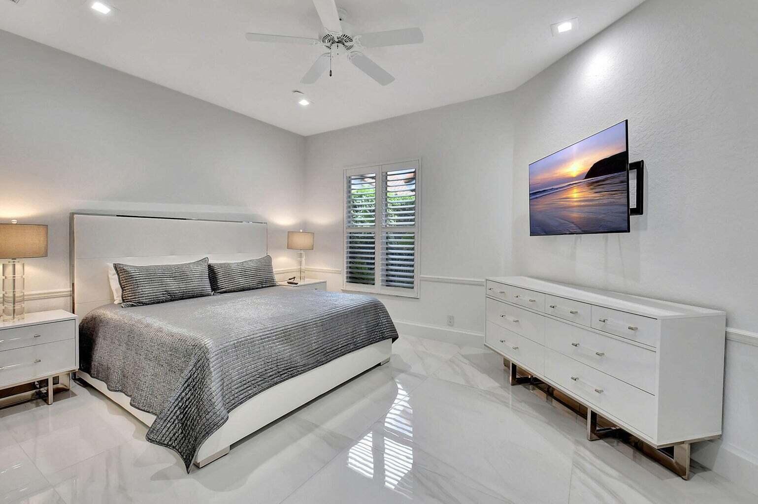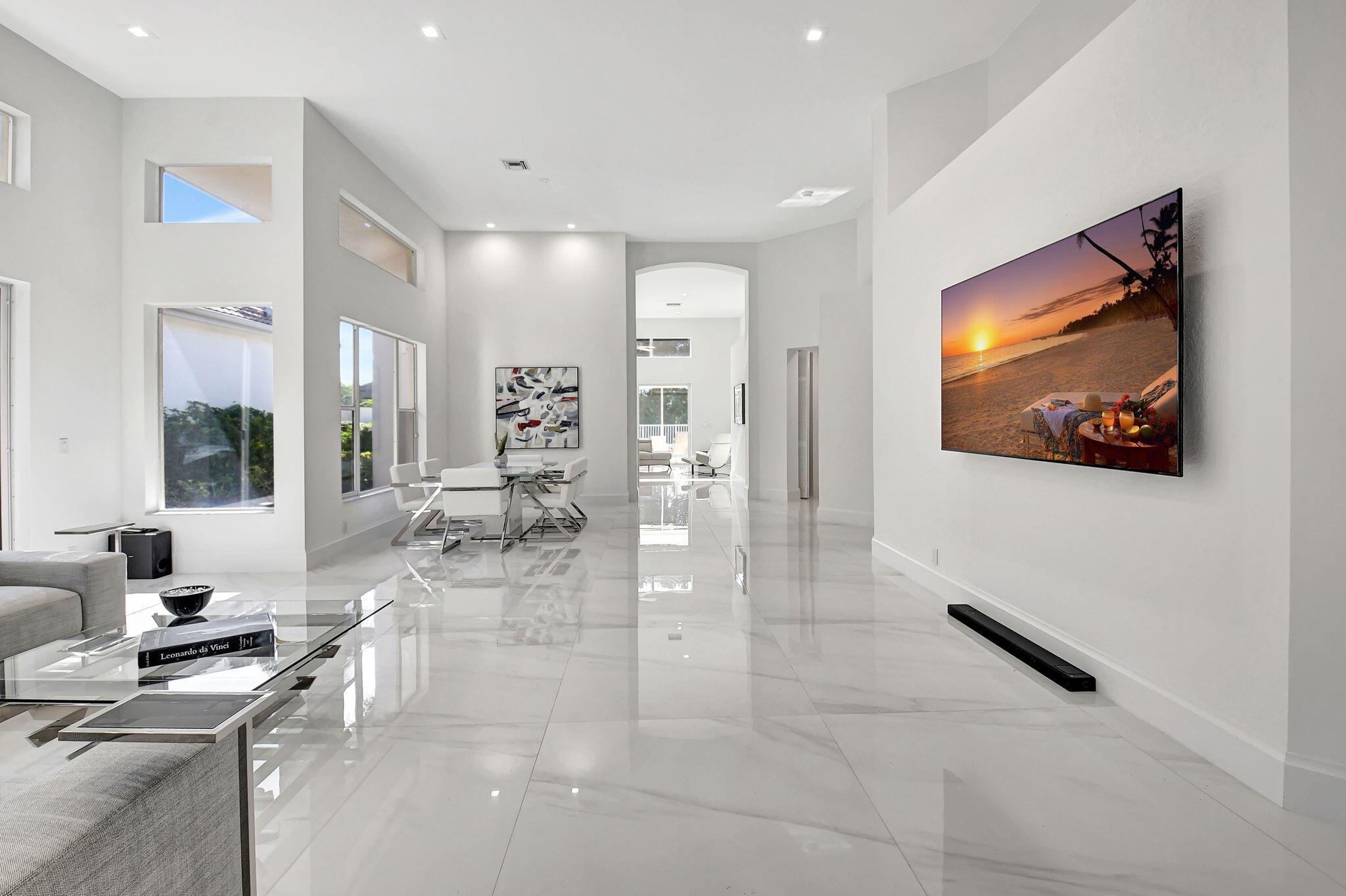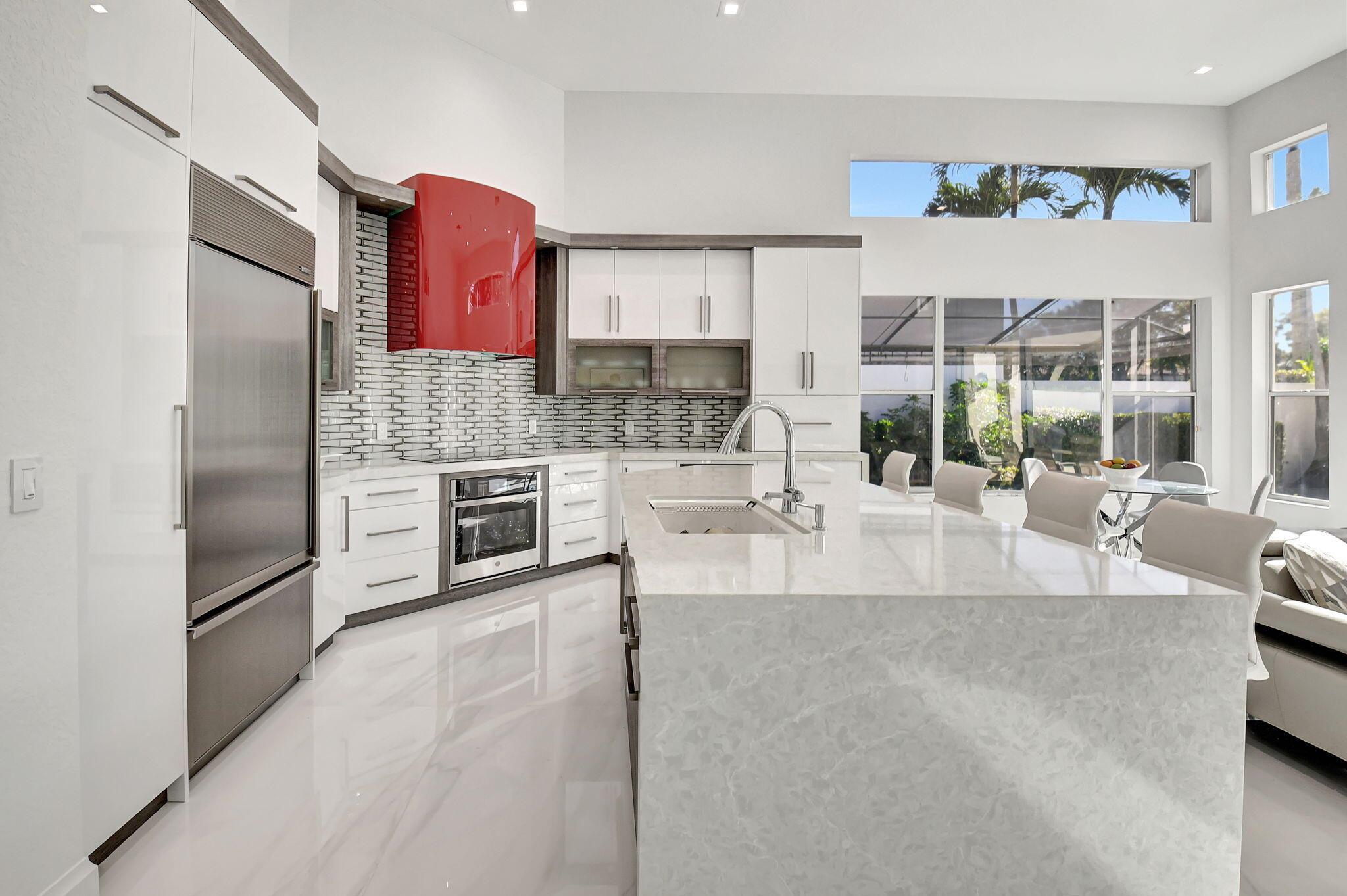 What a spectacular 3 bedroom 4 bath contemporary remodeled home with the best of finishes, located in the award winning country club at Broken Sound. Features include a lake and golf course view, covered screened in lanai, 48x48 porcelain flooring throughout, volume ceiling, lot's of natural light, collapsible impact sliding kitchen door, sub-zero refrig, pull-out pantry, two baths in master, neutral colors throughout and a wide open floor plan to entertain family and guests. Enjoy the Florida lifestyle in this beautiful move in ready home!