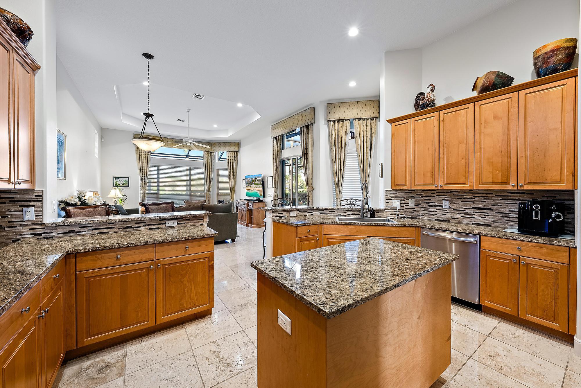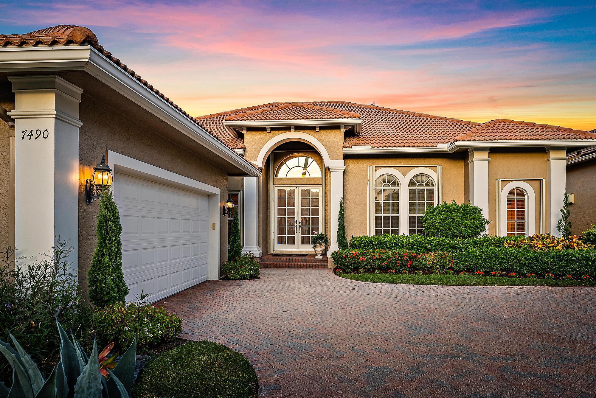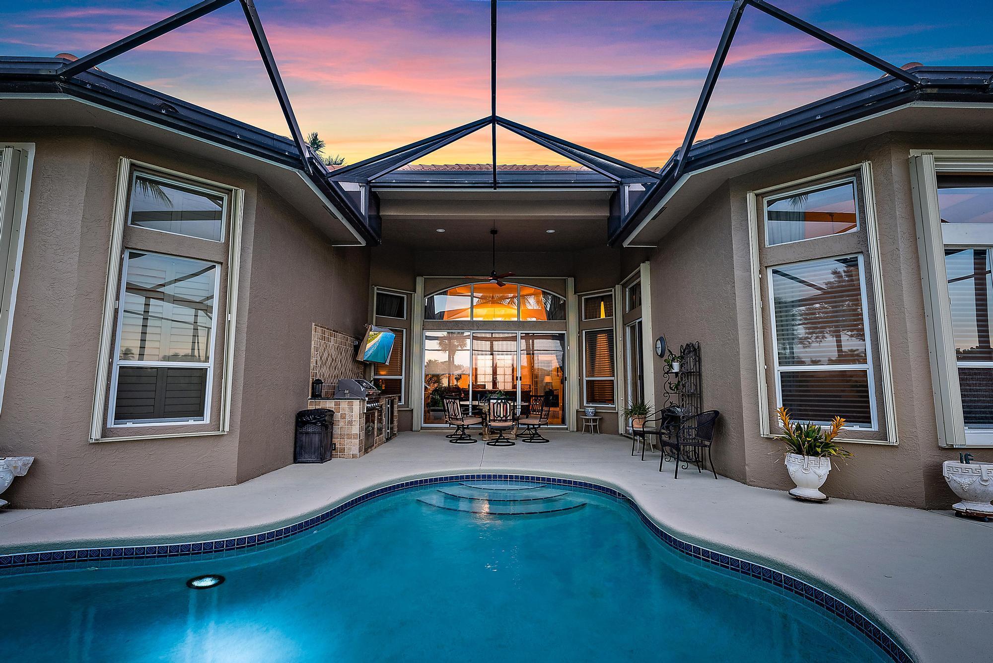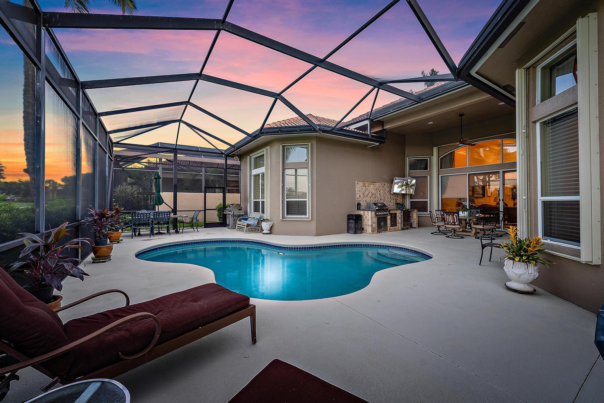 IMMEDIATE PREMIER GOLF MEMBERSHIP AVAILABLE WITH THE PURCHASE OF THIS HOME. Spacious and estate-like, this 3100 SF home is elegant and timeless. Located on the fairway of Tradition #3, enjoy panoramic golf course views, east. Incredible outdoor living from the large, fully screened pool and patio area. NEW Saltwater-conversion (2023) and NEW pool heater (2023) as well as a new pool pump (2024.) The brand new outdoor kitchen was built in 2024. Built by RJS Builders, a custom estate-level builder, luxurious marble flooring (recently refinished and restored), coffered ceilings, rounded corner walls, French doors, and more quality touches elevate this home.