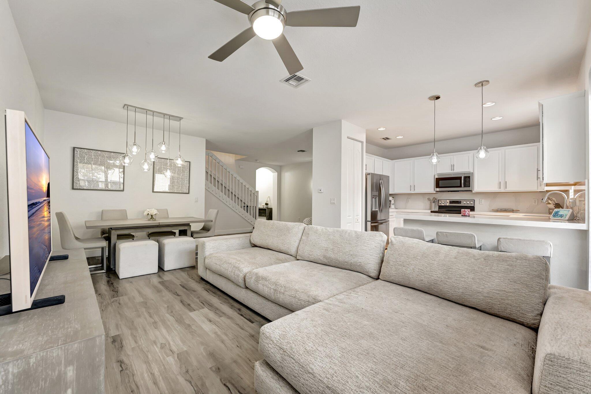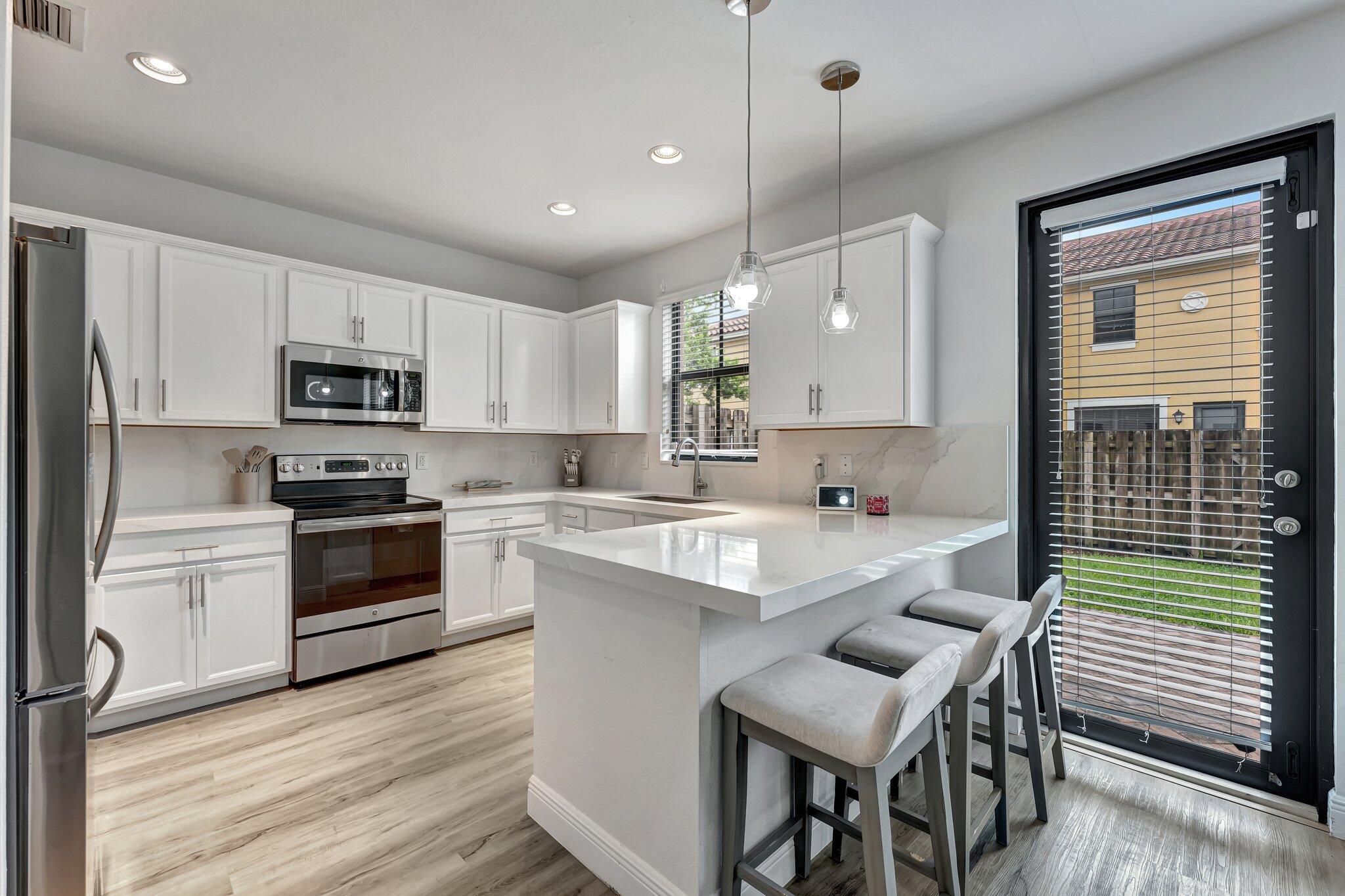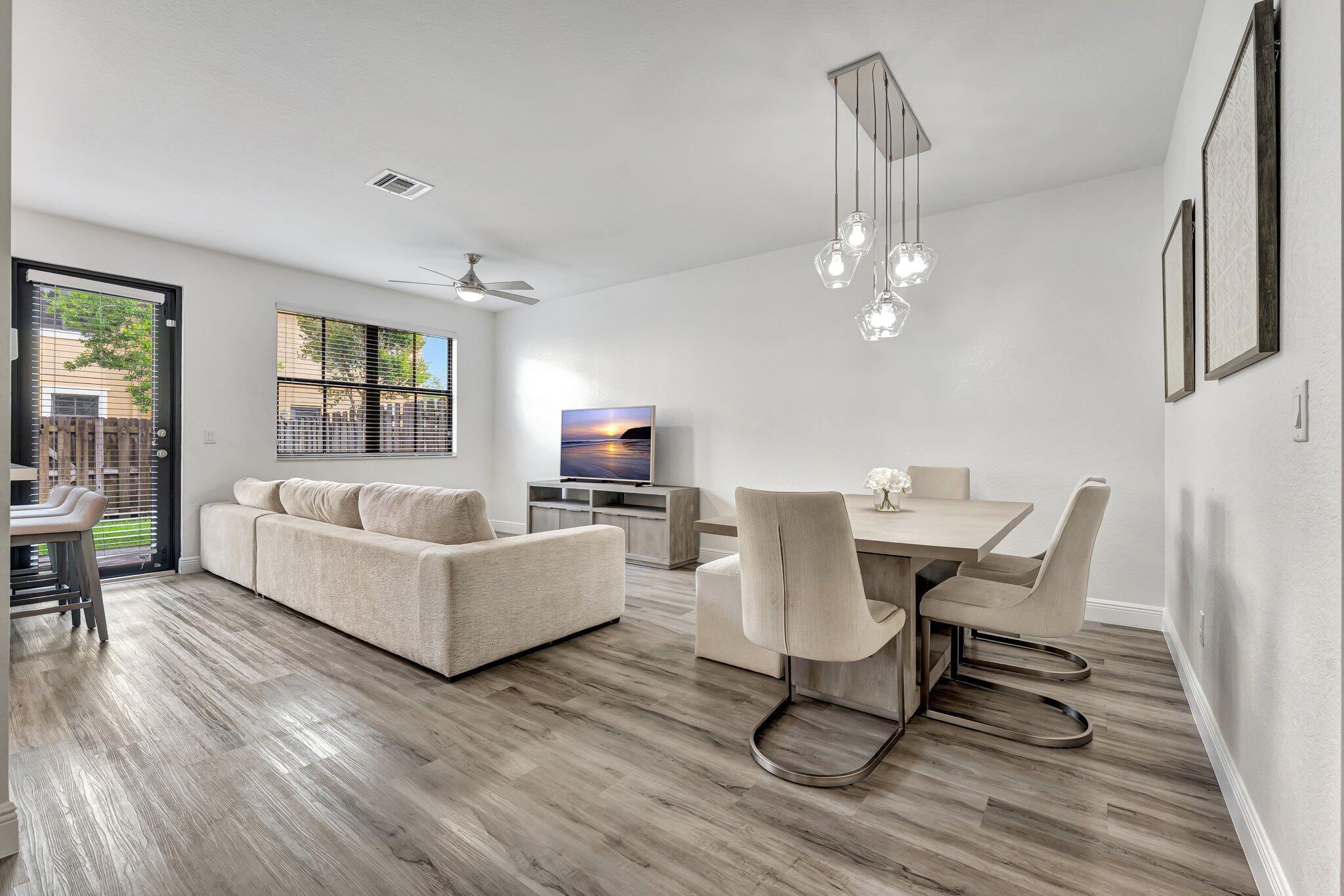 Welcome to 9575 Town Parc Circle S, a meticulously updated townhome offering the perfect blend of modern luxury and Parkland's coveted lifestyle. This 3-bedroom, 2.5-bath home with a 2-car garage invites you in with an immediate sense of style and comfort.Step inside to discover stunning wood-look luxury vinyl floors that flow throughout the home, leading you to a beautiful, spacious kitchen that's perfect for both everyday living and entertaining. The kitchen boasts quartz countertops, an oversized island with ample storage, sleek updated appliances, and elegant pendant lighting that adds a touch of sophistication. Every detail has been considered in the remodeled bathrooms, with attractive finishes, MORE...