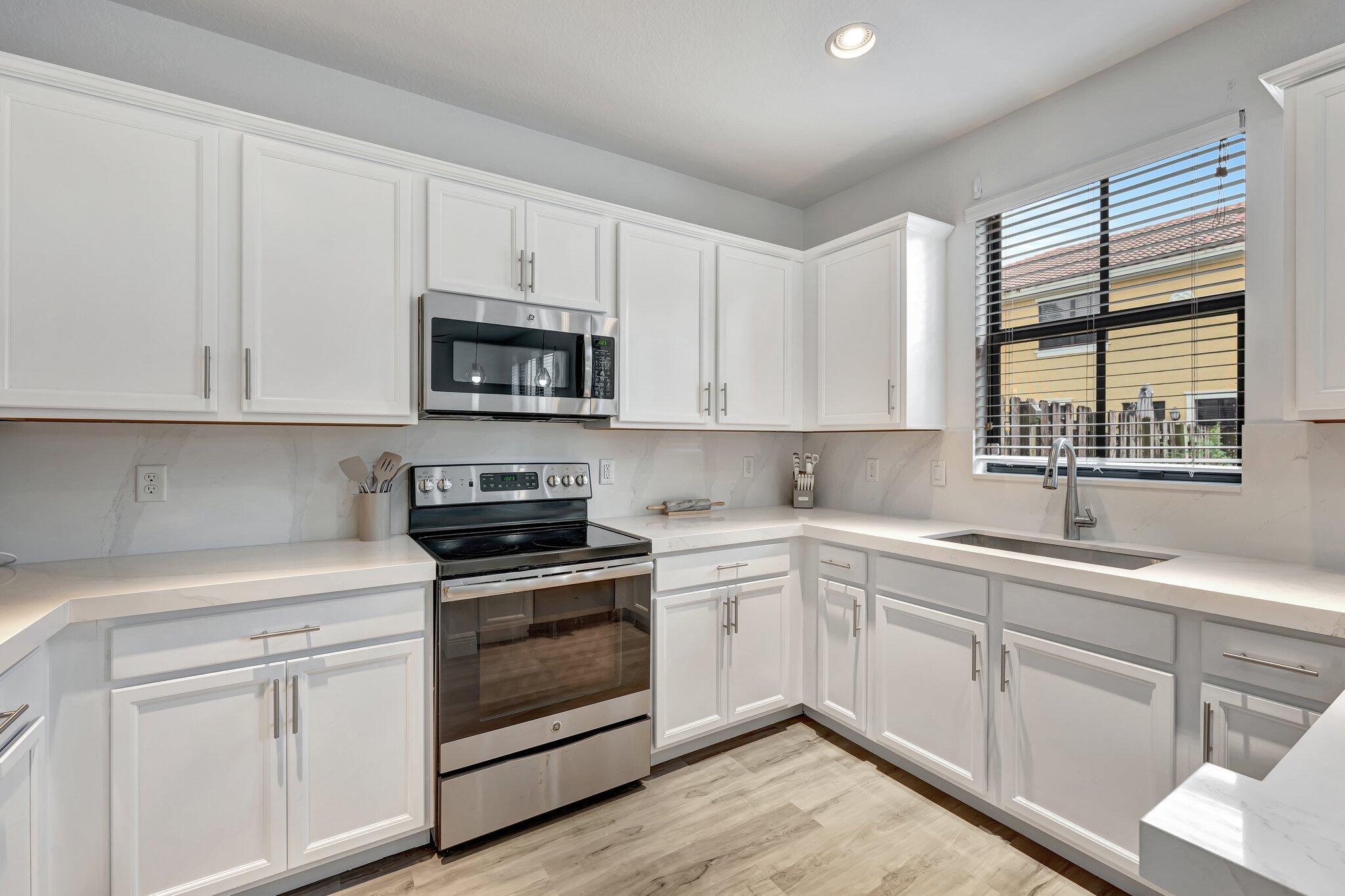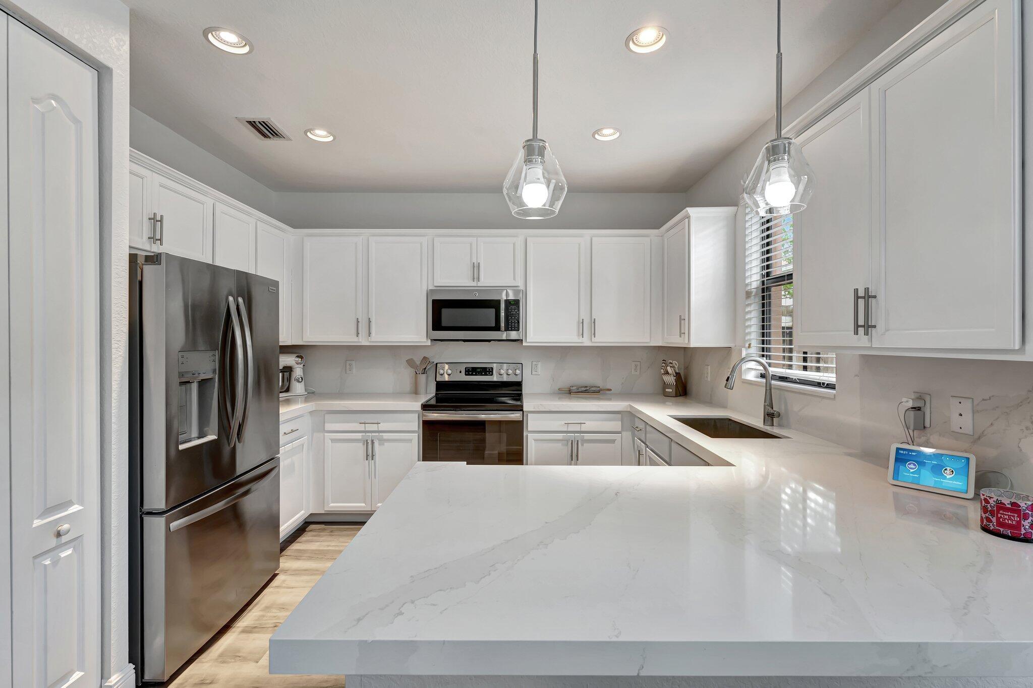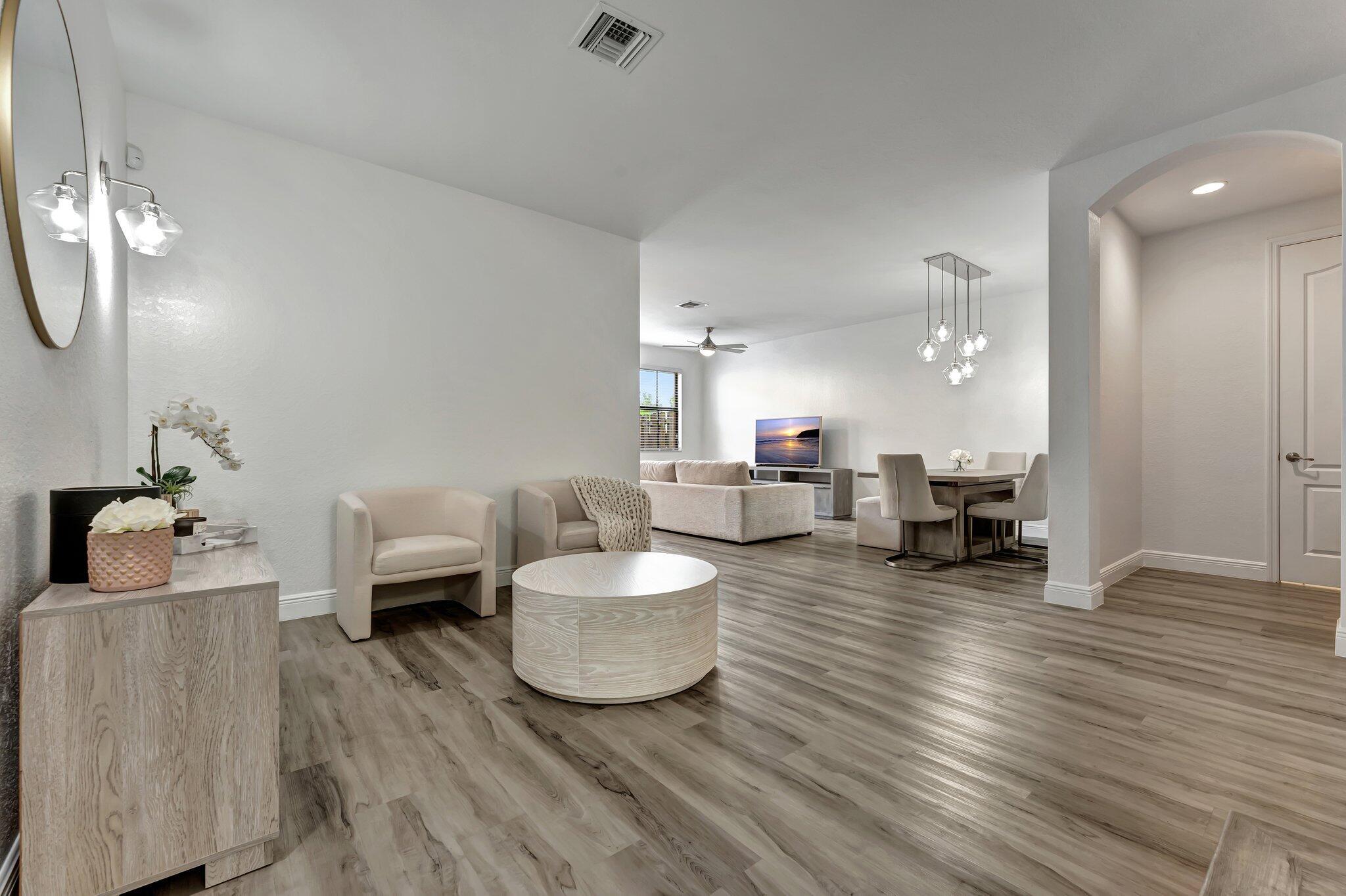Welcome to 9575 Town Parc Circle S, a meticulously updated townhome offering the perfect blend of modern luxury and Parkland's coveted lifestyle. This 3-bedroom, 2.5-bath home with a 2-car garage invites you in with an immediate sense of style and comfort.Step inside to discover stunning wood-look luxury vinyl floors that flow throughout the home, leading you to a beautiful, spacious kitchen that's perfect for both everyday living and entertaining. The kitchen boasts quartz countertops, an oversized island with ample storage, sleek updated appliances, and elegant pendant lighting that adds a touch of sophistication. Every detail has been considered in the remodeled bathrooms, with attractive finishes, MORE...