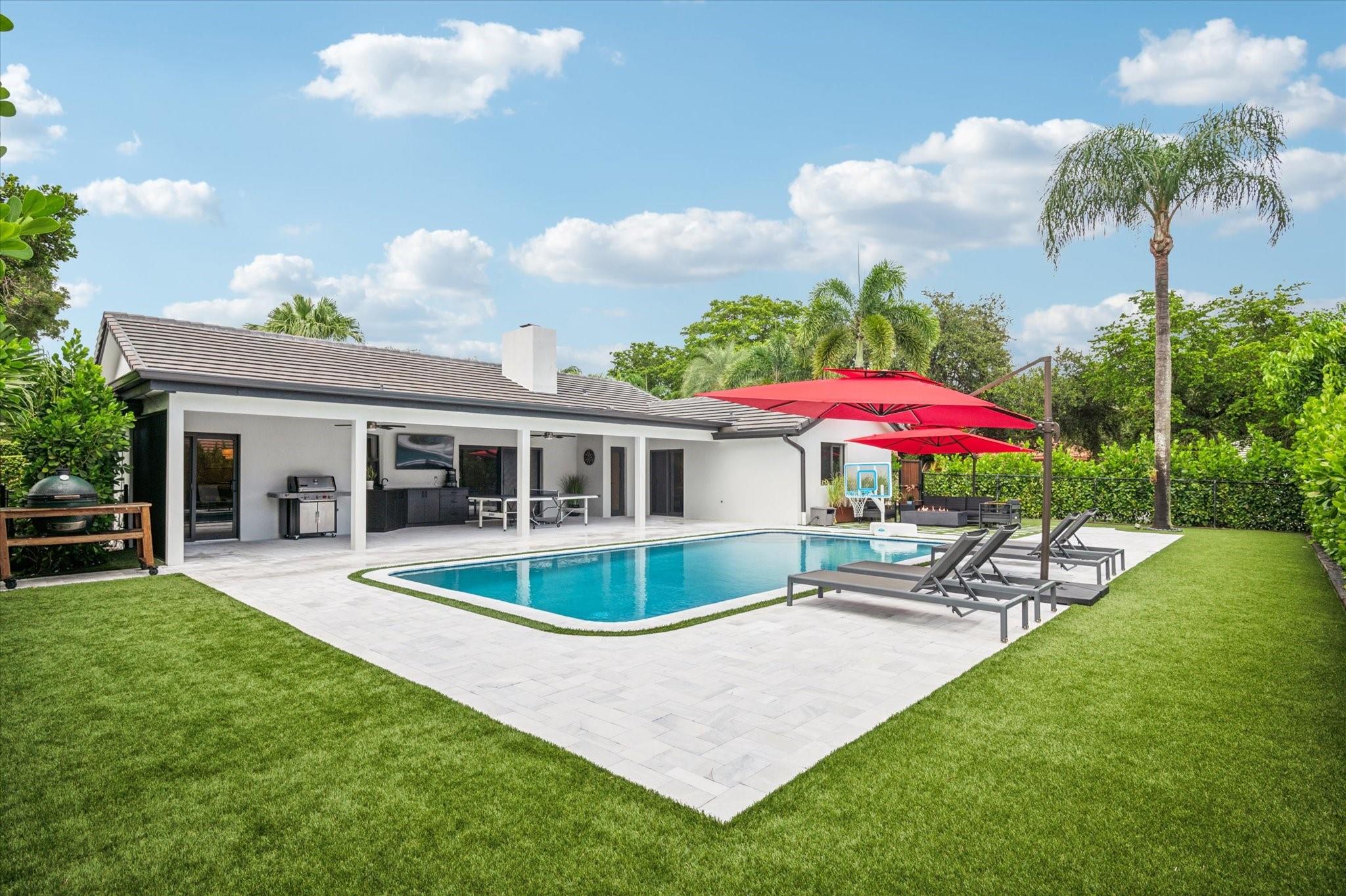 Premier Pine Ridge Pool Home. Gorgeous one of a kind property! Virtually new construction. A complete renovation inside and out. You want to live in a home that has that custom built new home feel? look no further. Situated on a huge corner lot, this one has it all! A sample of upgrades include, New A/C & air ducts w/air scrubber, hardwood mohawk oak floors thru-out, New kitchen w/ quartz counter-tops large island & Thermador appliances. Remodeled bathrooms w/frameless glass enclosures, free standing tub, new interior doors, brand new roof, all new high impact CGI doors & windows, new stucco exterior & paint, new professional landscaping with LED lighting, & synthetic turf, new diamond-brite pool surface & marble pool deck, large covered patio with tongue & groove ceiling, and much more!
